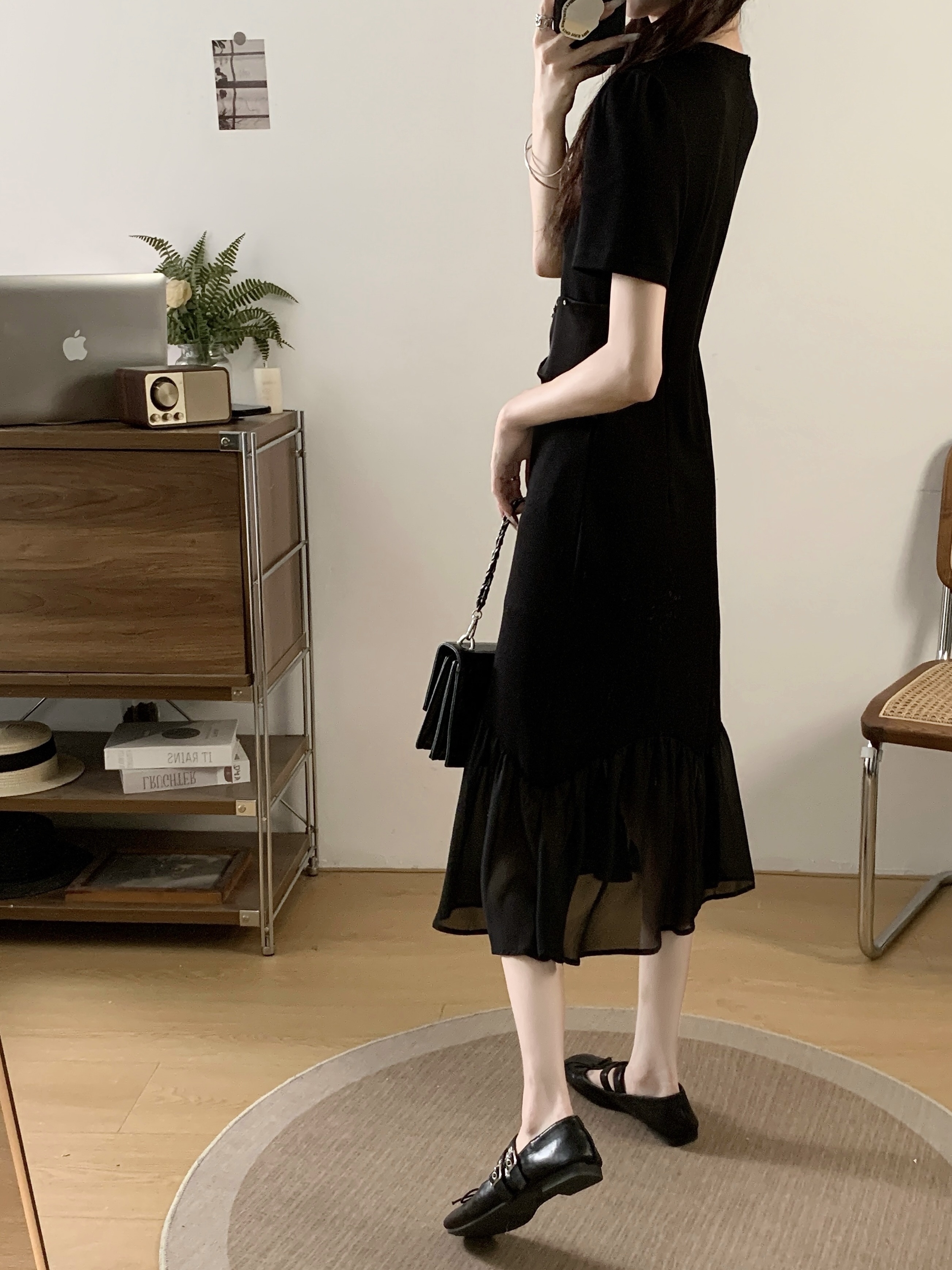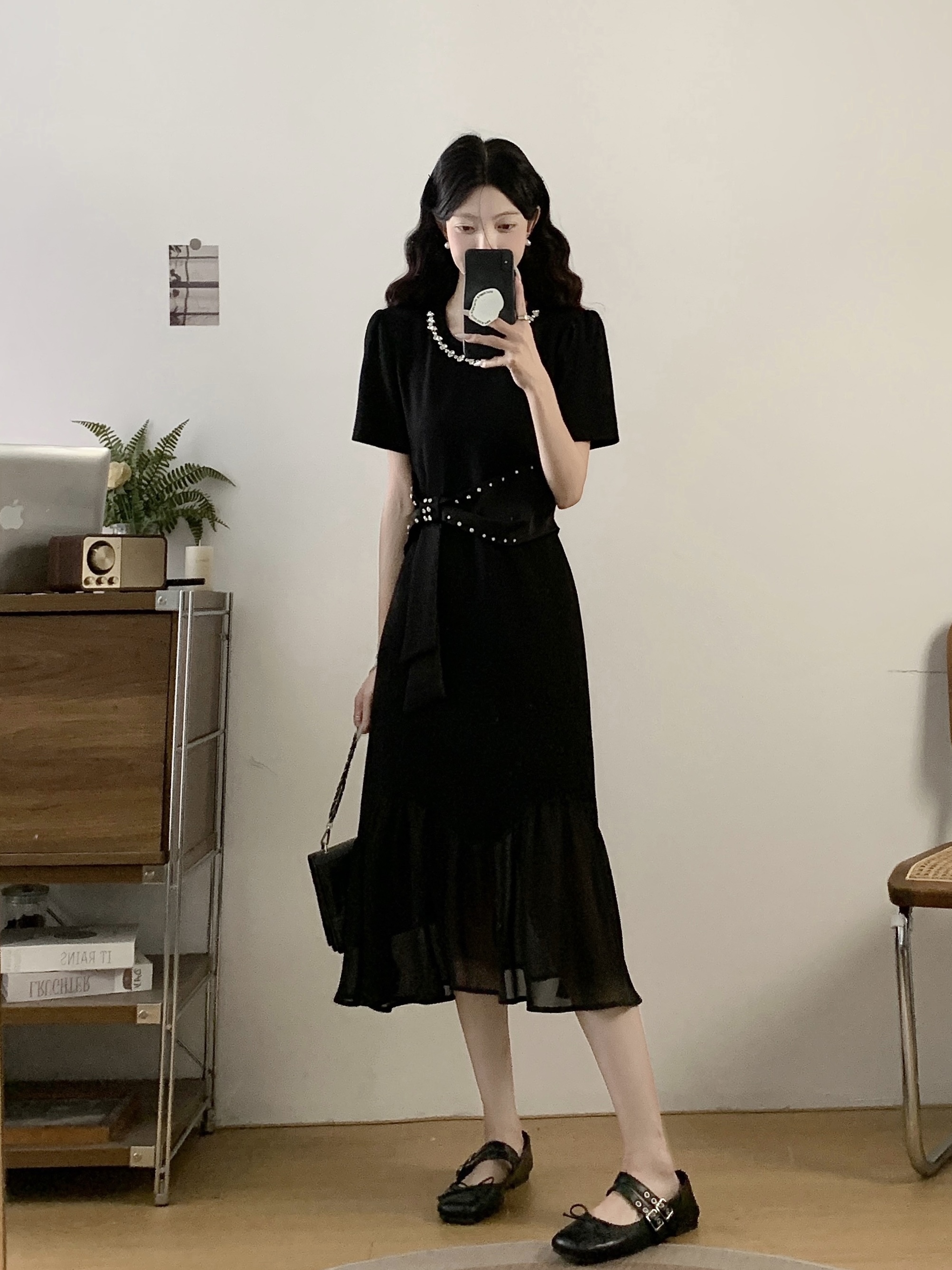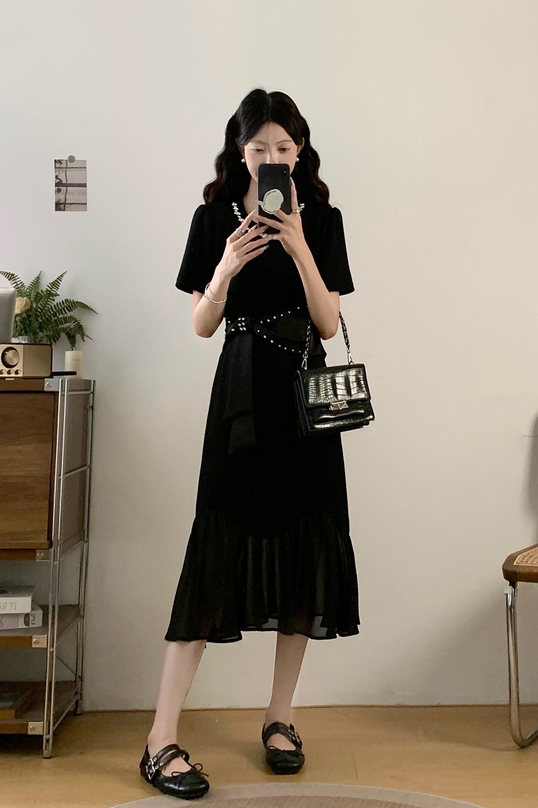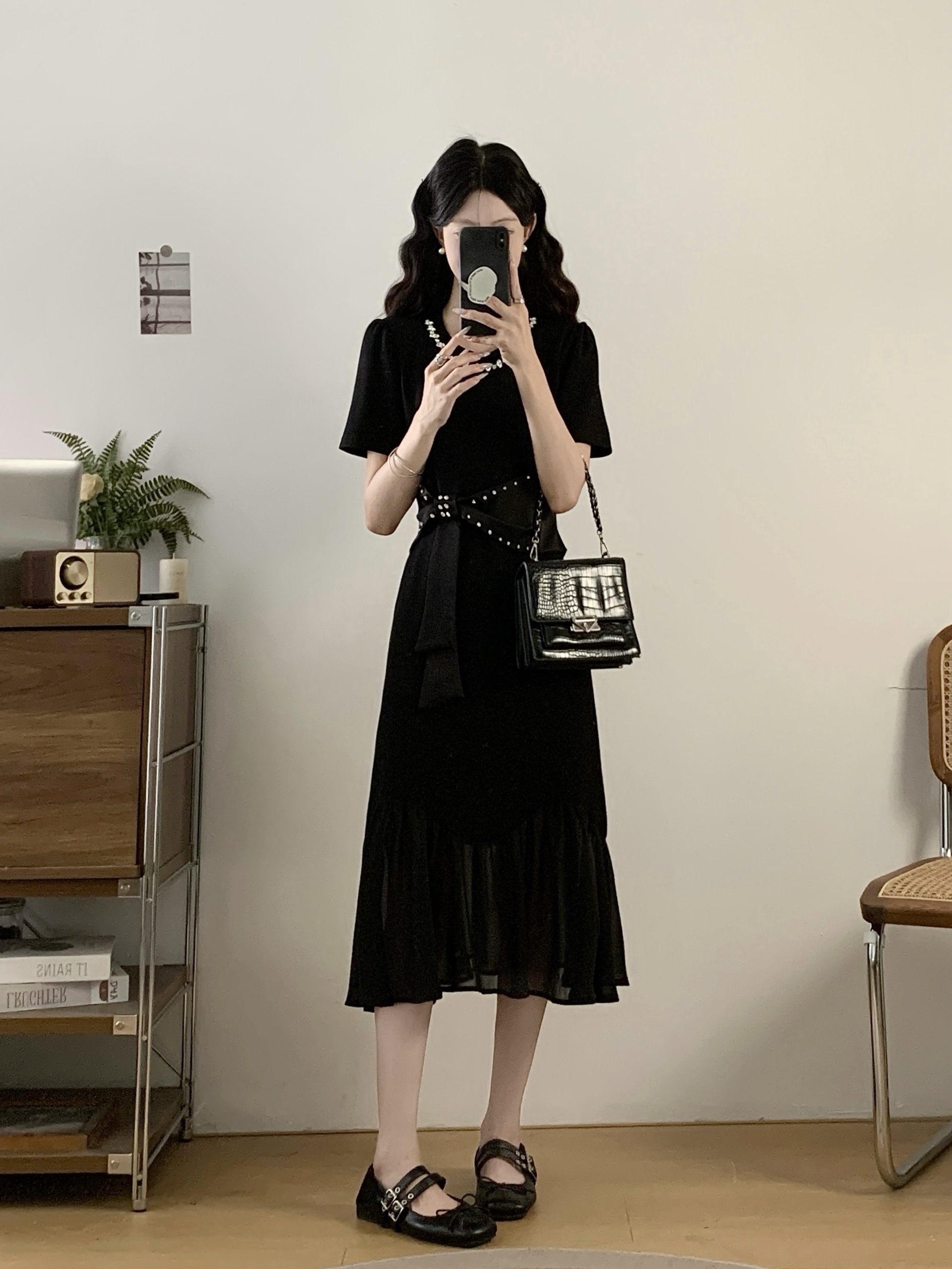실사 빅 사이즈 여성 의류 2026 여름 새로운 프랑스식 패션 빛 럭셔리 품격 패치워크 몸매 가꾸기 슬림해 보이는 드레스