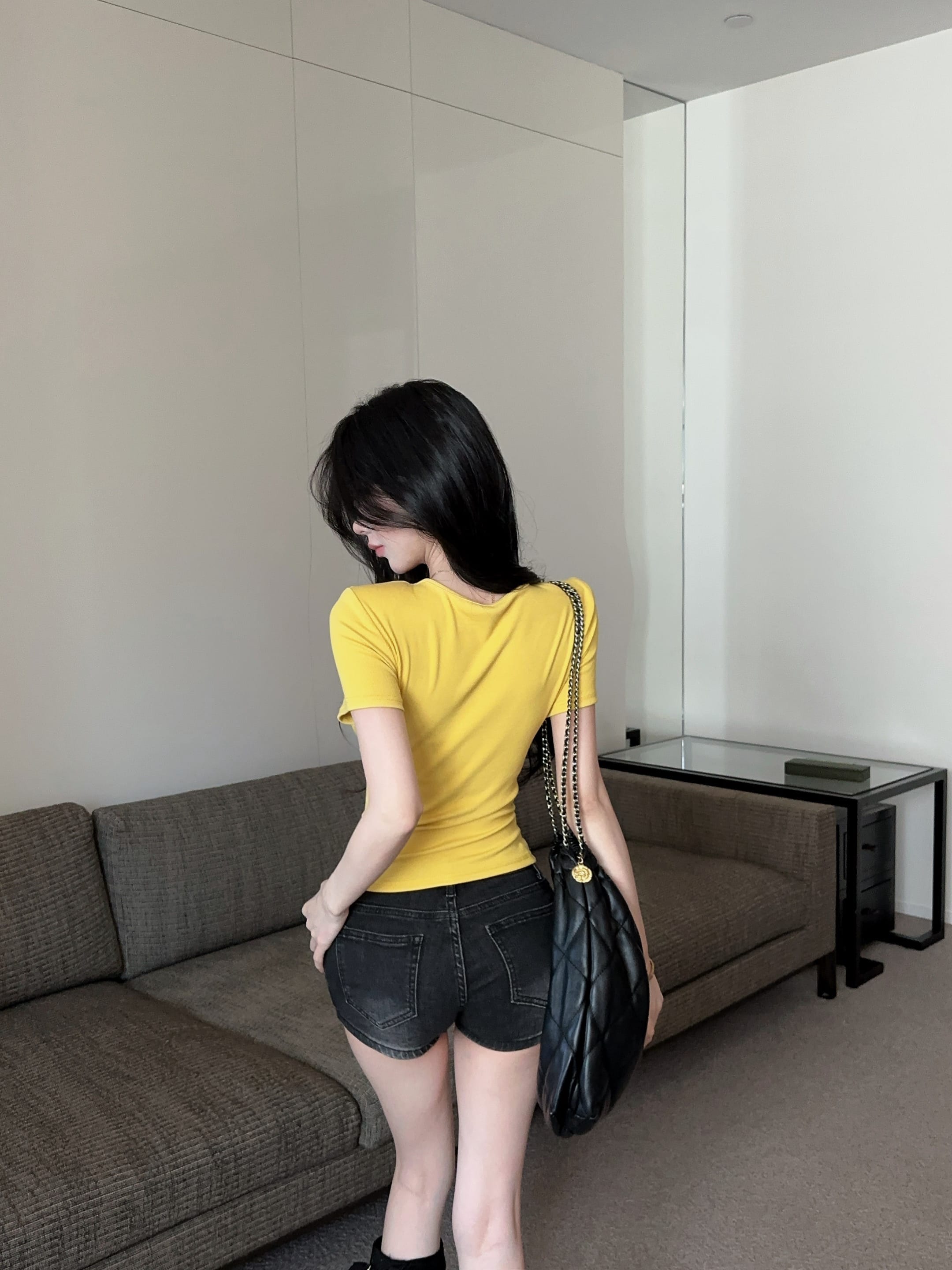 실사 정가 디자인 센스 행침 목 오프숄더 티셔츠 여성 여름 몸매 가꾸기 슬림해 보이는 반팔 오프숄더 핫걸 맨위
