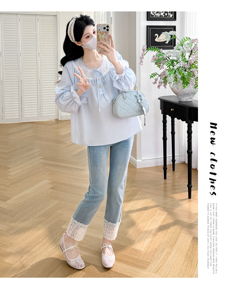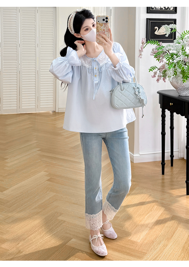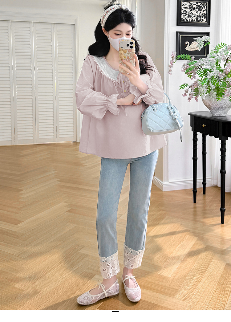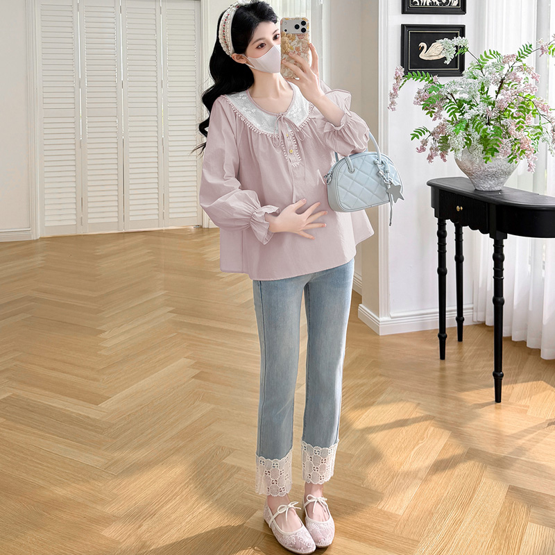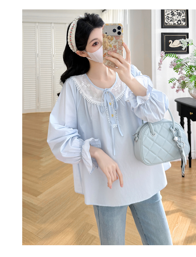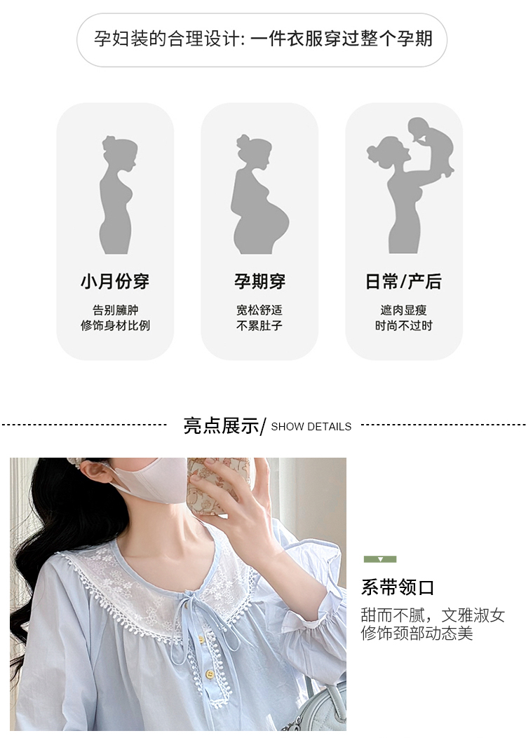 실사 2026 신제품 임산부 봄 여름 패션 달콤함 레이스업 루즈핏 셔츠 출산 착용