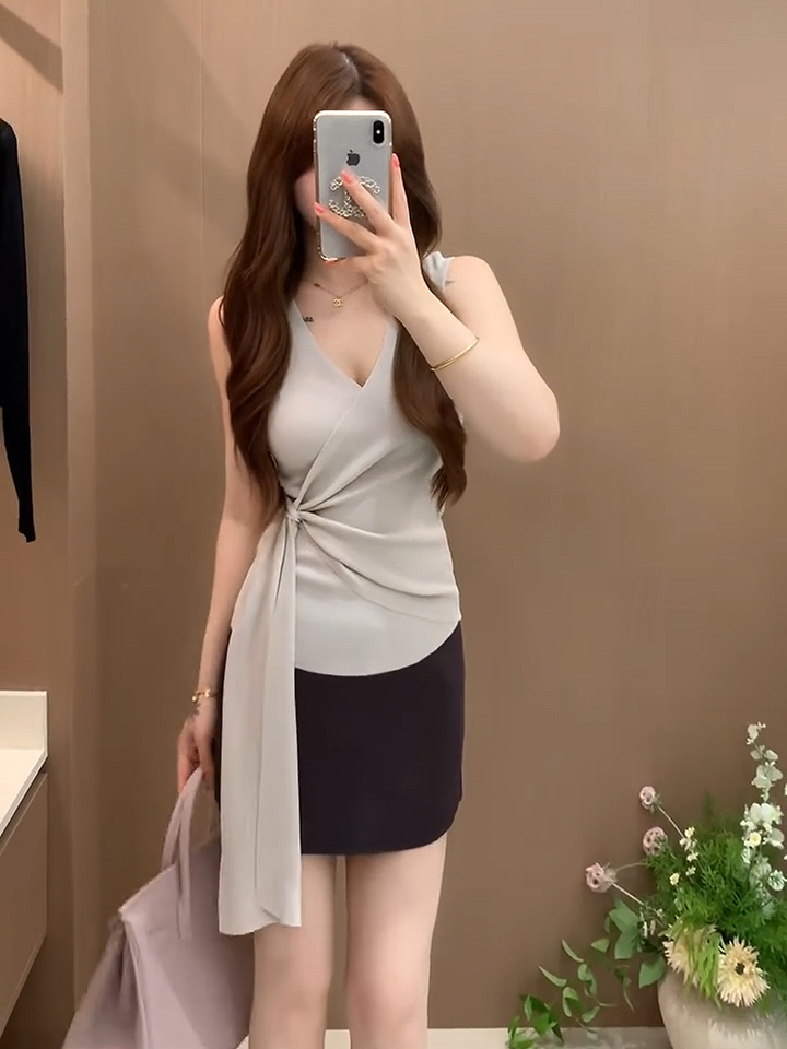 있음 도착 여름 새로운 한 부서 외국 가스 십자가 디자인 센스 V넥 다용도 슬림해 보이는 니트 조끼