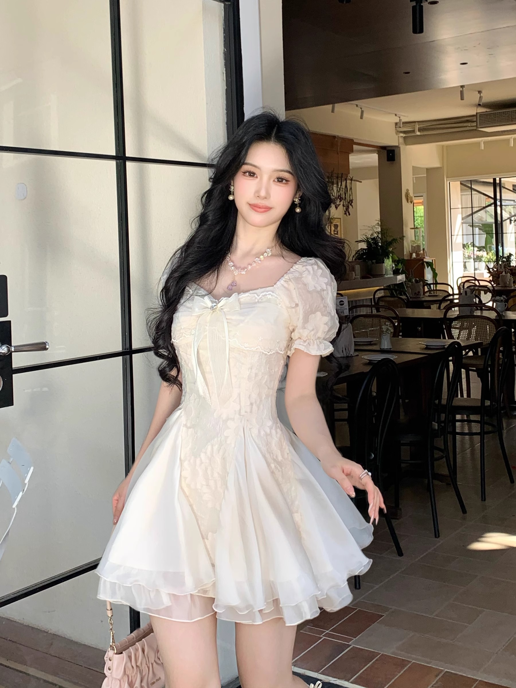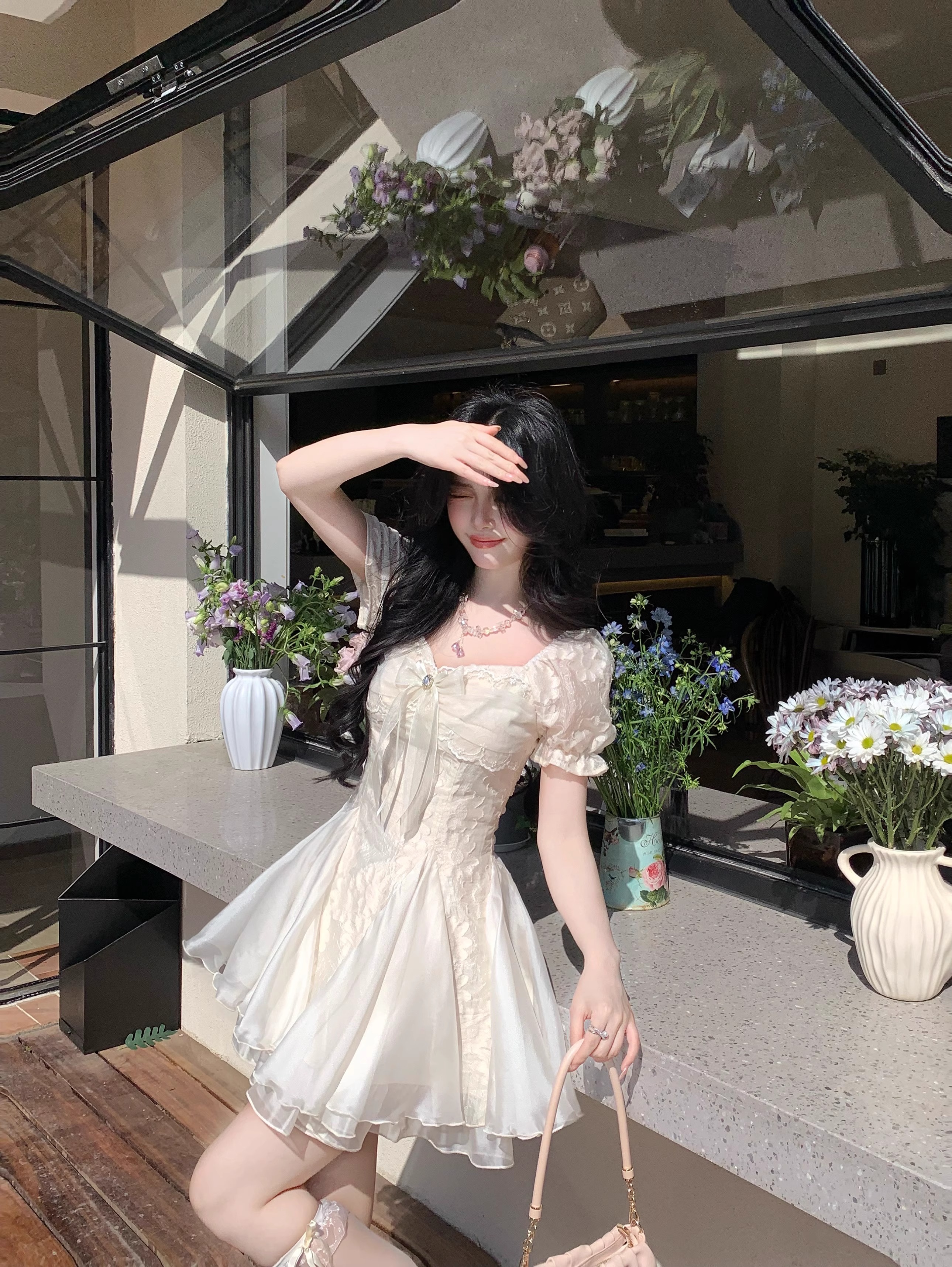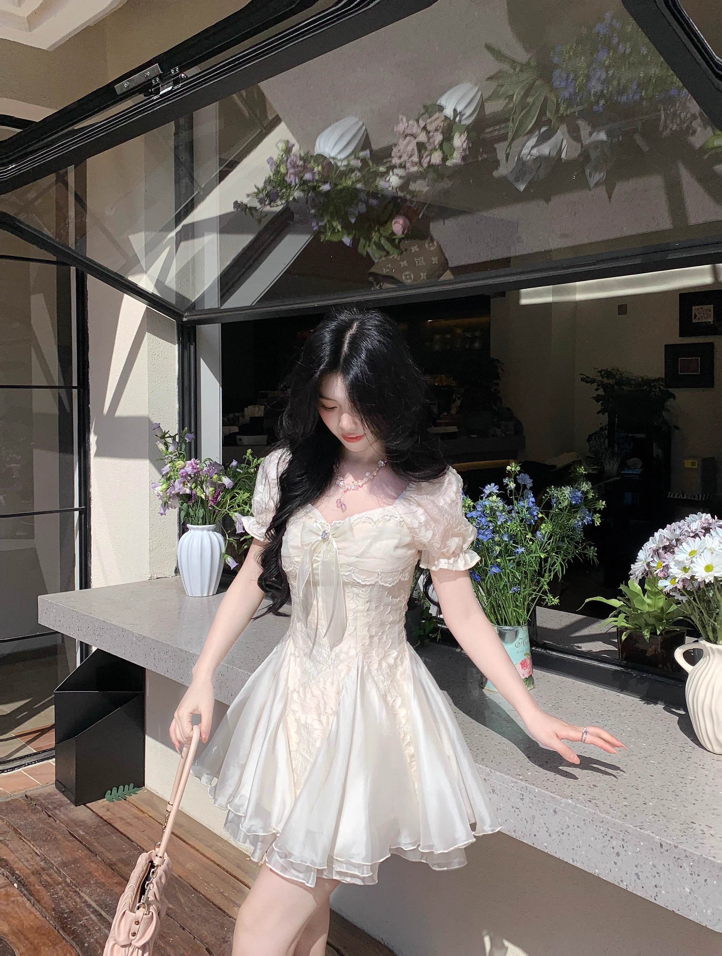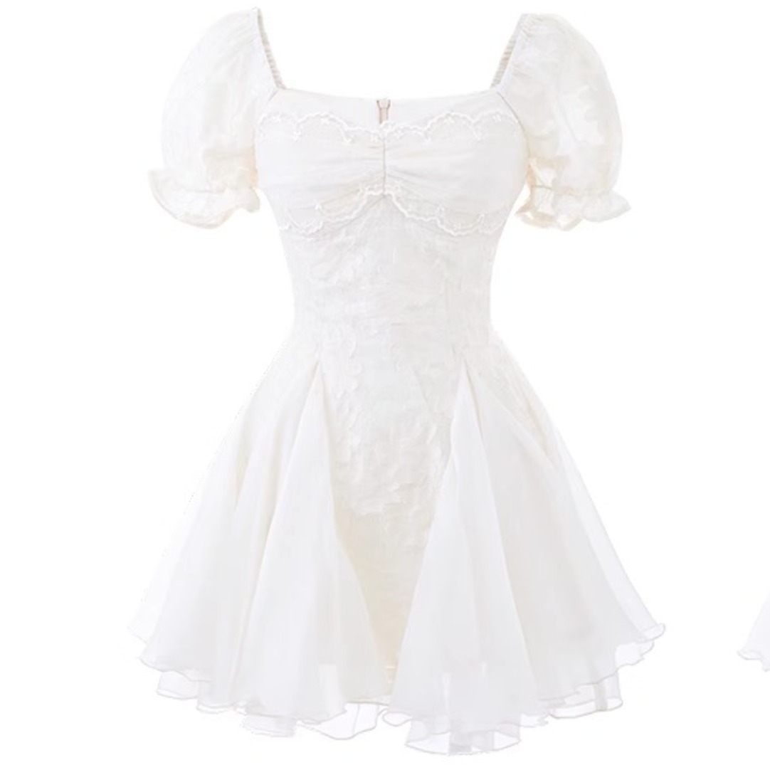 blovelan 화이트 티 와 바람 순수한 욕망 하얀 달빛 품격 전단 꽃 퍼프 망사 패치워크 드레스 공주 드레스