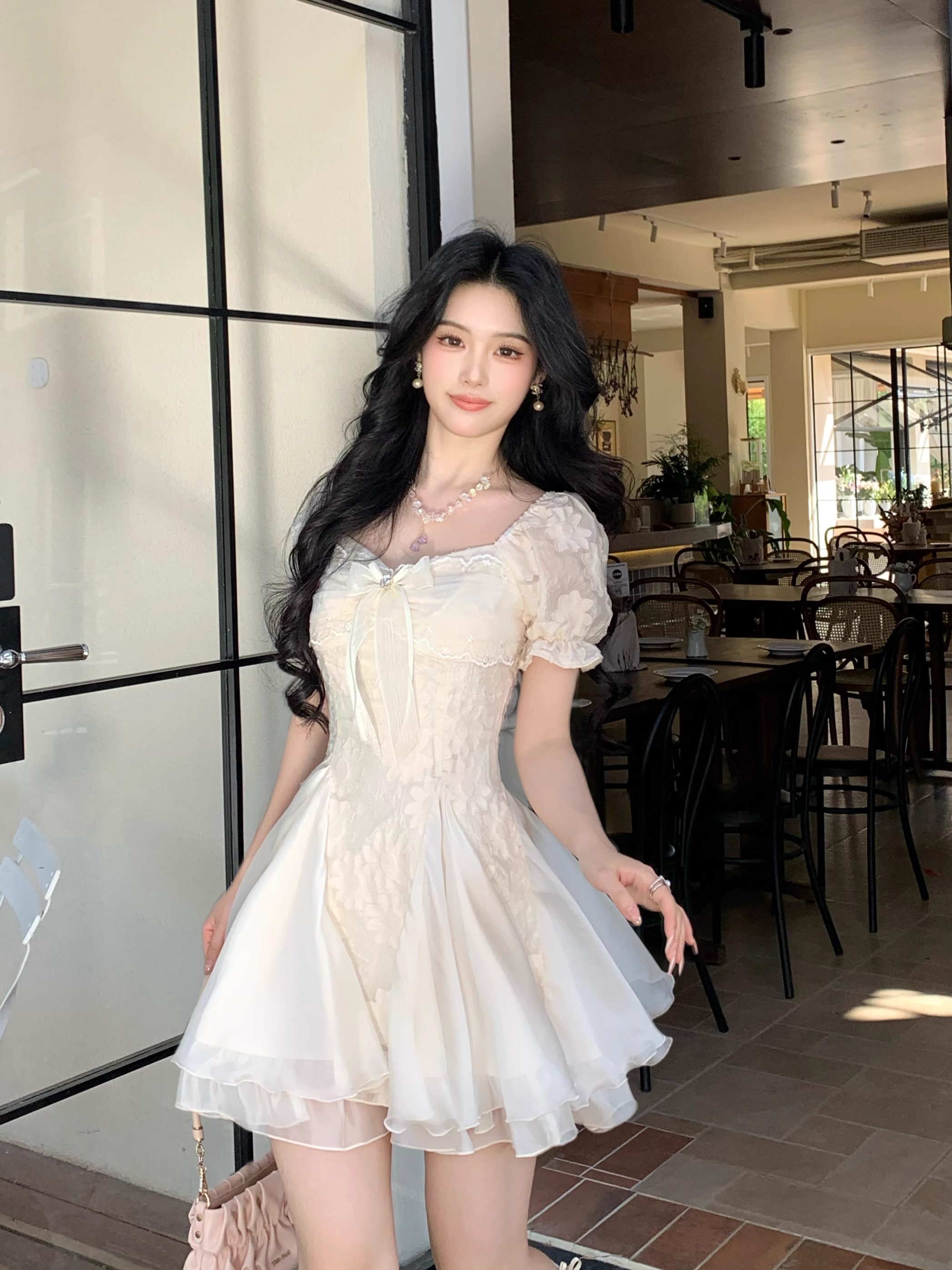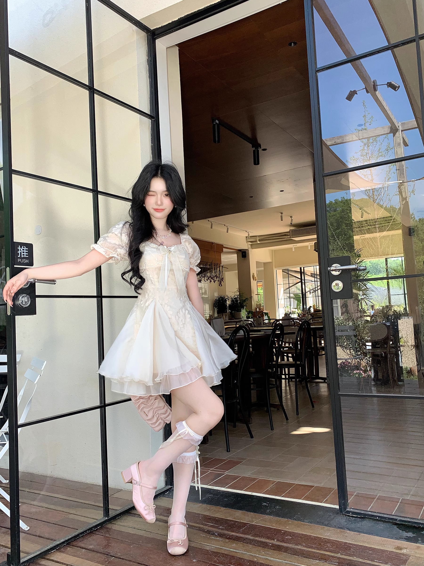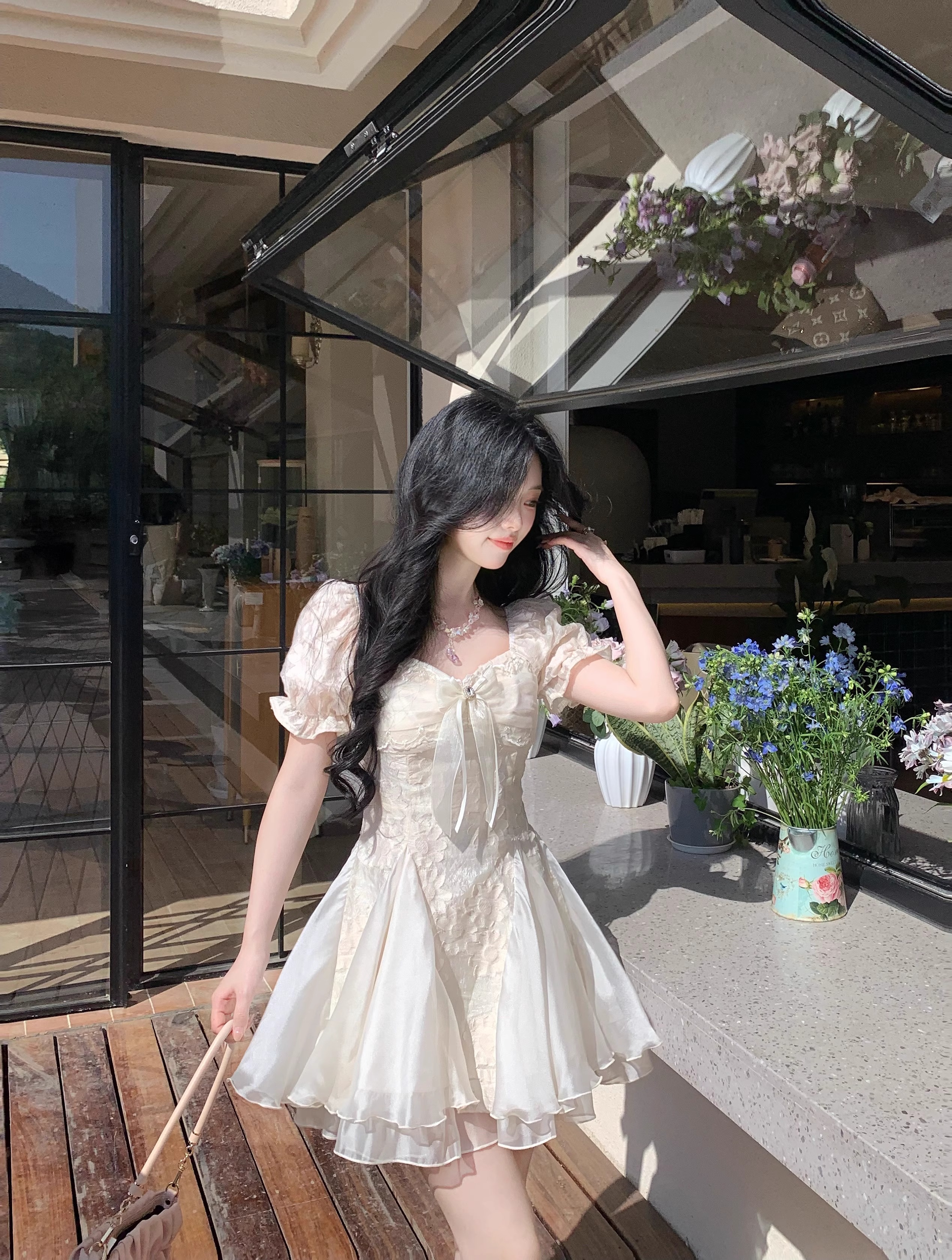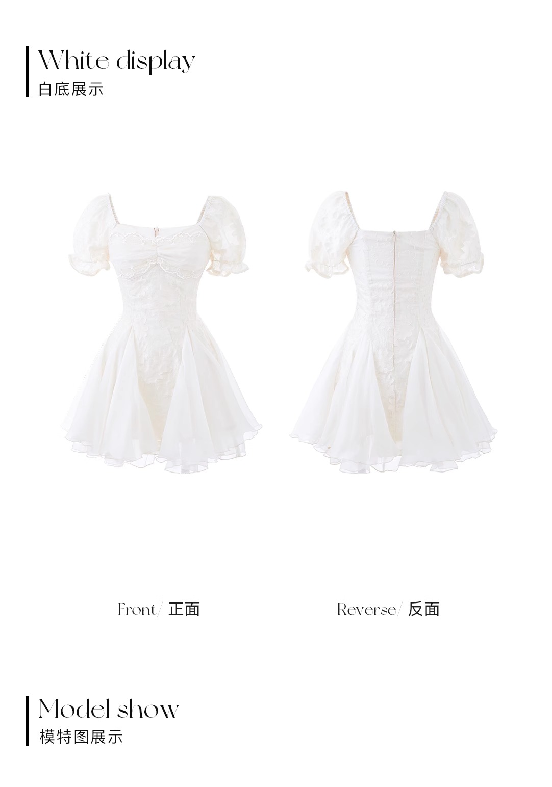 blovelan 화이트 티 와 바람 순수한 욕망 하얀 달빛 품격 전단 꽃 퍼프 망사 패치워크 드레스 공주 드레스
