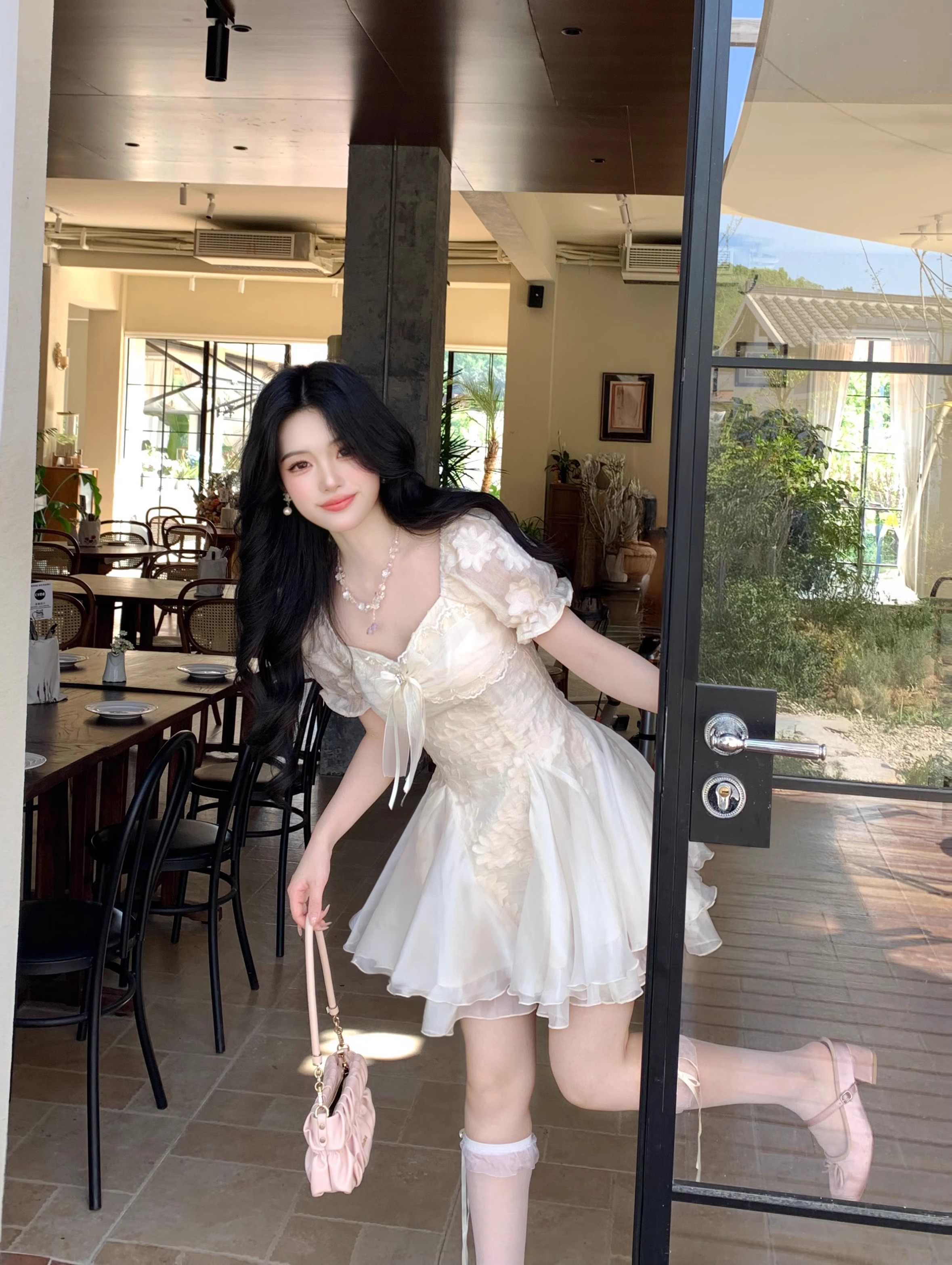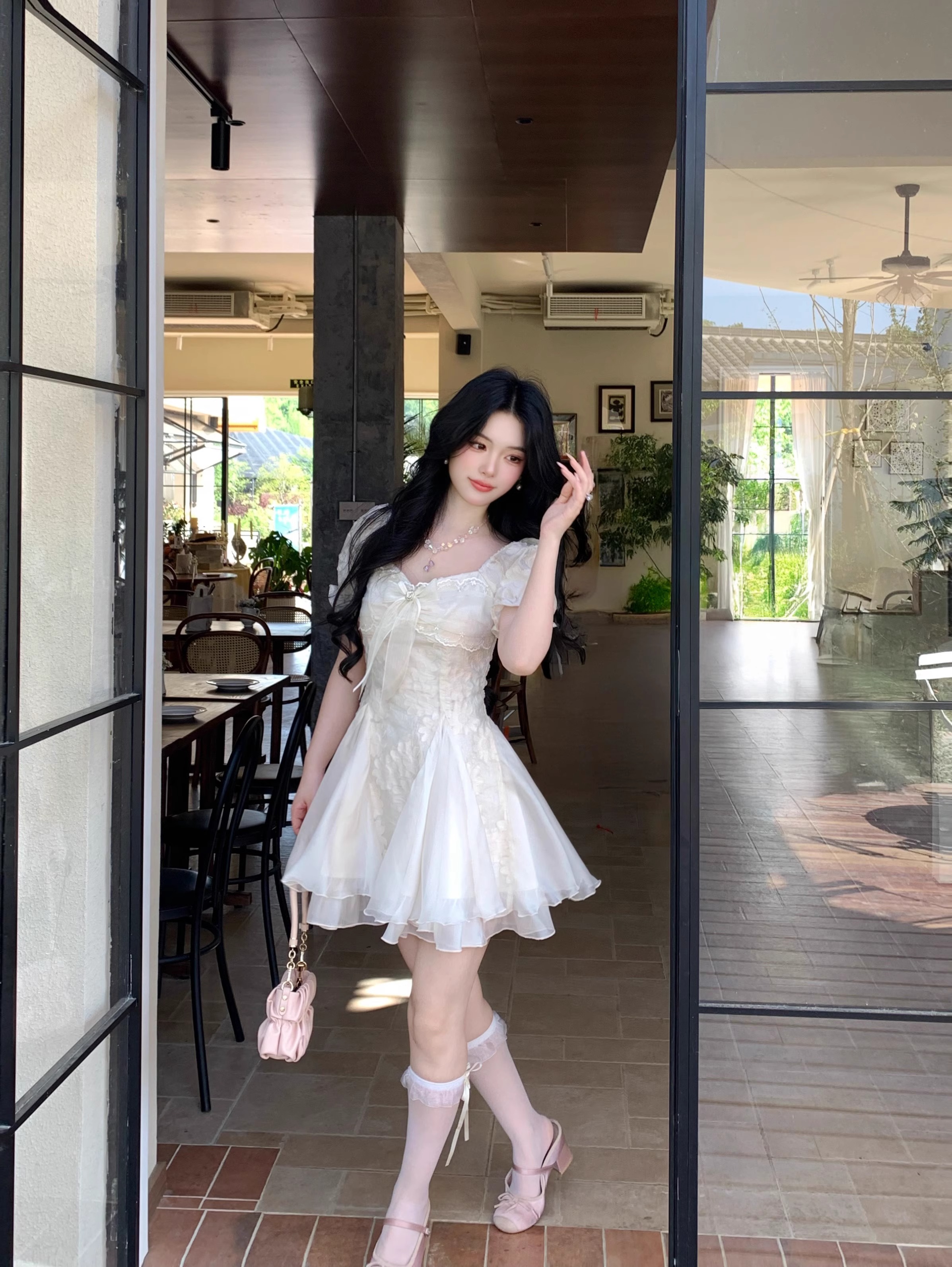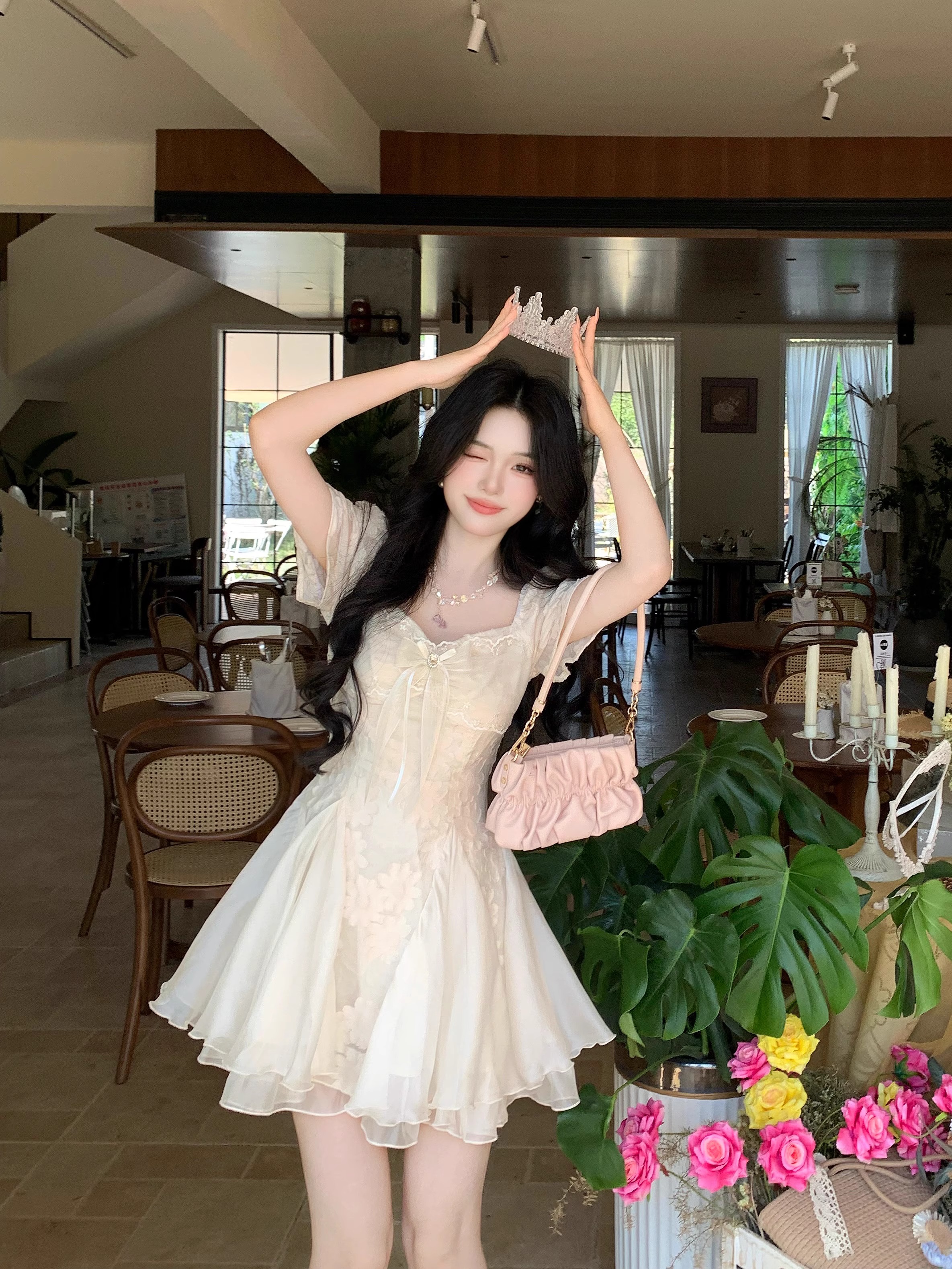 umoumo 우 버섯 원본 ntot 여름 달콤함 부드러운 몸매 가꾸기 레이스 조각 홀로우 아웃 자수 쇼트 스타일 샤오 바이 치마