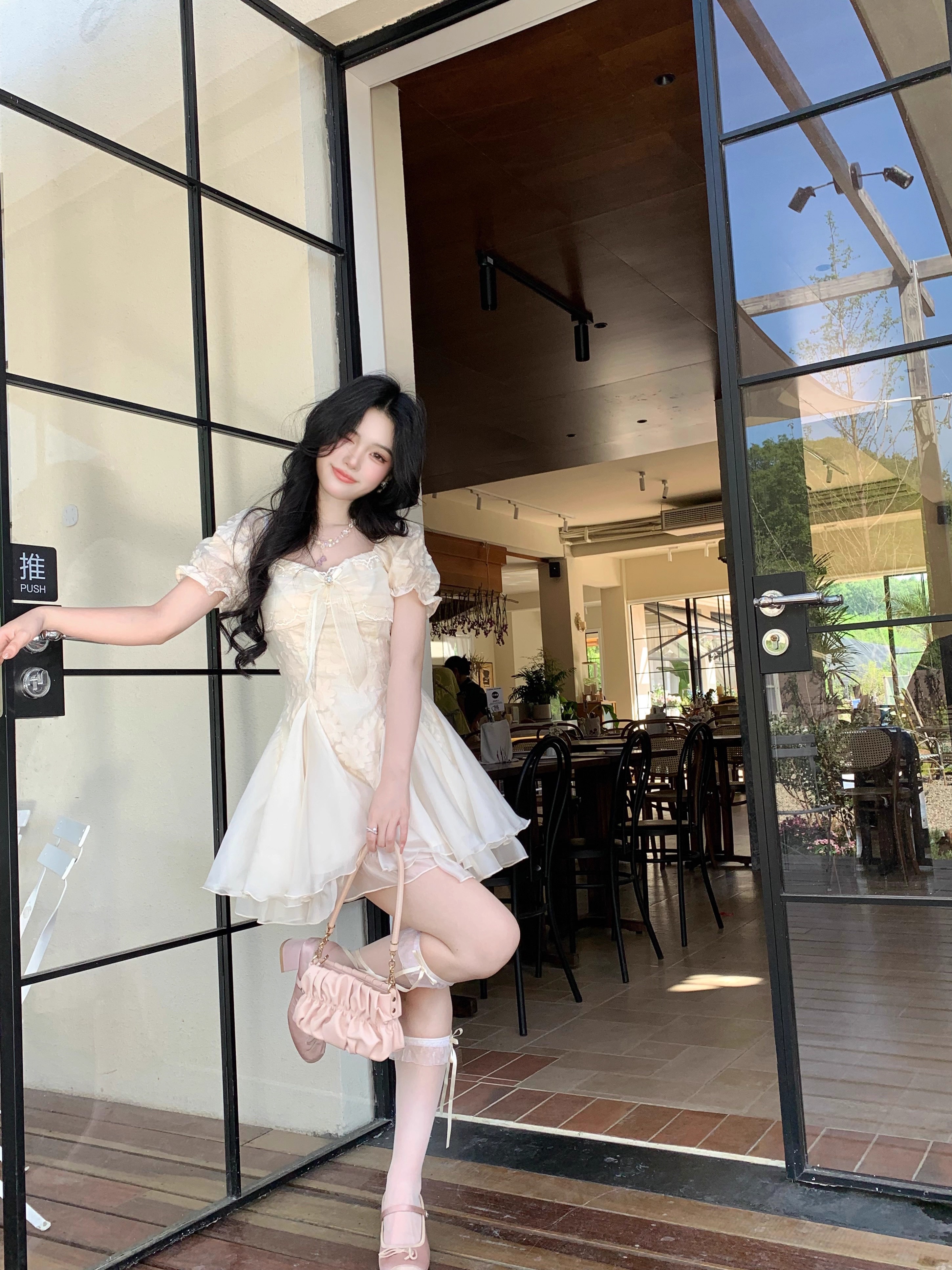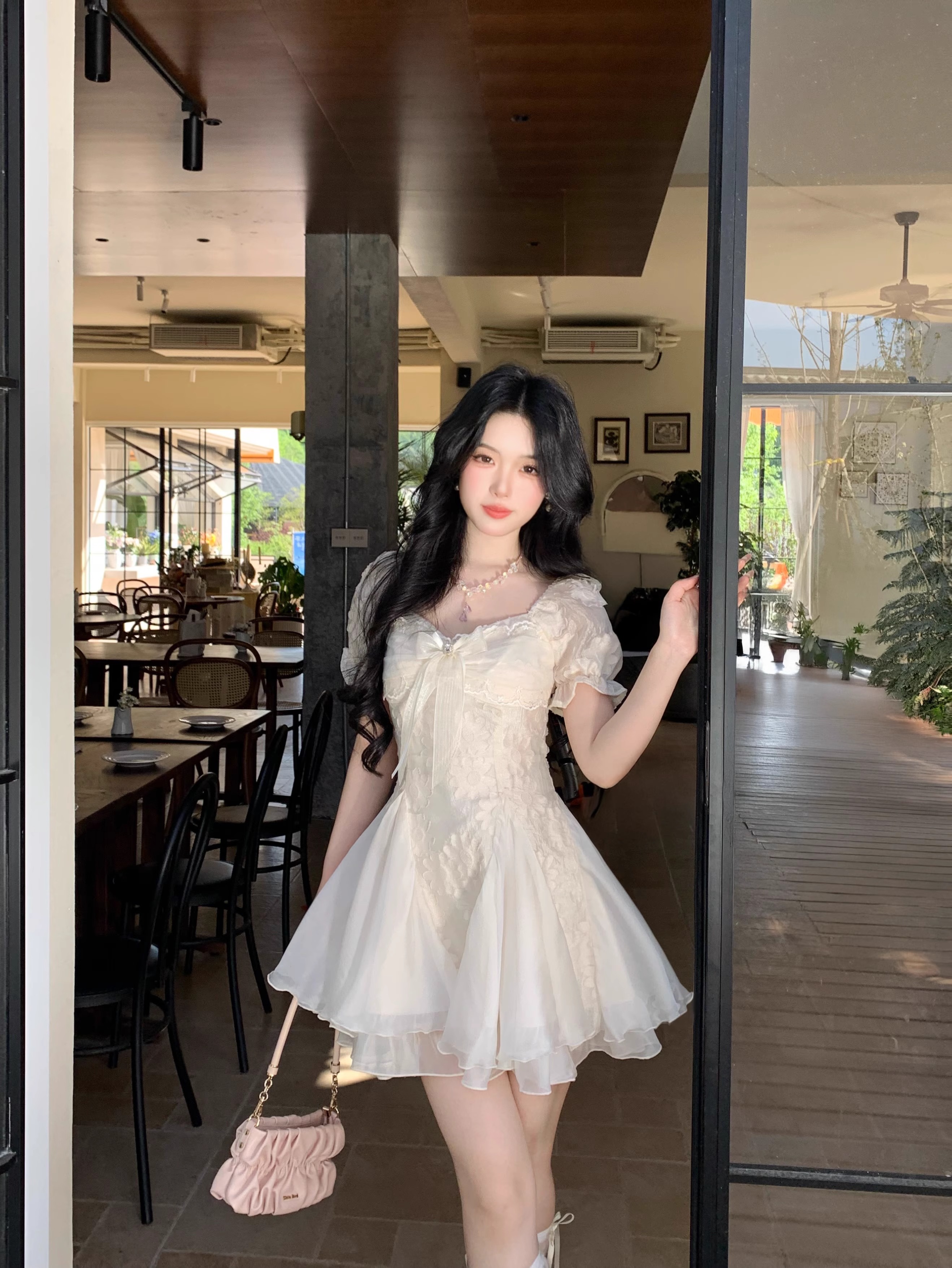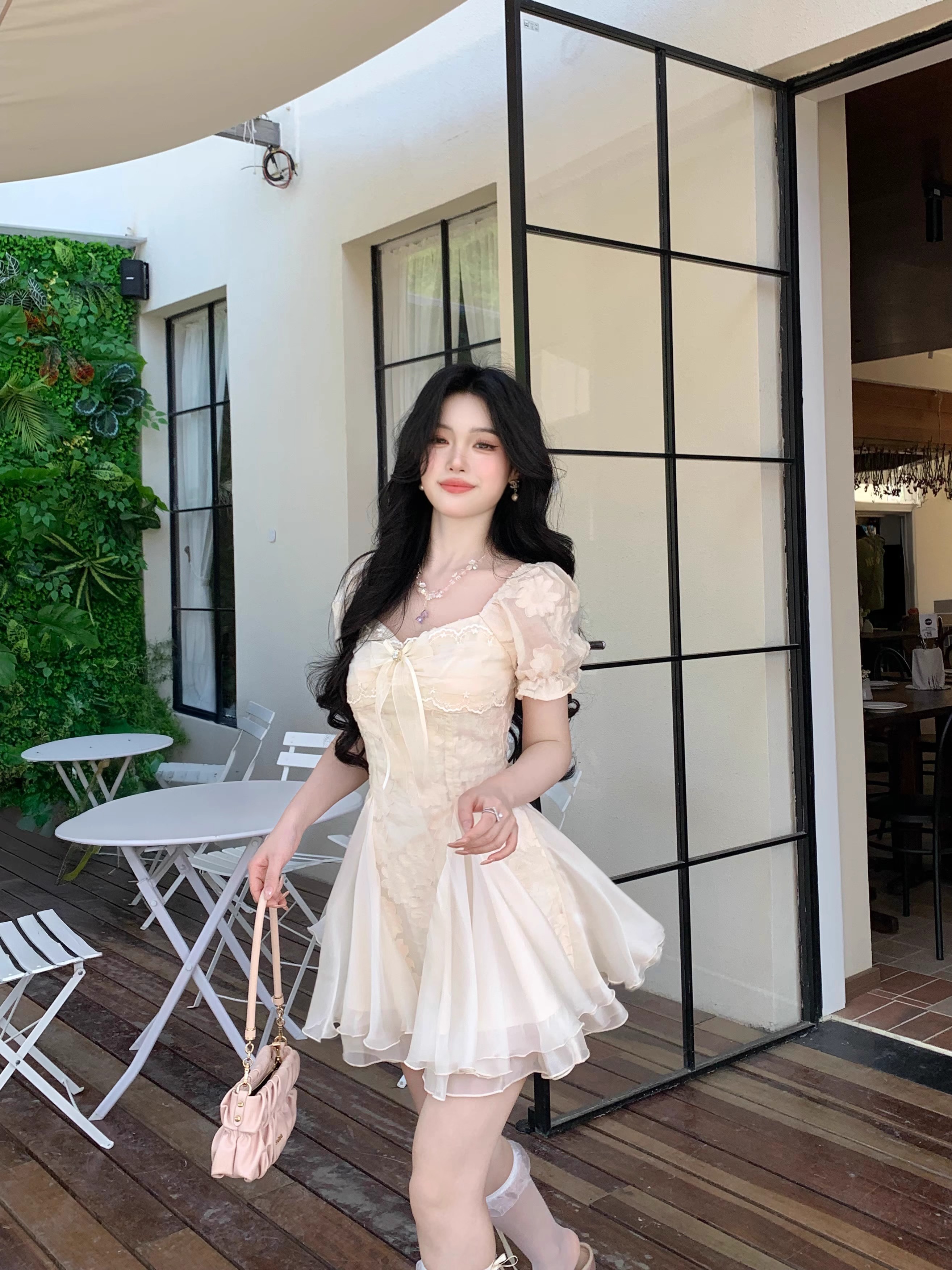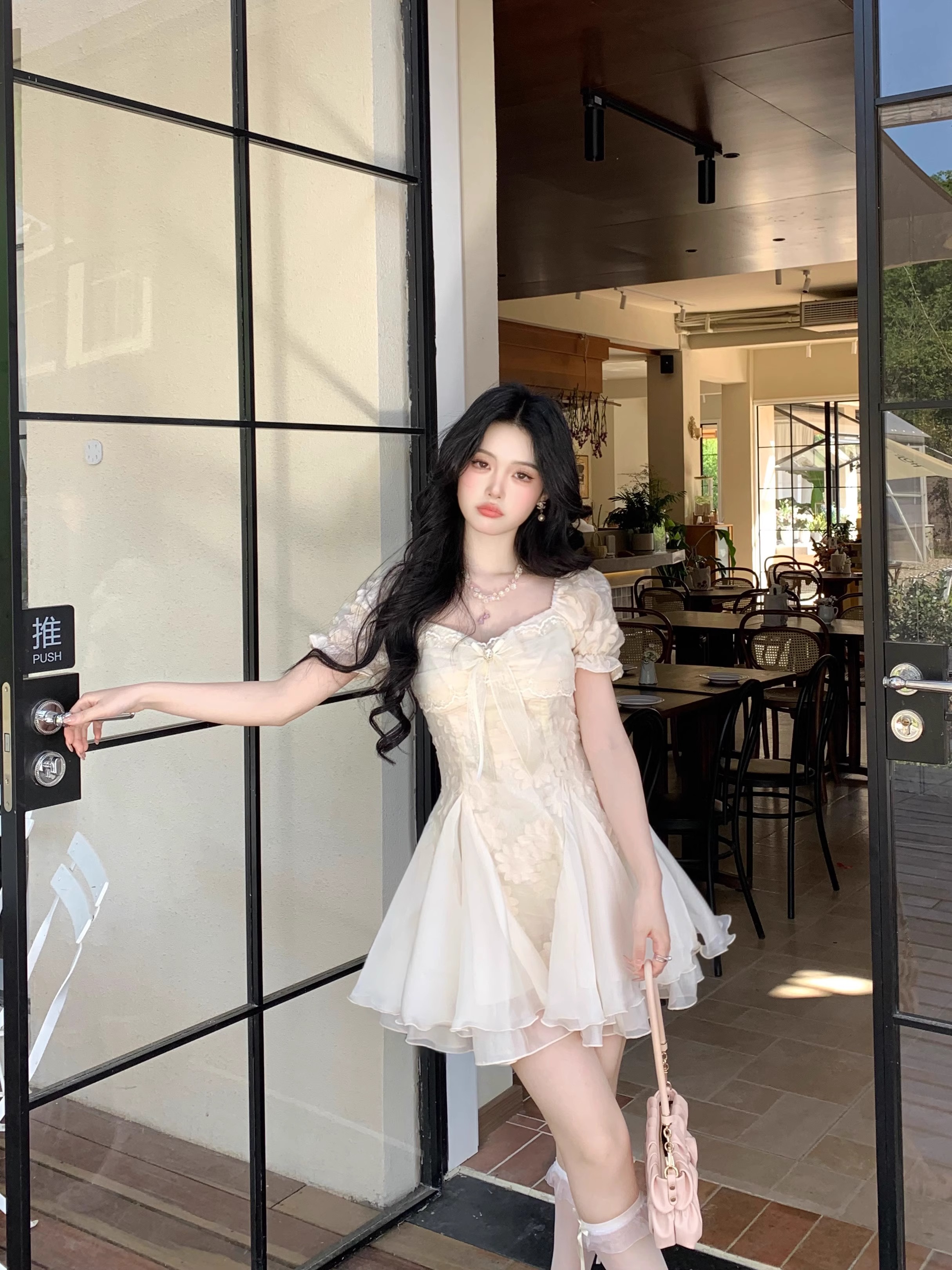 umoumo 우 버섯 원본 ntot 여름 달콤함 부드러운 몸매 가꾸기 레이스 조각 홀로우 아웃 자수 쇼트 스타일 샤오 바이 치마