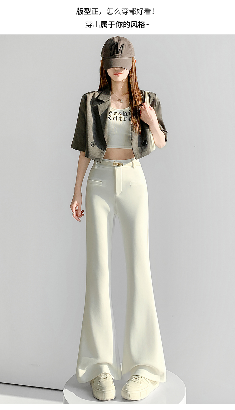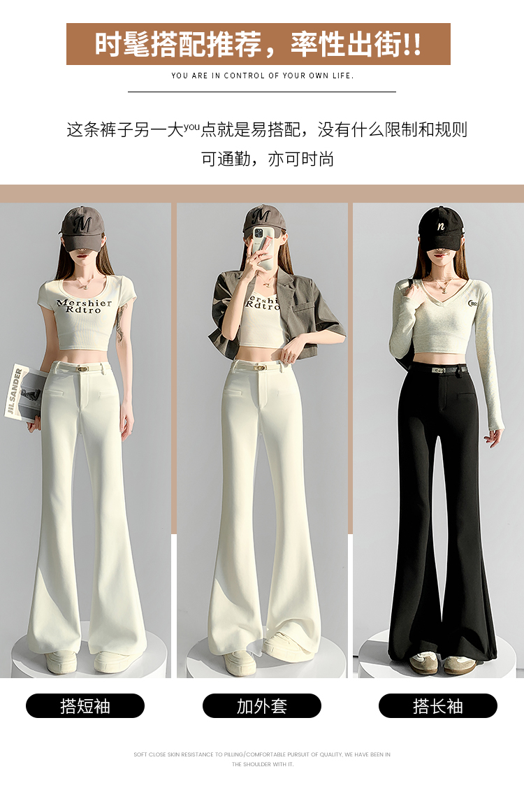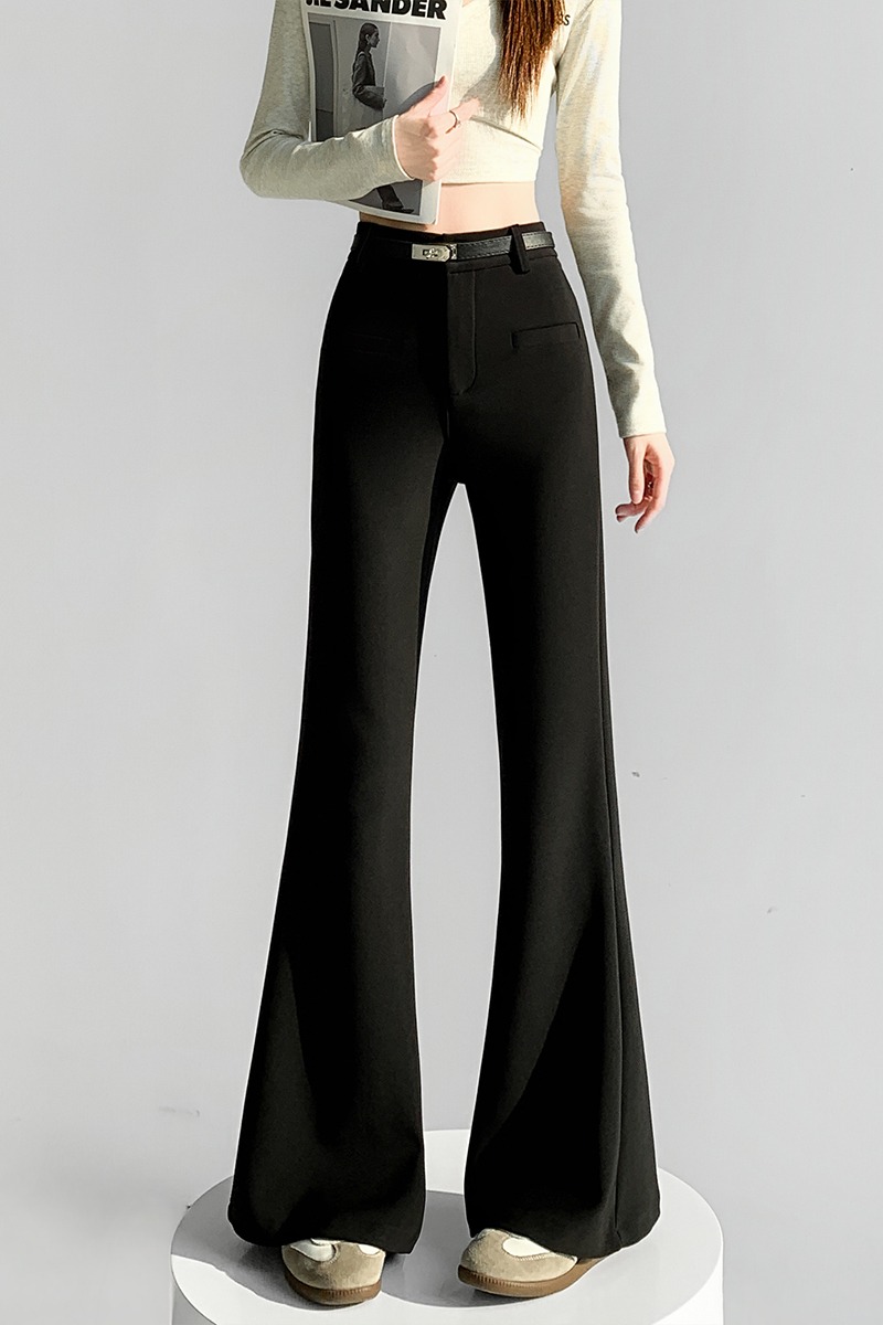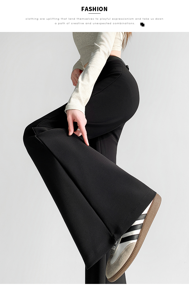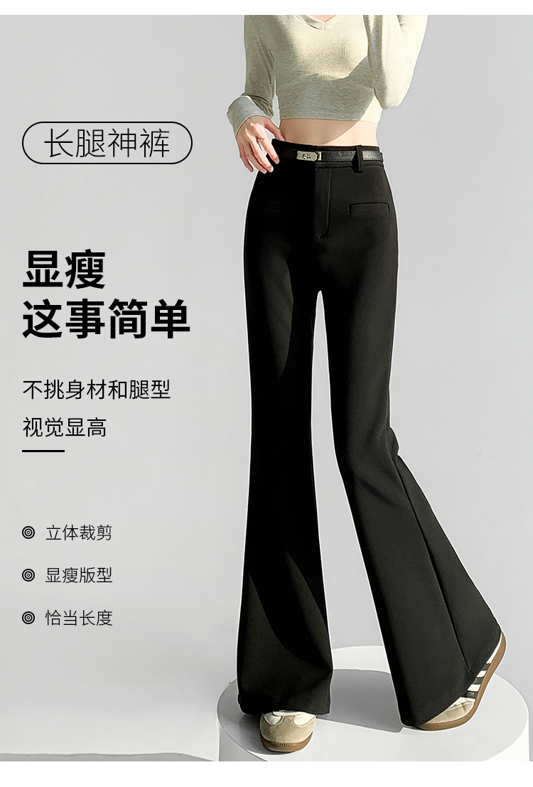 실사 검정색 정장 부츠컷 바지 여성 2026 봄 여름 새로운 하이웨이스트 슬림해 보이는 도루 센스 신축성 캐주얼 나팔 긴 바지