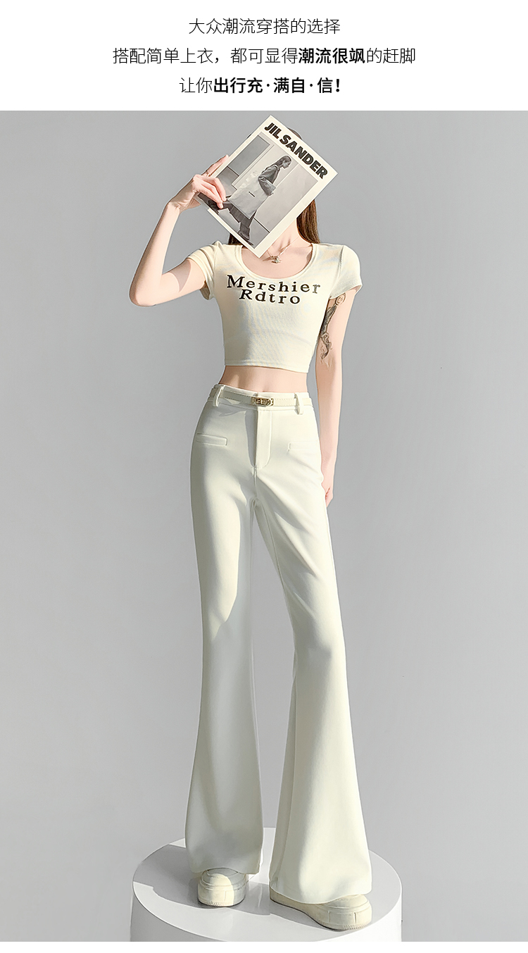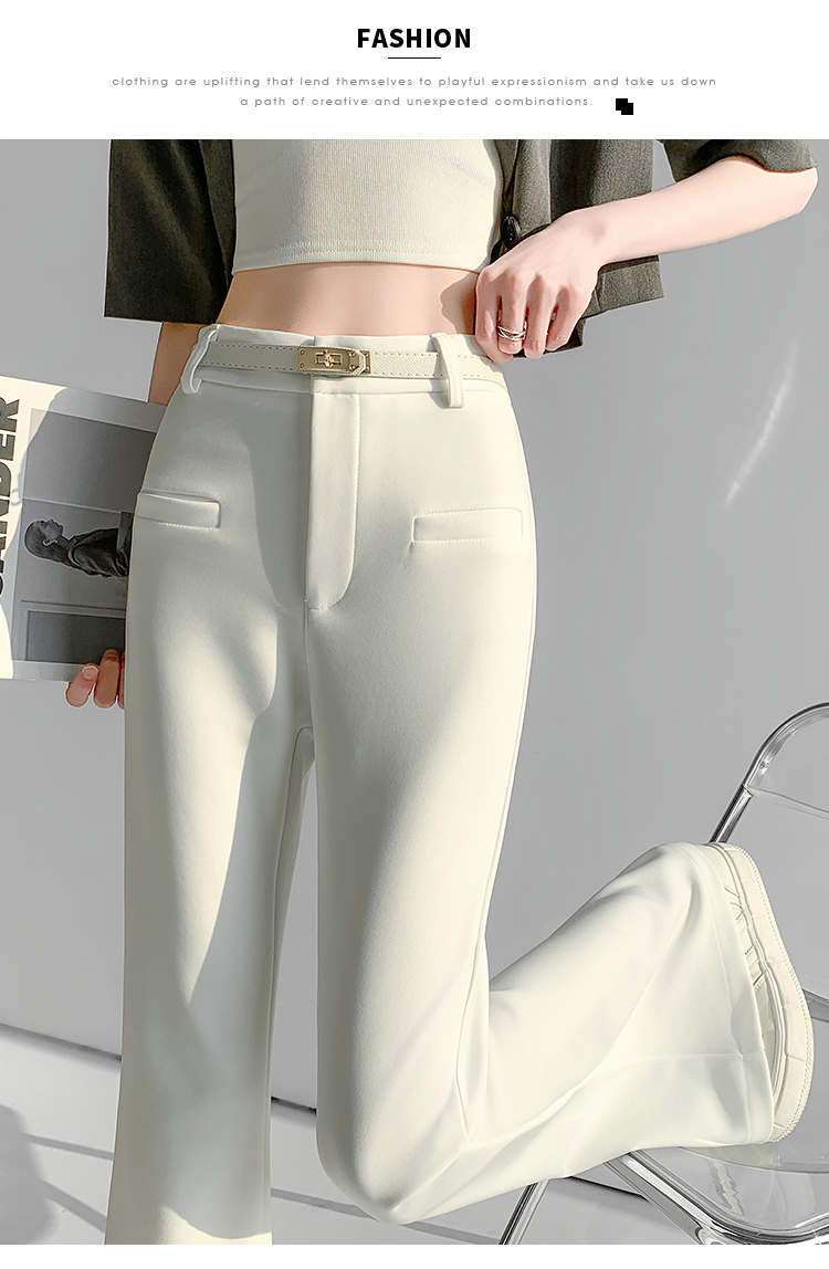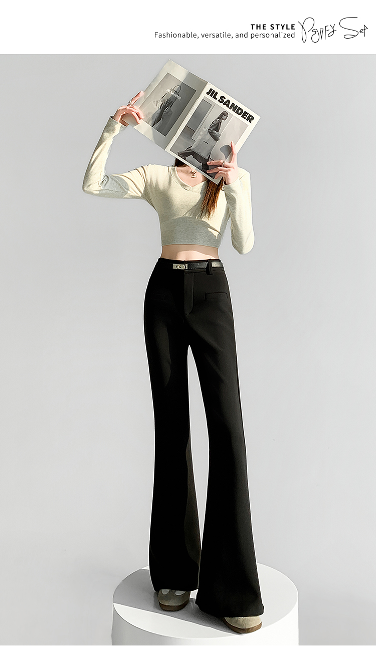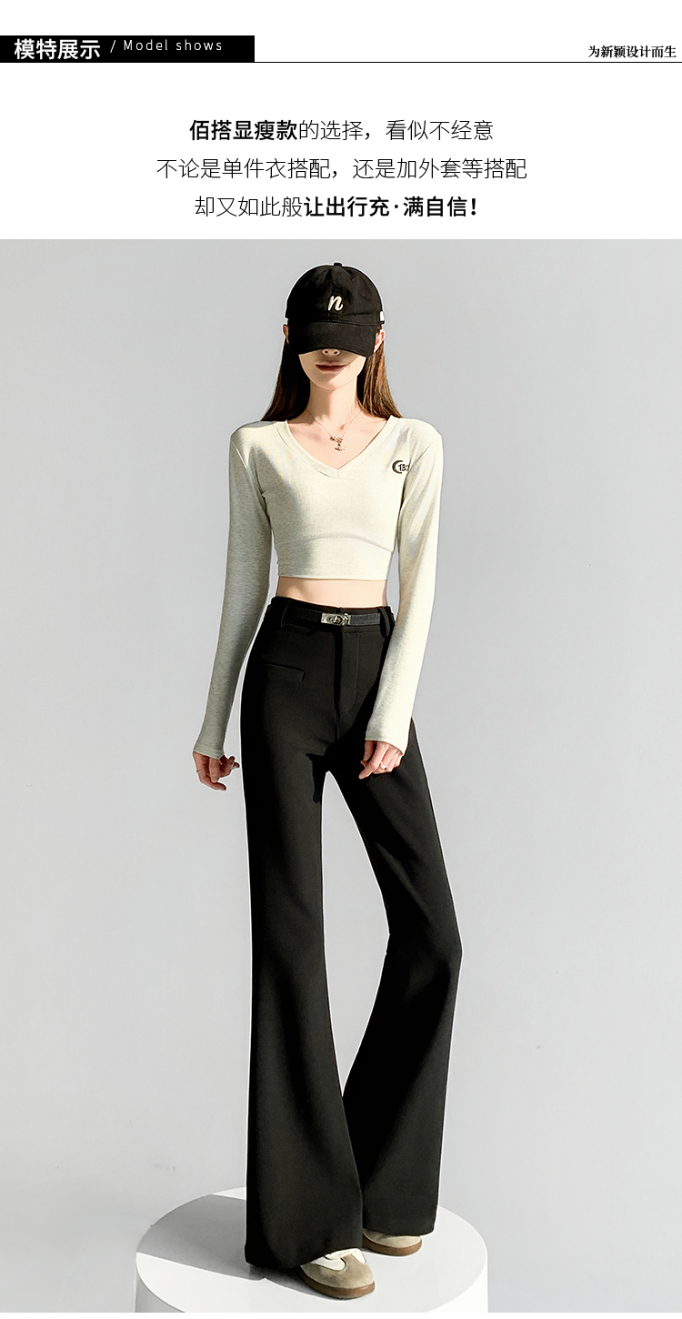 실사 검정색 정장 부츠컷 바지 여성 2026 봄 여름 새로운 하이웨이스트 슬림해 보이는 도루 센스 신축성 캐주얼 나팔 긴 바지