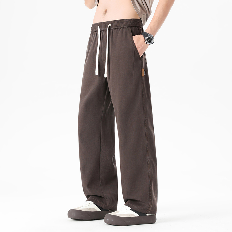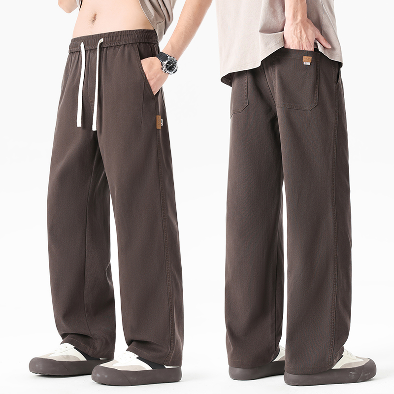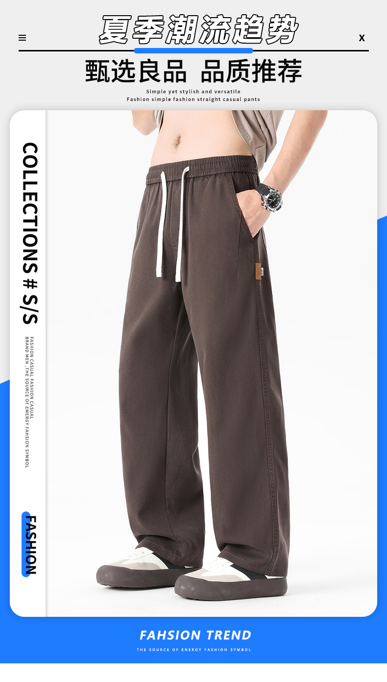 실사 2026 봄 여름 남성 비즈니스 캐주얼 롱 바지 스트레이트 루즈핏 신축성 몸매 가꾸기 남성용 바지 트렌디