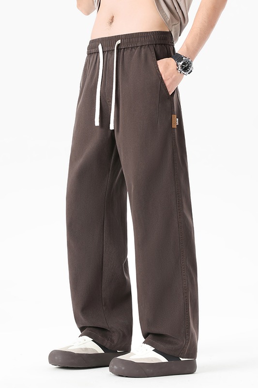 실사 2026 봄 여름 새로운 스트레이트 캐주얼 바지 남자 라이 경기 서울 신축성 편안함 허리밴드 바지