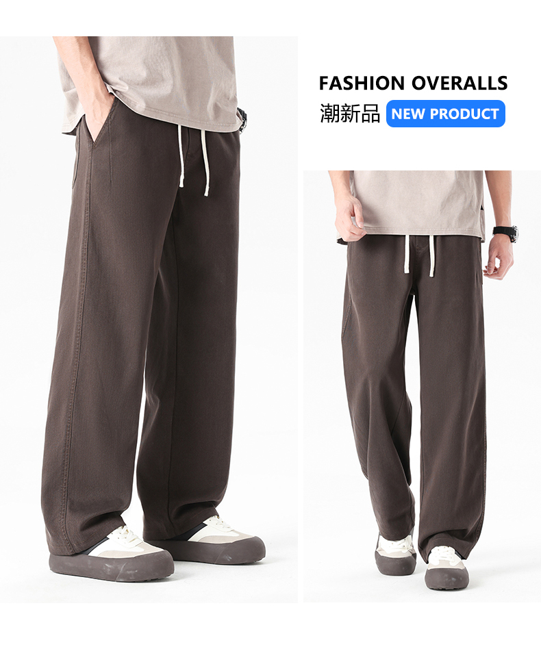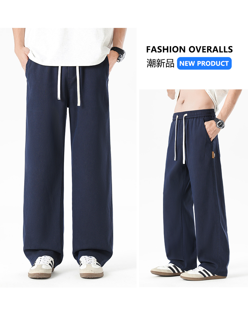 실사 2026 여름 새로운 레트로 모방 데님 워시 물 스트레이트 캐주얼 바지 남자 허리밴드 끈 바지