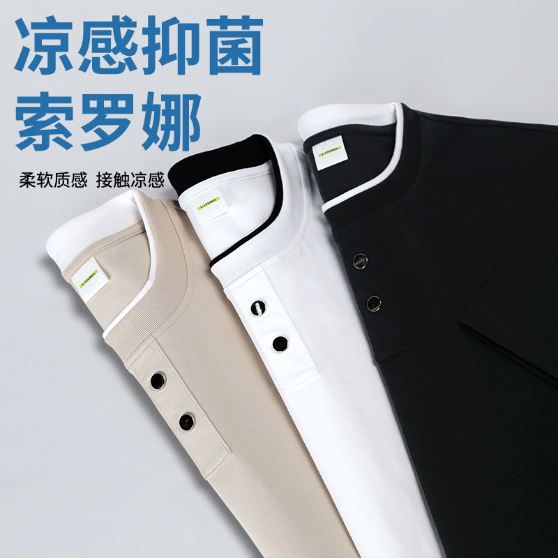 폭발 높은 품질 남자 40 차가운 면 10a 수준 항균 저항 자외선 수분 흡수 땀 배출 비즈니스 POLO 셔츠 반팔
