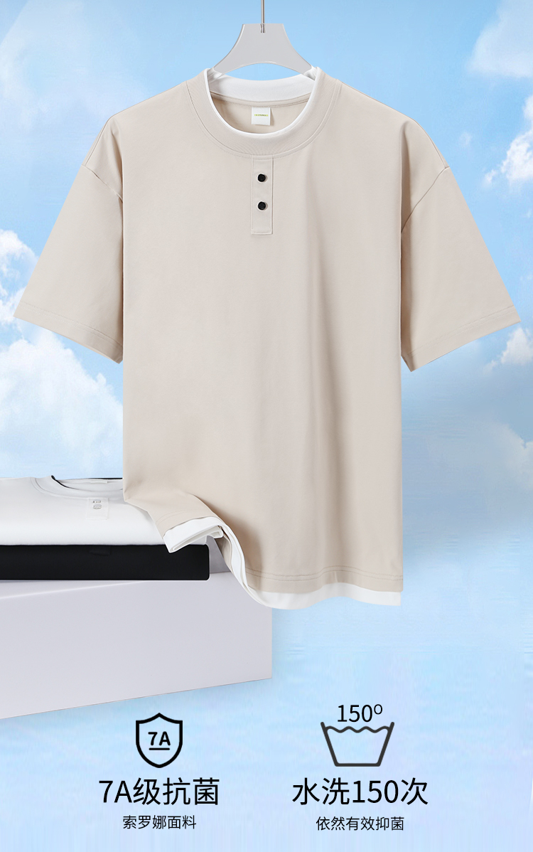 높은 품질 남자 조수 브랜드 7a 수준 항균 260 케이블 로라 차가운 센스 편안함 통기성 캐주얼 루즈핏 페이크 레이어드 반팔