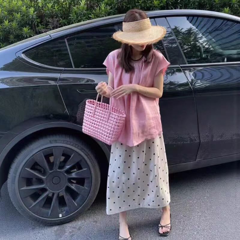 milyroom 여름 한 부서 분위기 센스 숙녀 부드러운 달콤함 품격 맨위 여성용 짧은 소매 도트 무늬 치마 세트