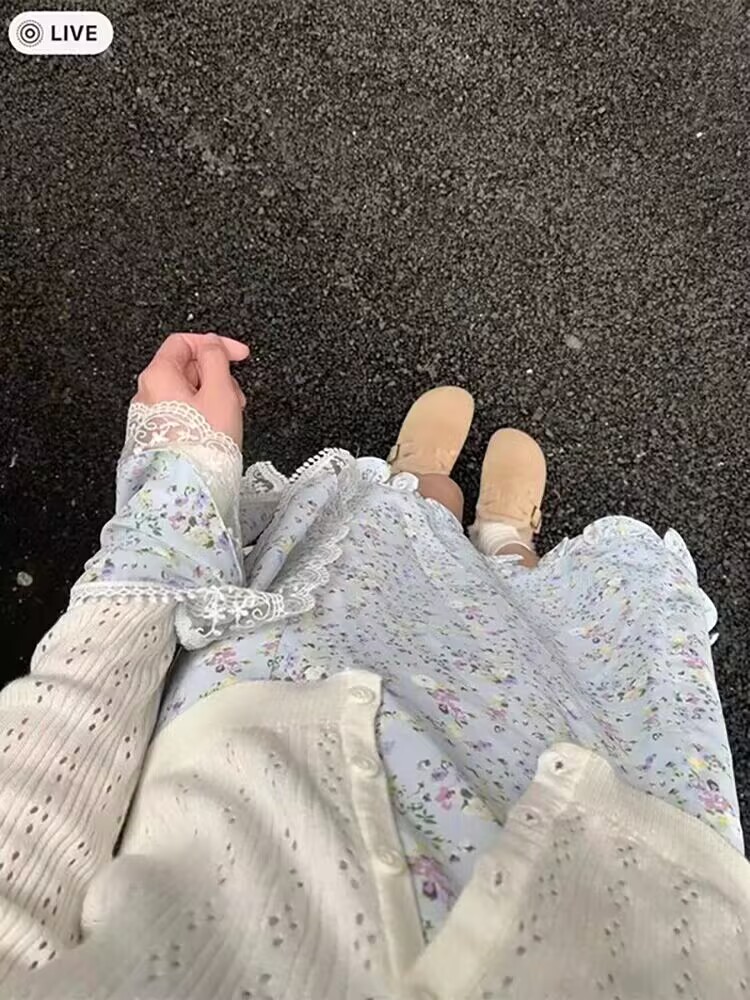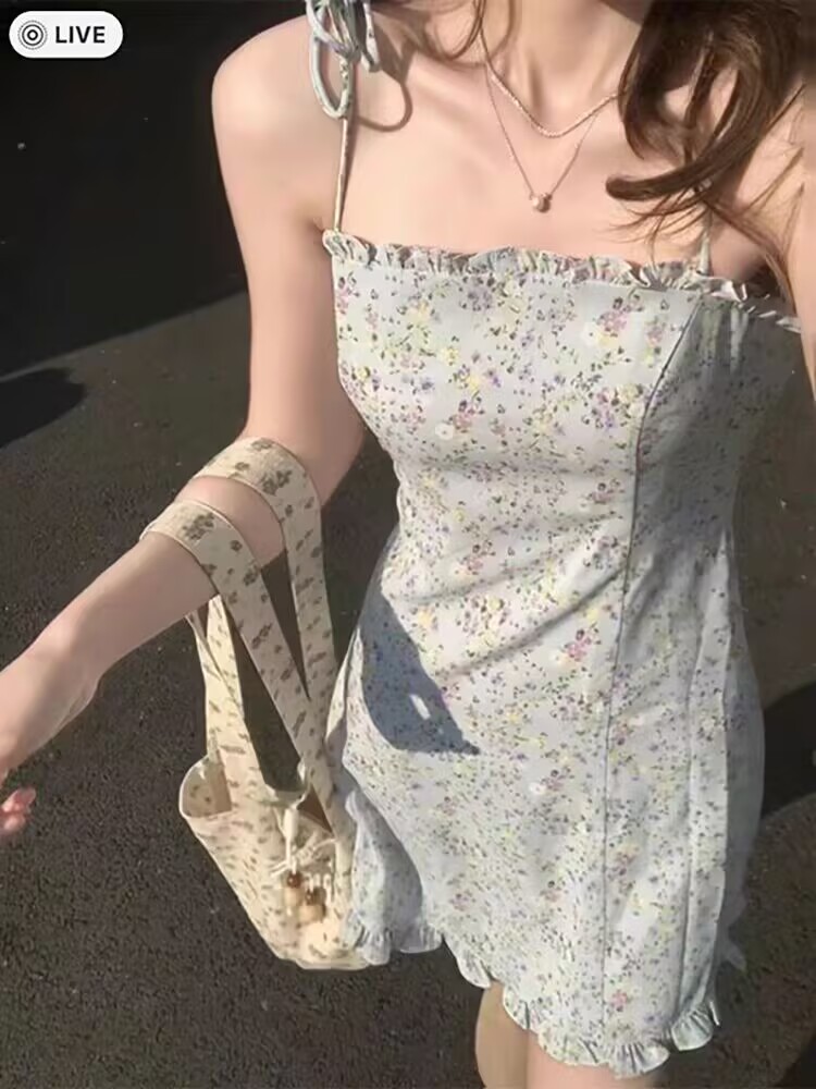실사 프랑스식 꽃무늬 슬립 드레스 투피스 세트 고급 센스 허리 수축 슬림해 보이는 품격 휴가 바람 요정 롱 스커트