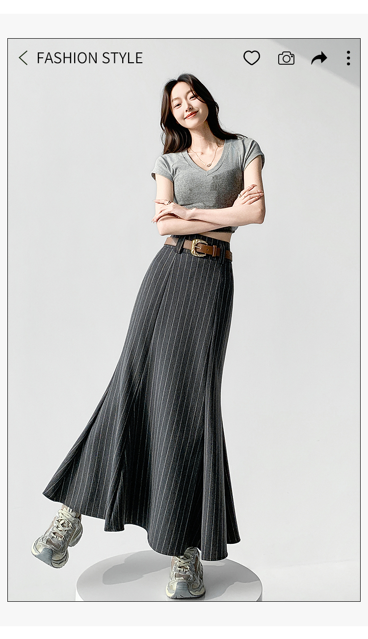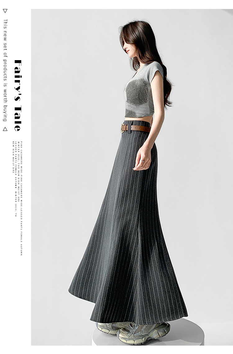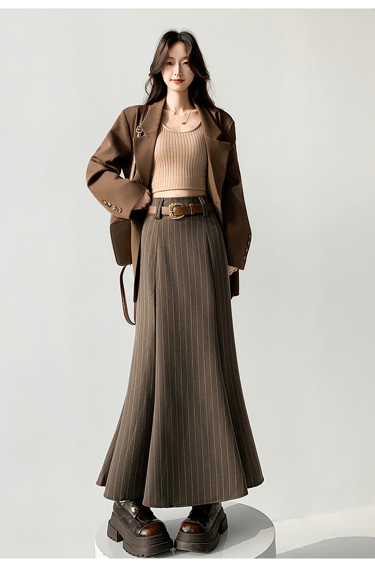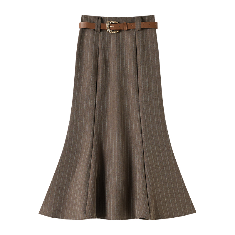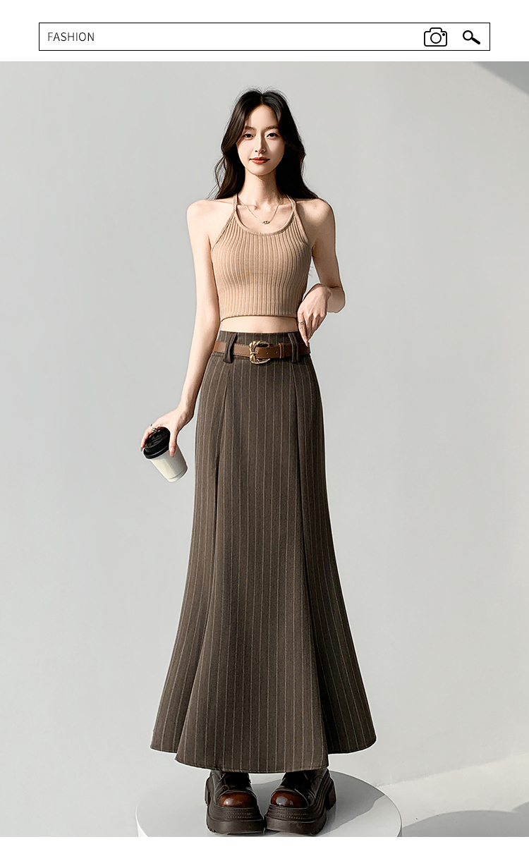 실사 레트로 스트라이프 하이웨이스트 인어 꼬리 스커트 반신 스커트 여성 2026 봄 여름 새로운 품격 슬림해 보이는 정장 롱 스커트