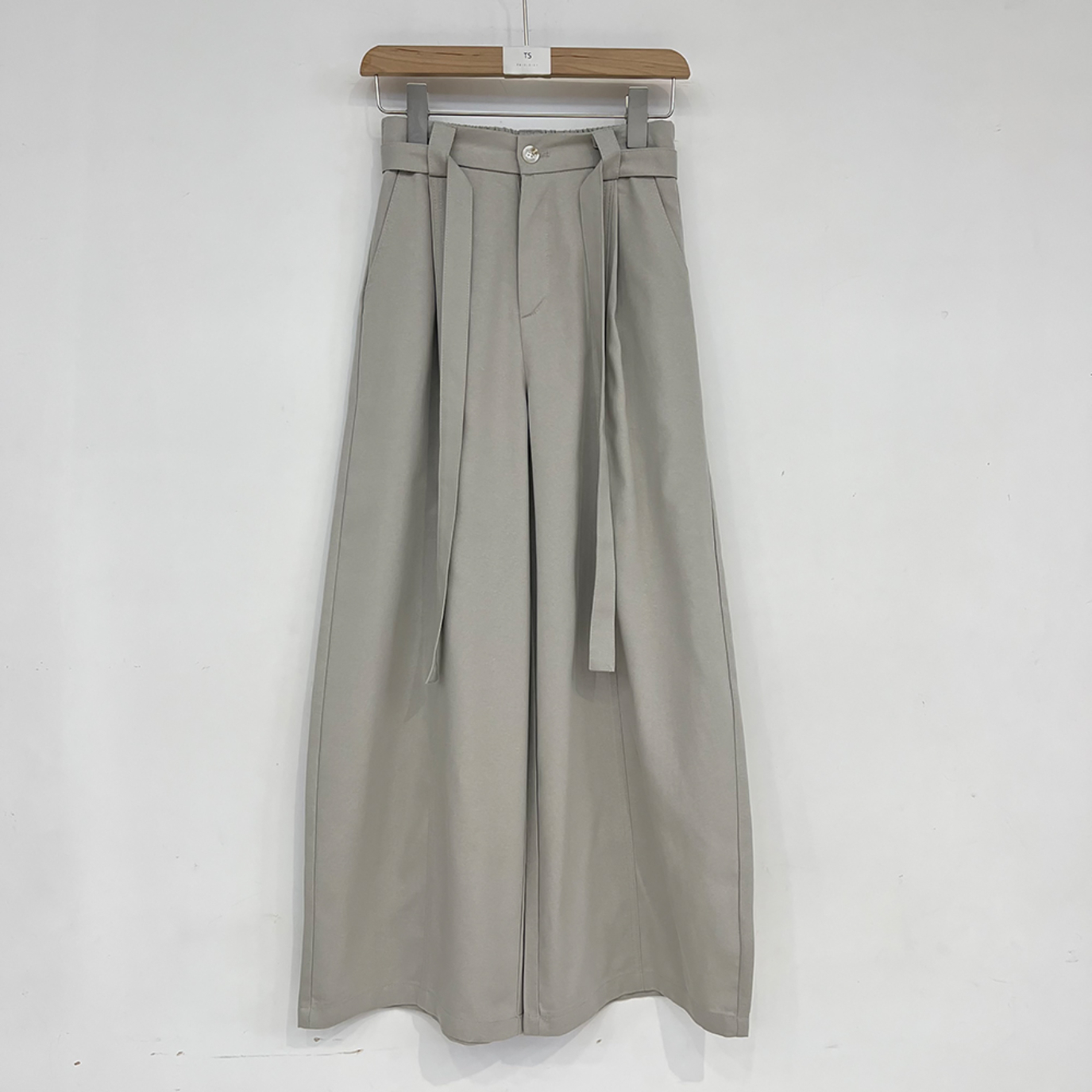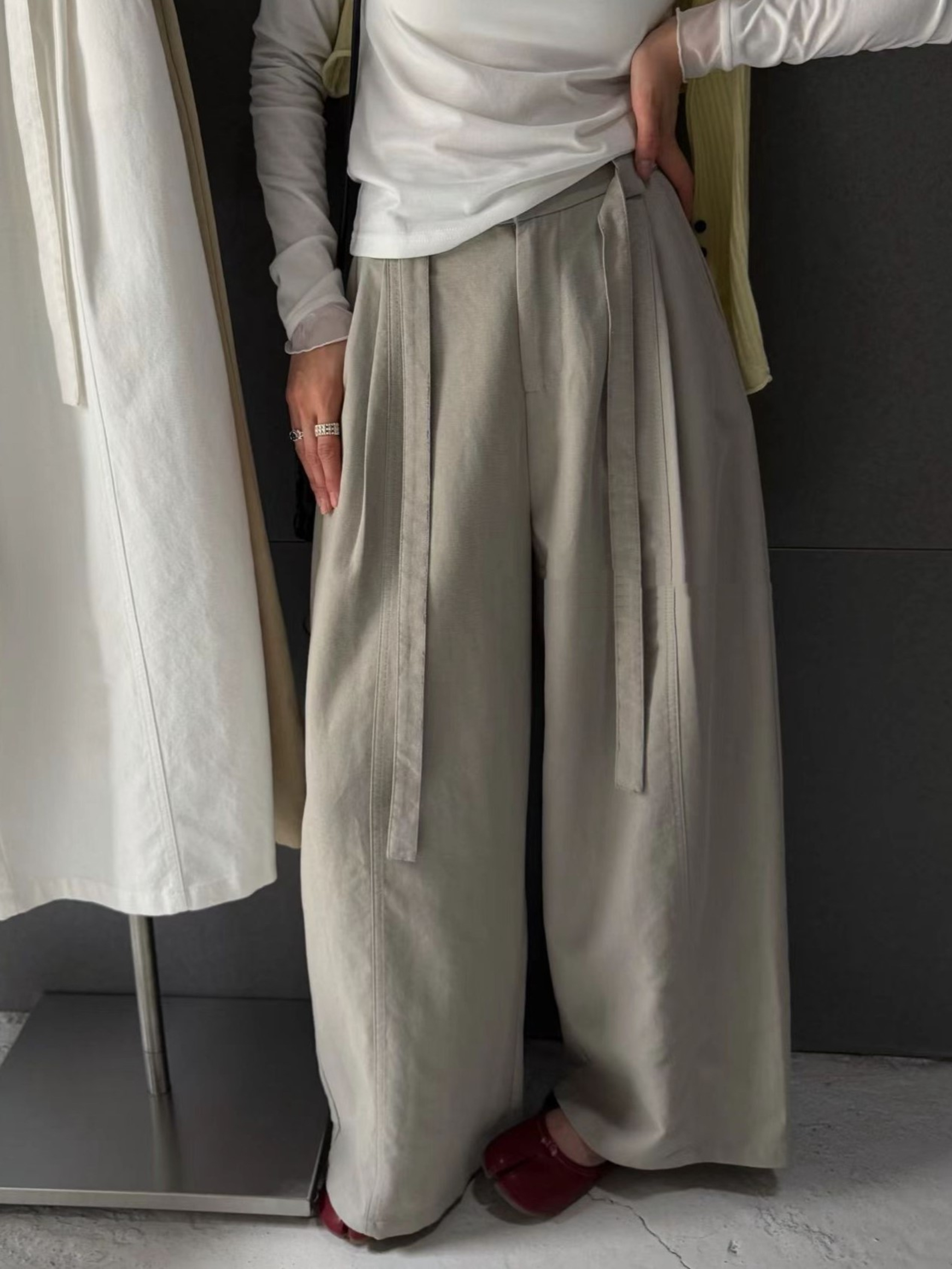 여름 켜기 새로운 미니멀리즘 단색 펌프 로프 하이웨이스트 루즈핏 와이드 레그 팬츠 캐주얼 바지