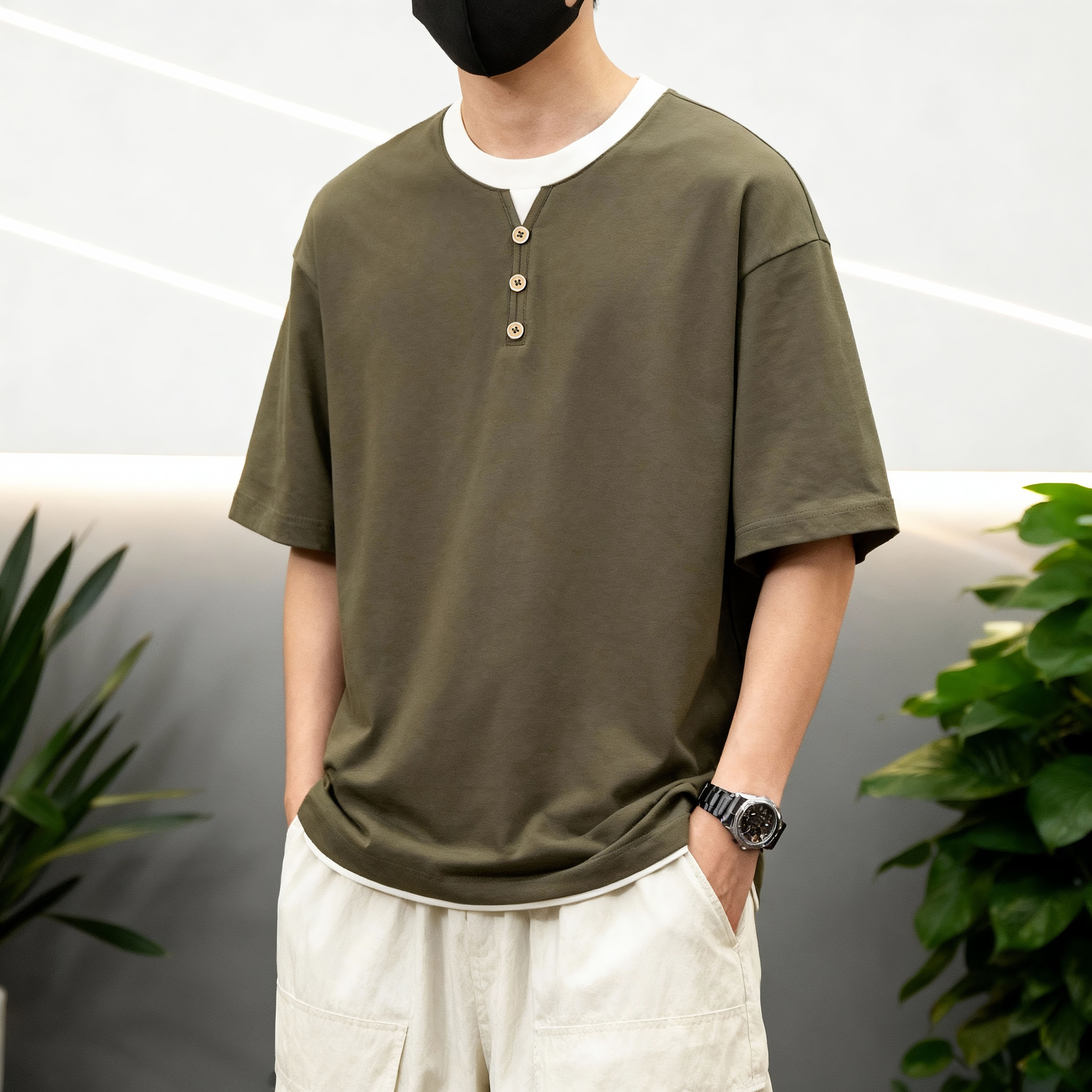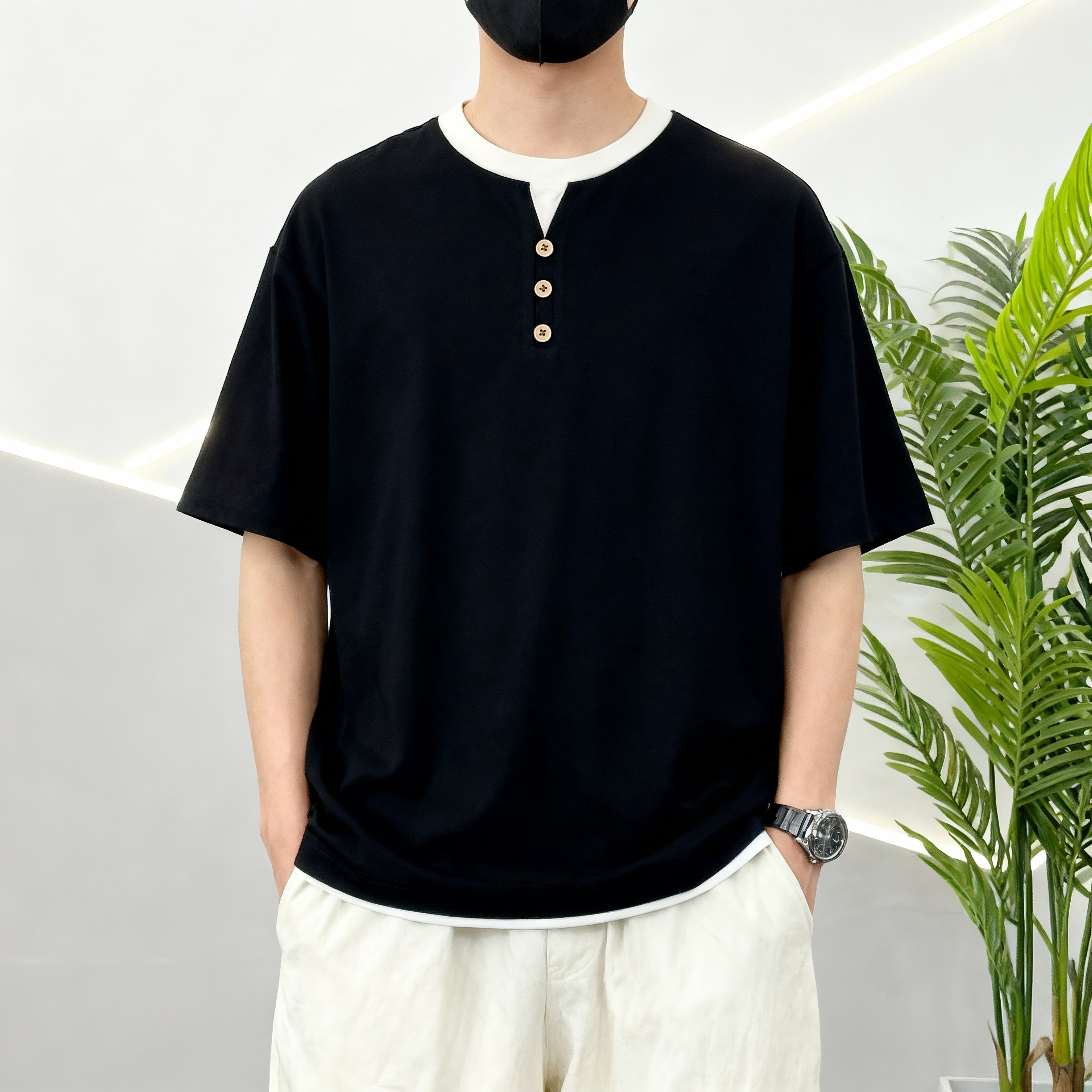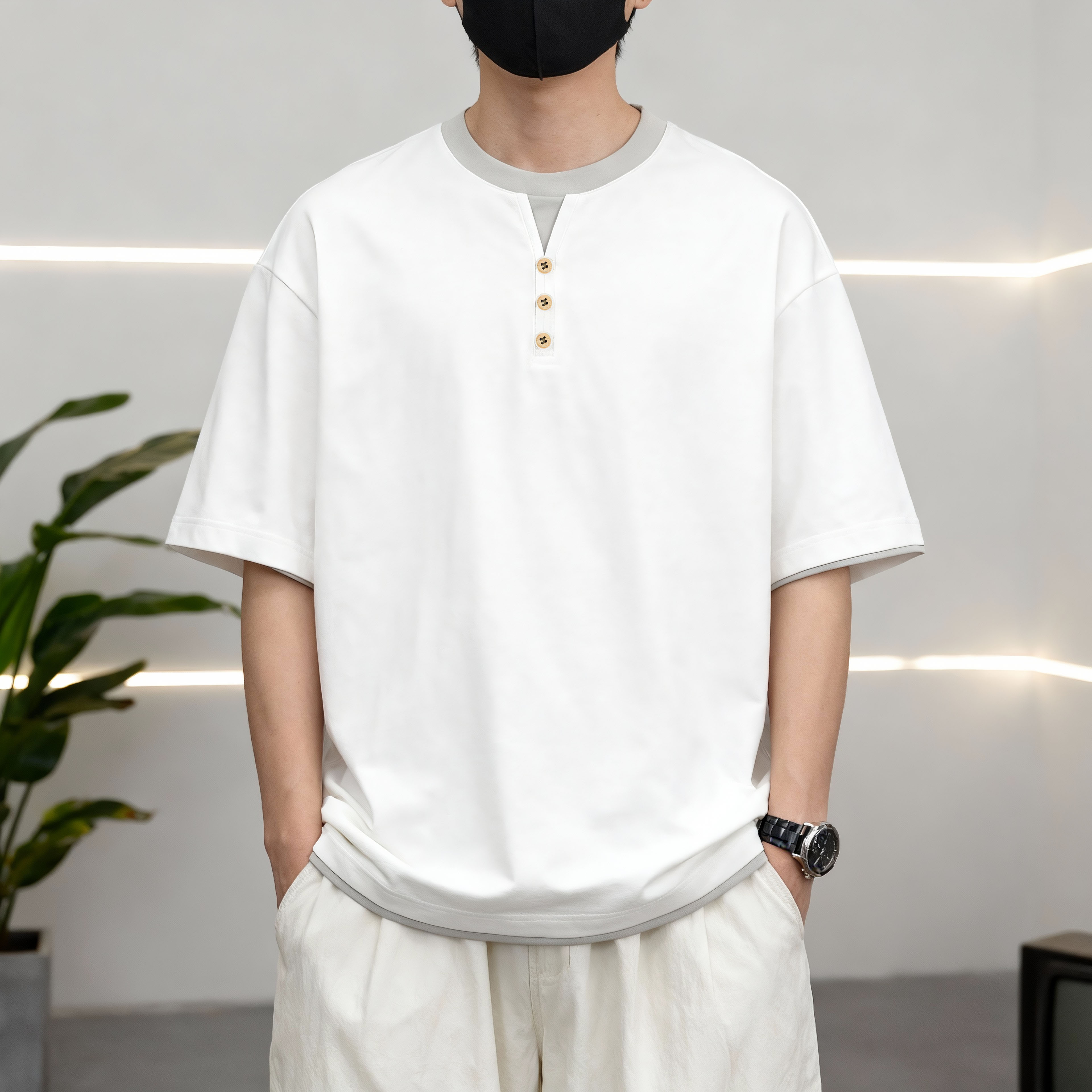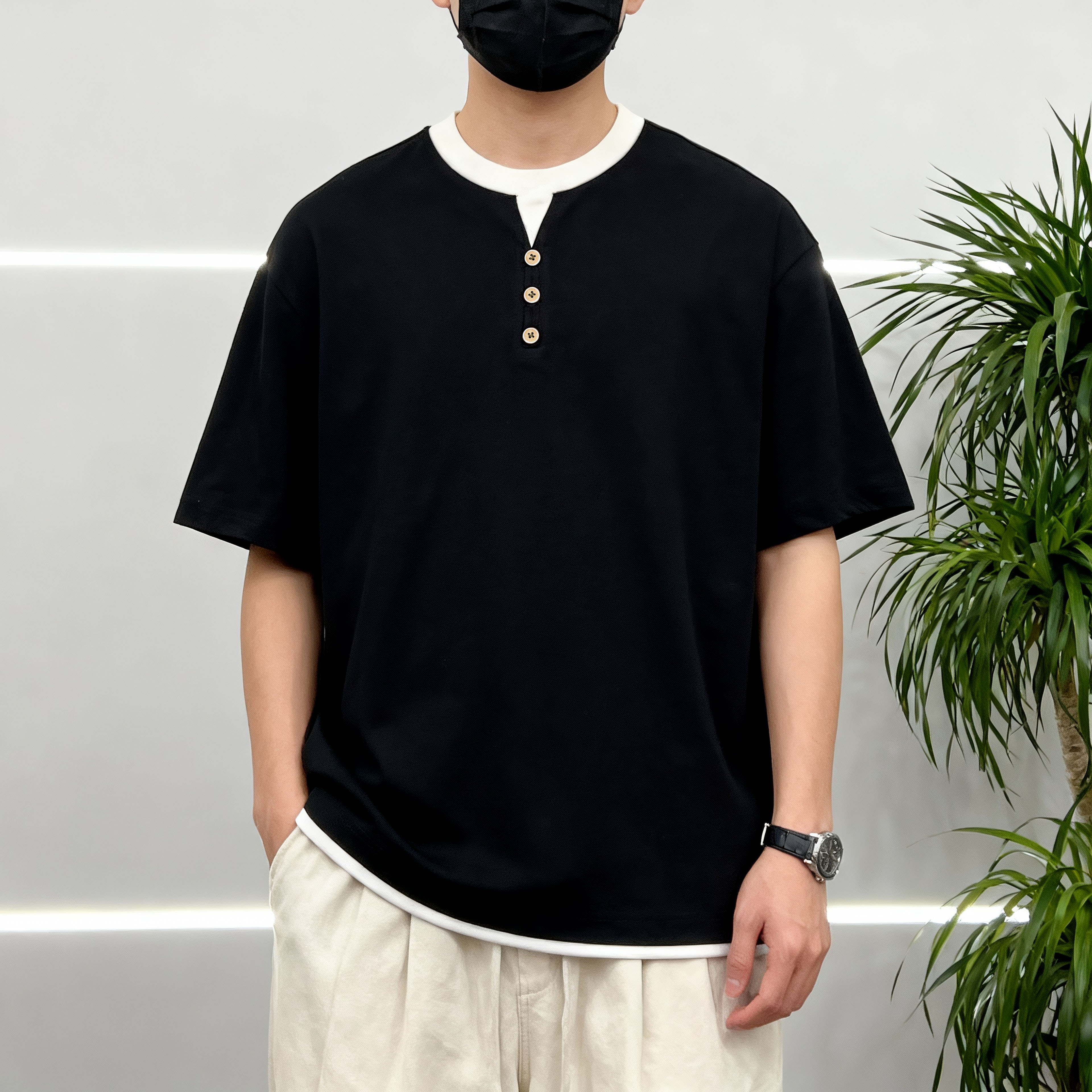 높은 품질 남자 조수 브랜드 7a 수준 항균 260 케이블 로라 차가운 센스 편안함 통기성 캐주얼 루즈핏 페이크 레이어드 반팔
