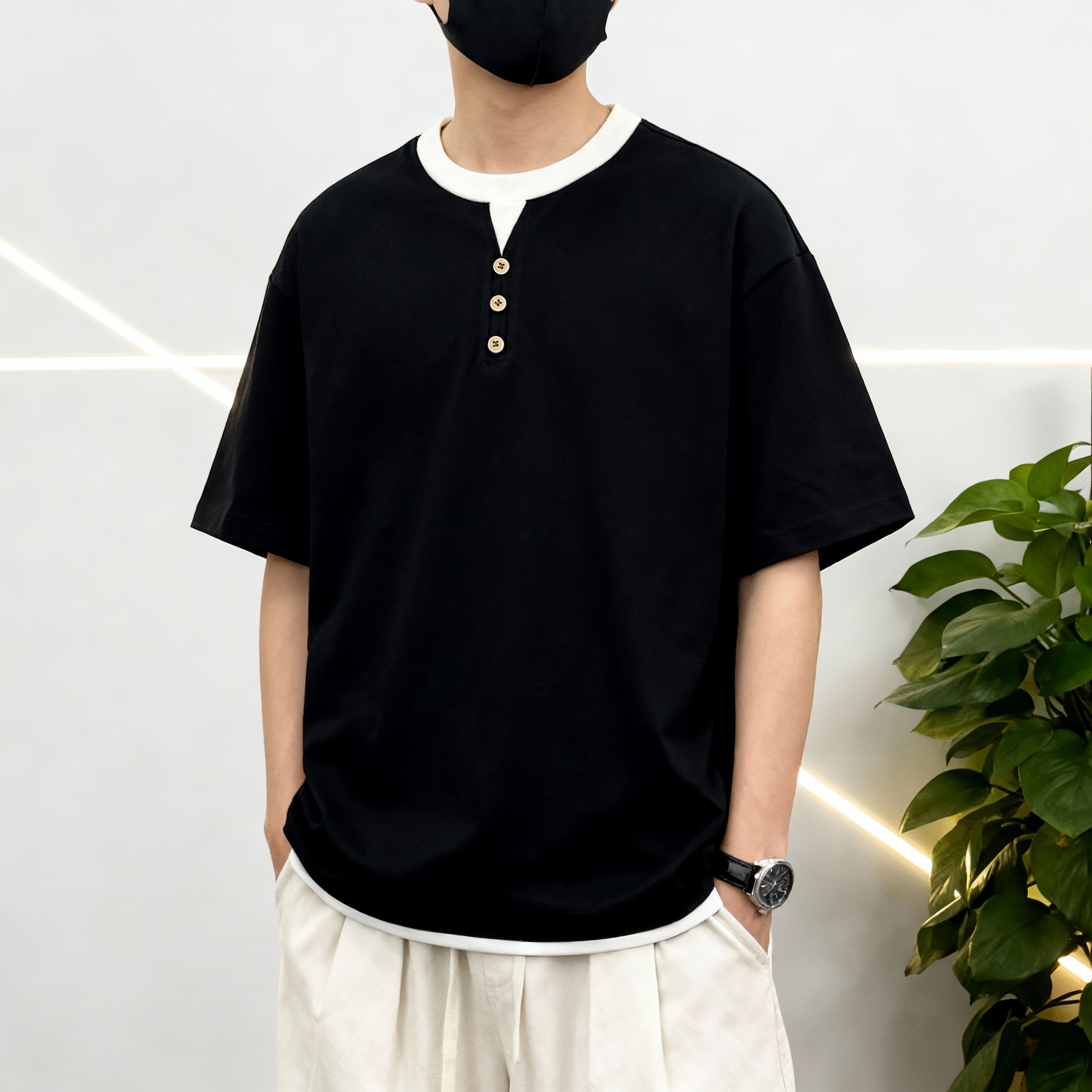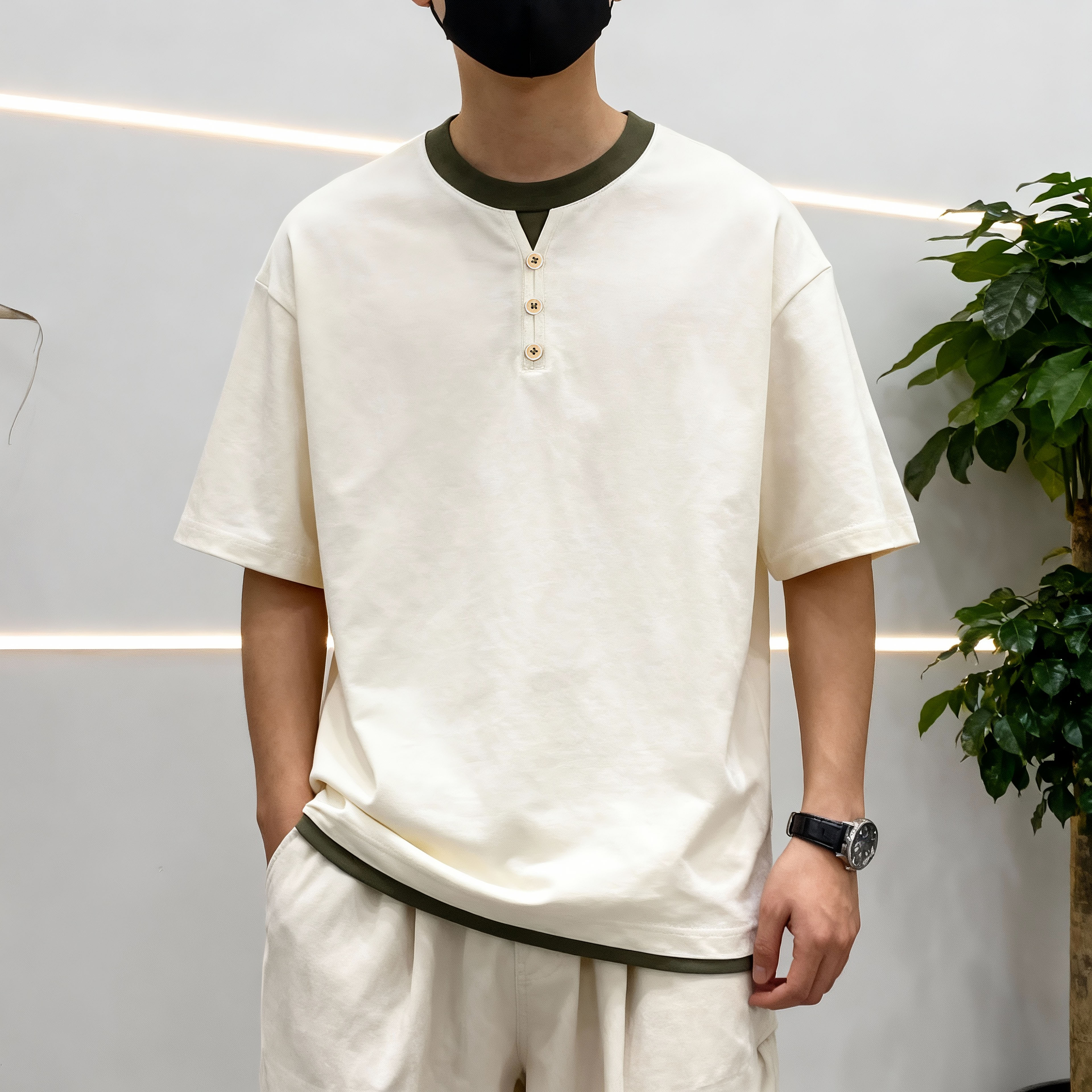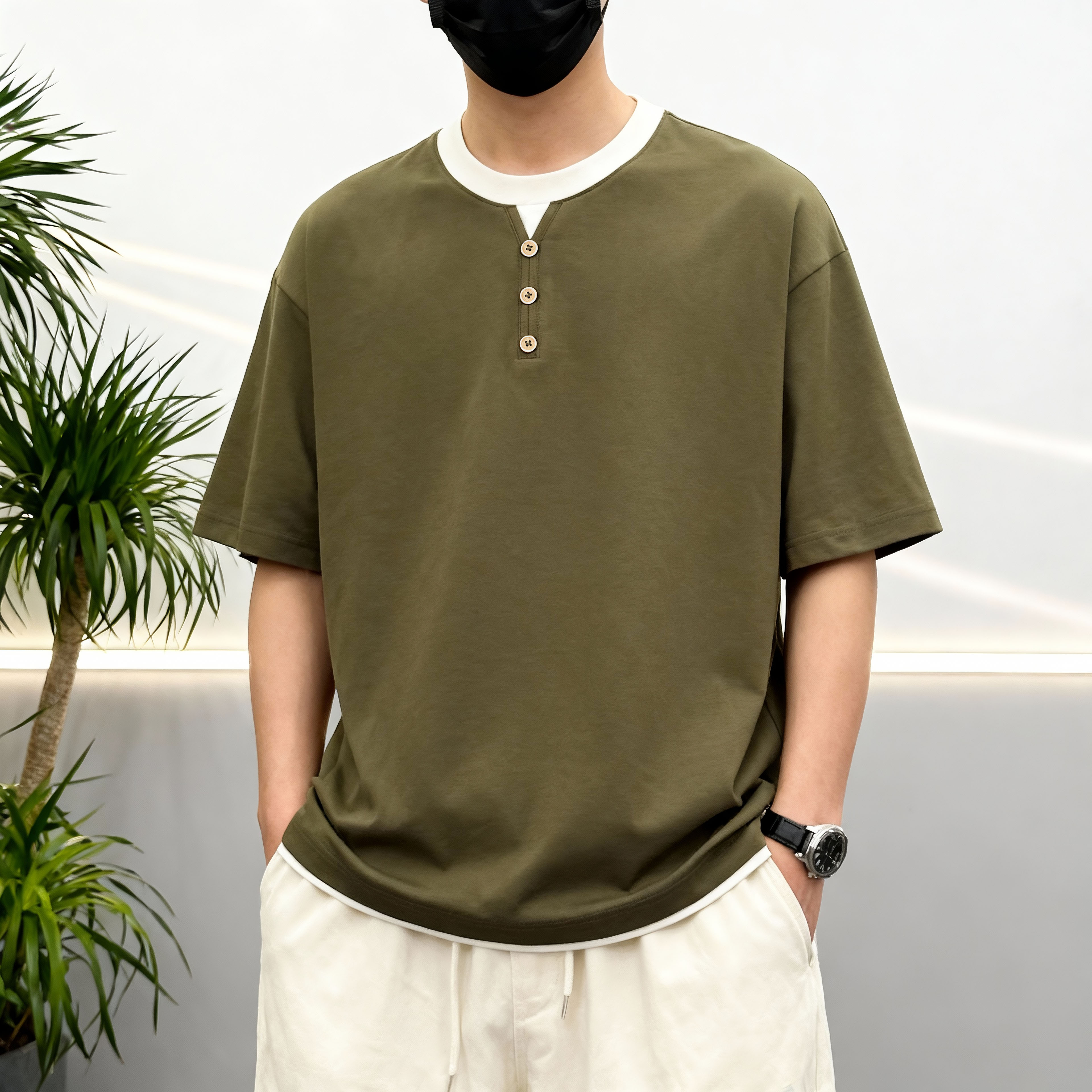 높은 품질 남자 조수 브랜드 7a 수준 항균 260 케이블 로라 차가운 센스 편안함 통기성 캐주얼 루즈핏 페이크 레이어드 반팔