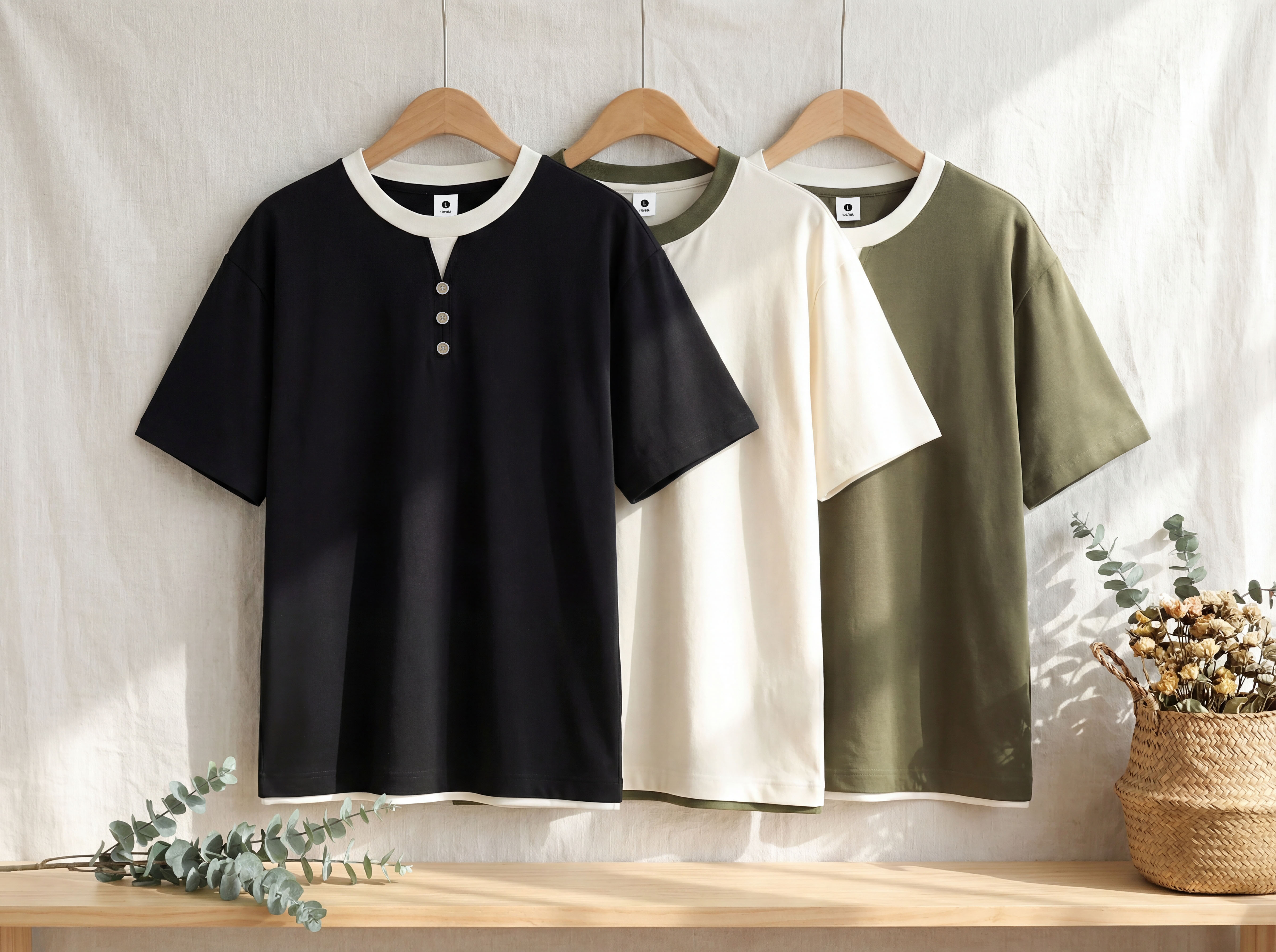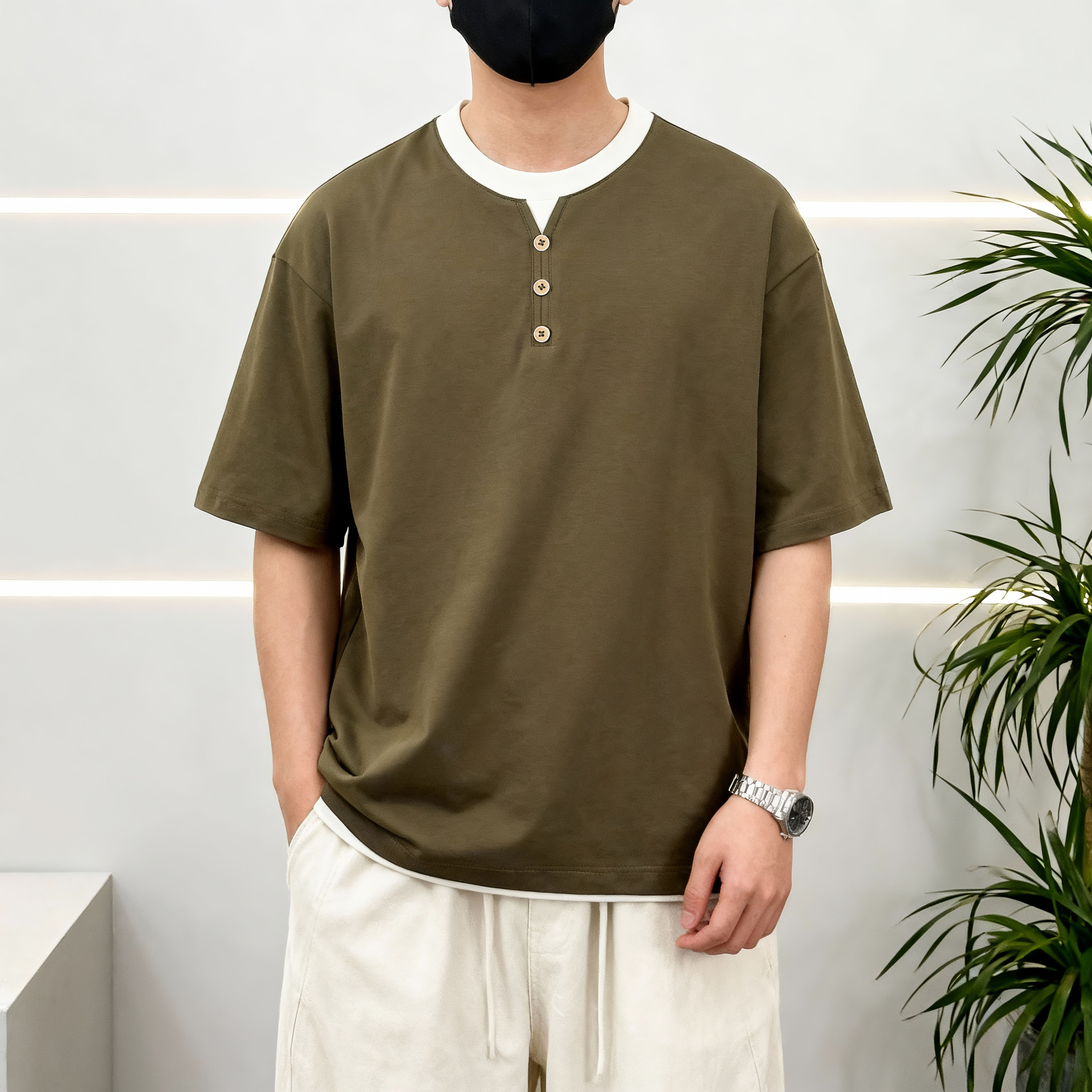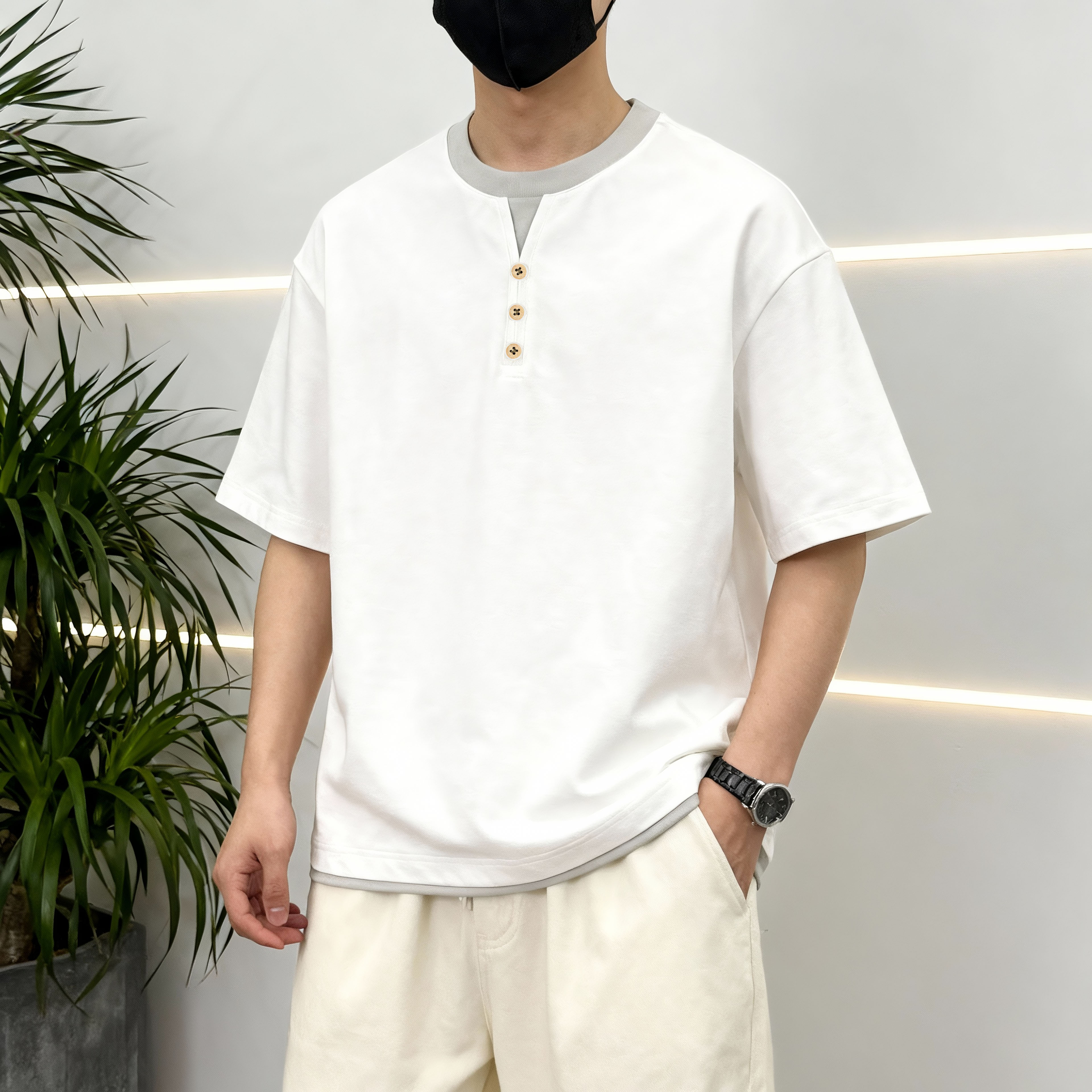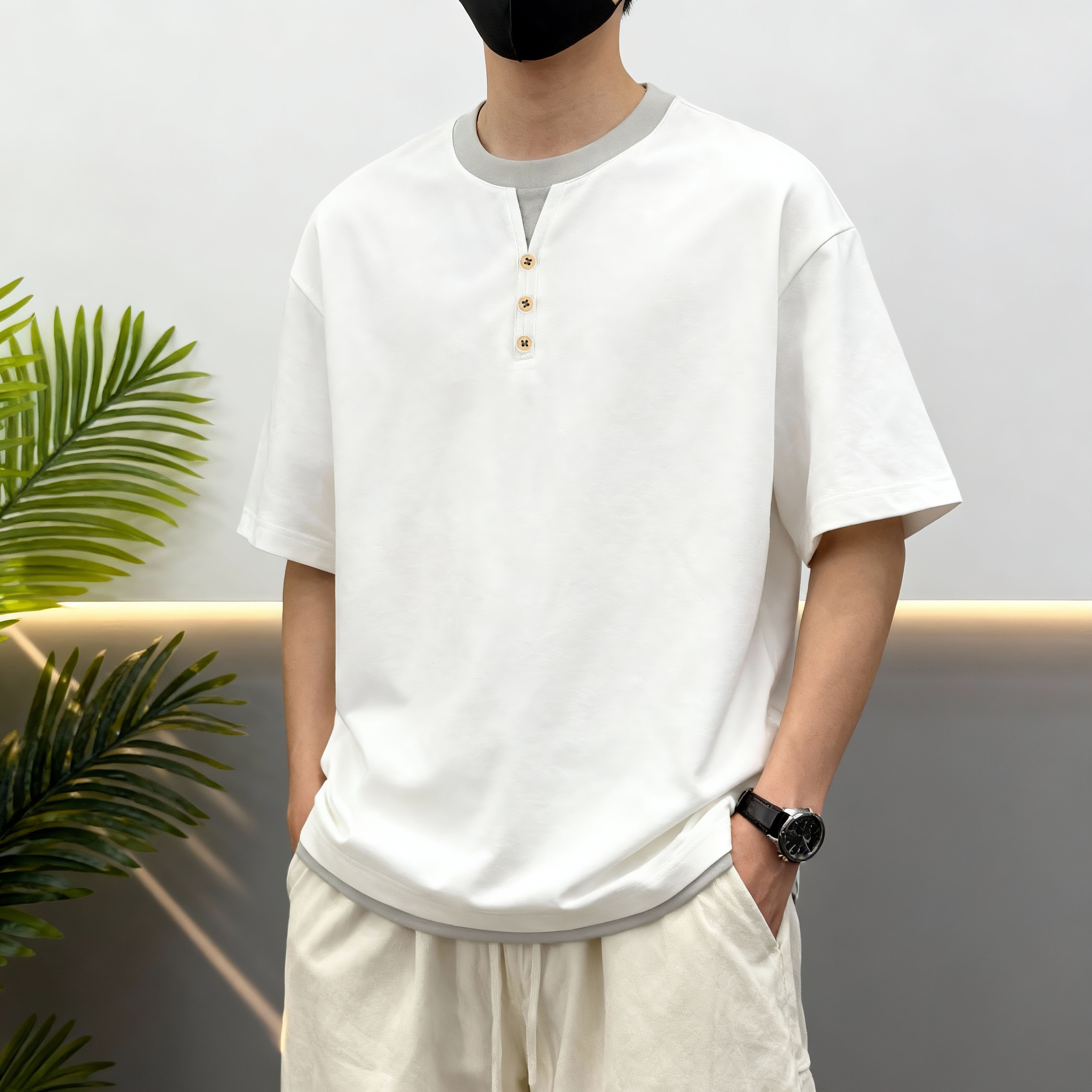 높은 품질 남자 조수 브랜드 7a 수준 항균 260 케이블 로라 차가운 센스 편안함 통기성 캐주얼 루즈핏 페이크 레이어드 반팔