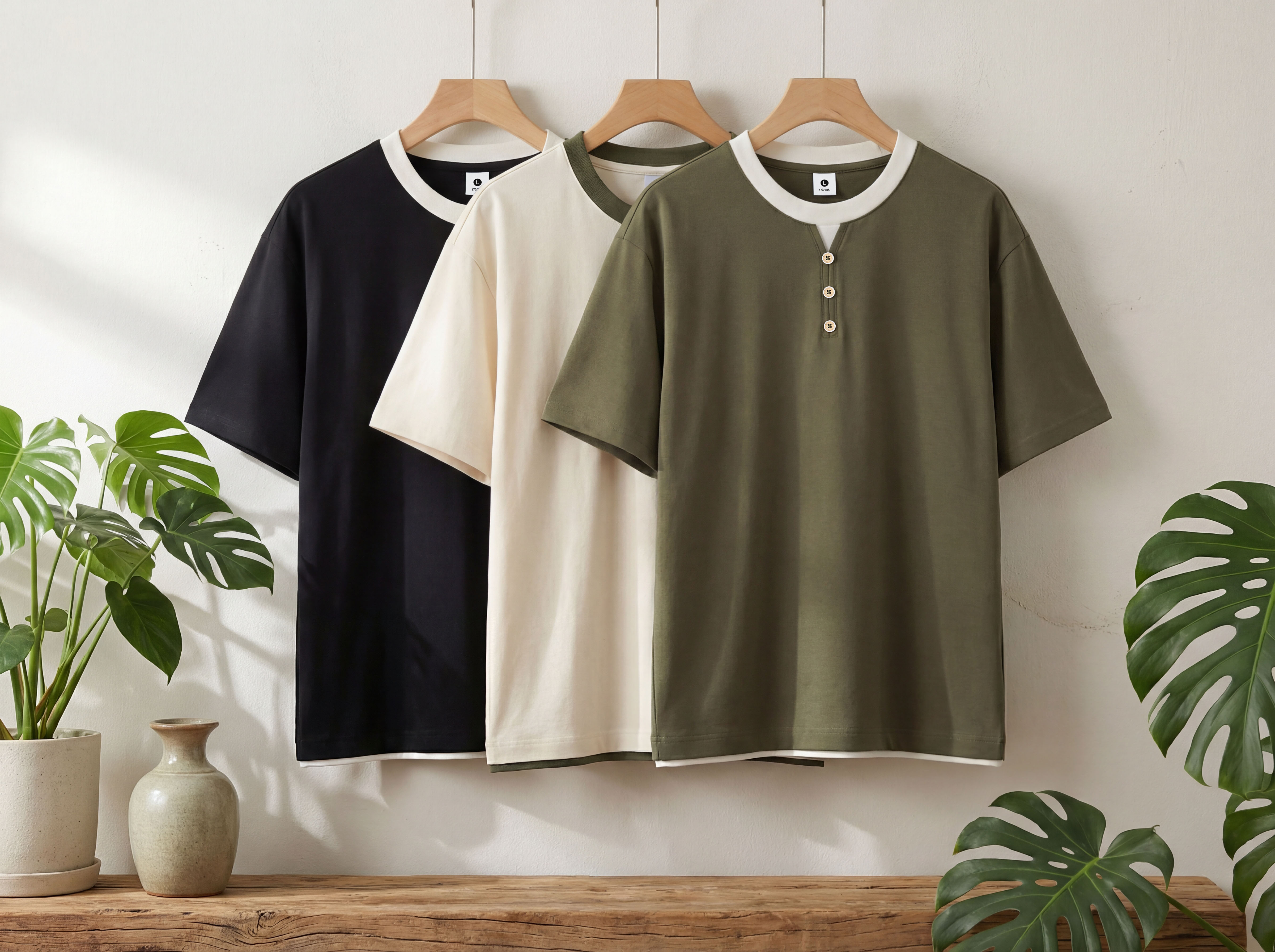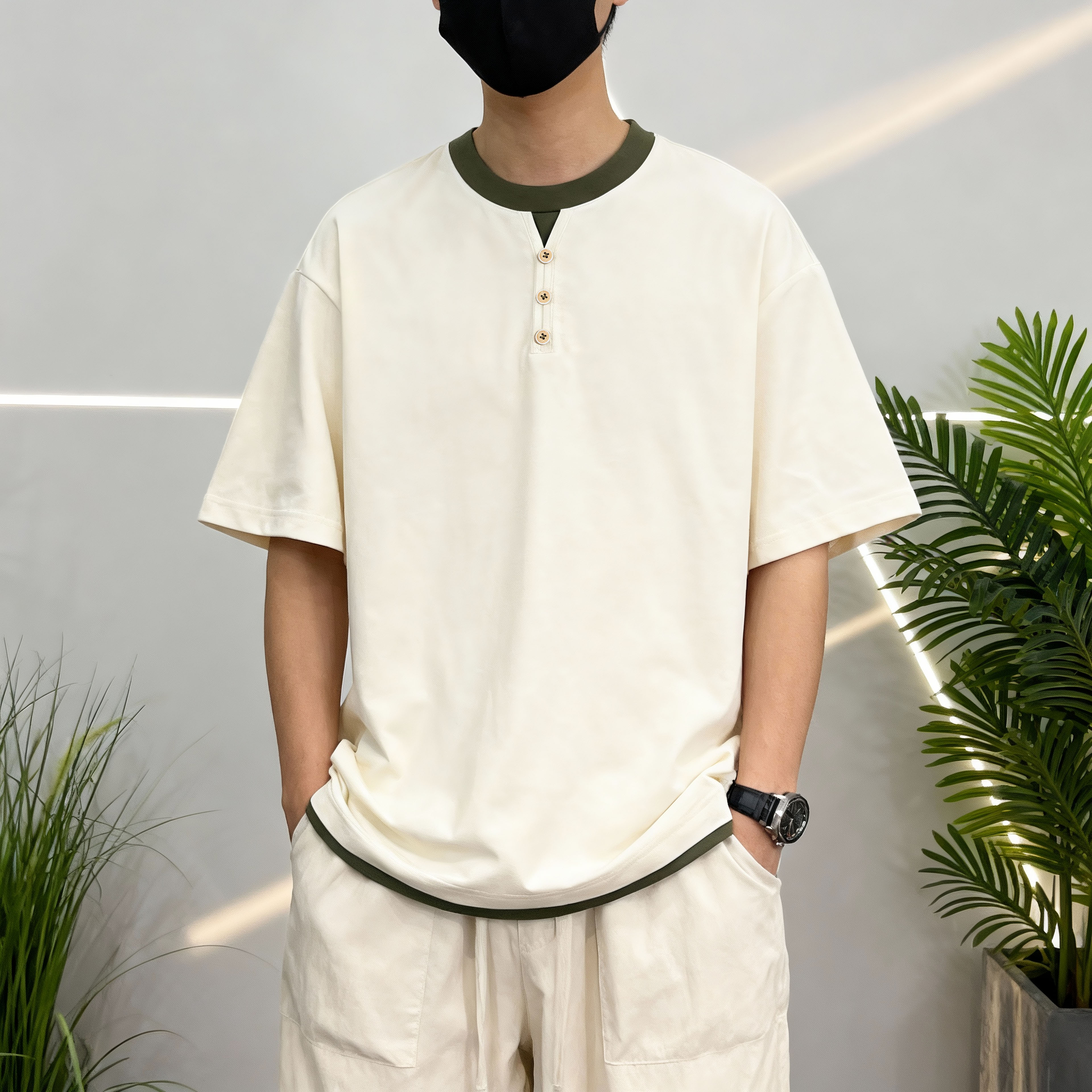 높은 품질 남자 조수 브랜드 7a 수준 항균 패치워크 색상 260 케이블 로라 차가운 센스 편안함 통기성 루즈핏 반팔 V넥 티셔츠