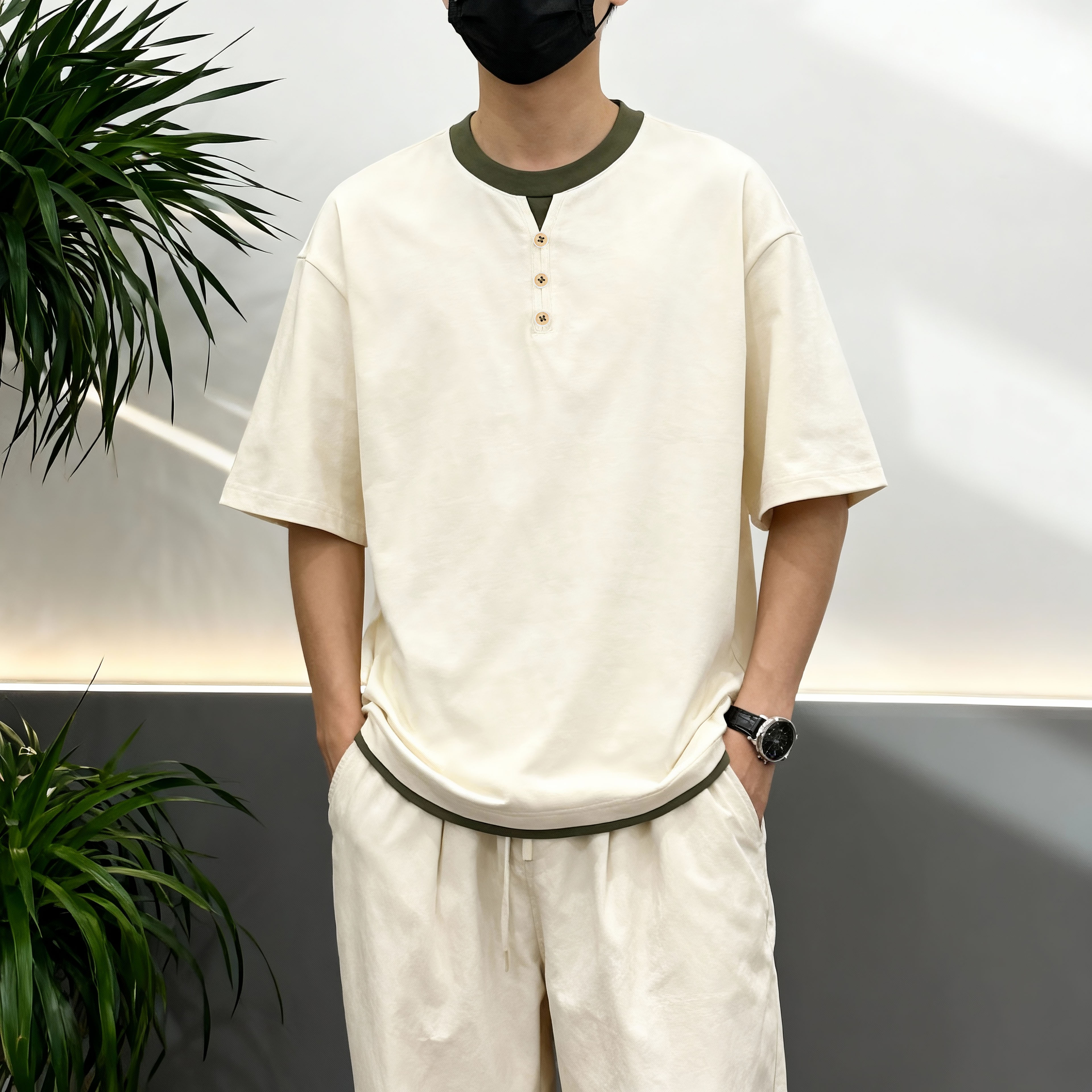 2026 새로운 루즈핏 반팔 반바지 세트 여름 캐주얼 편안함 통기성 polo 시더 프린트 맨위 반바지