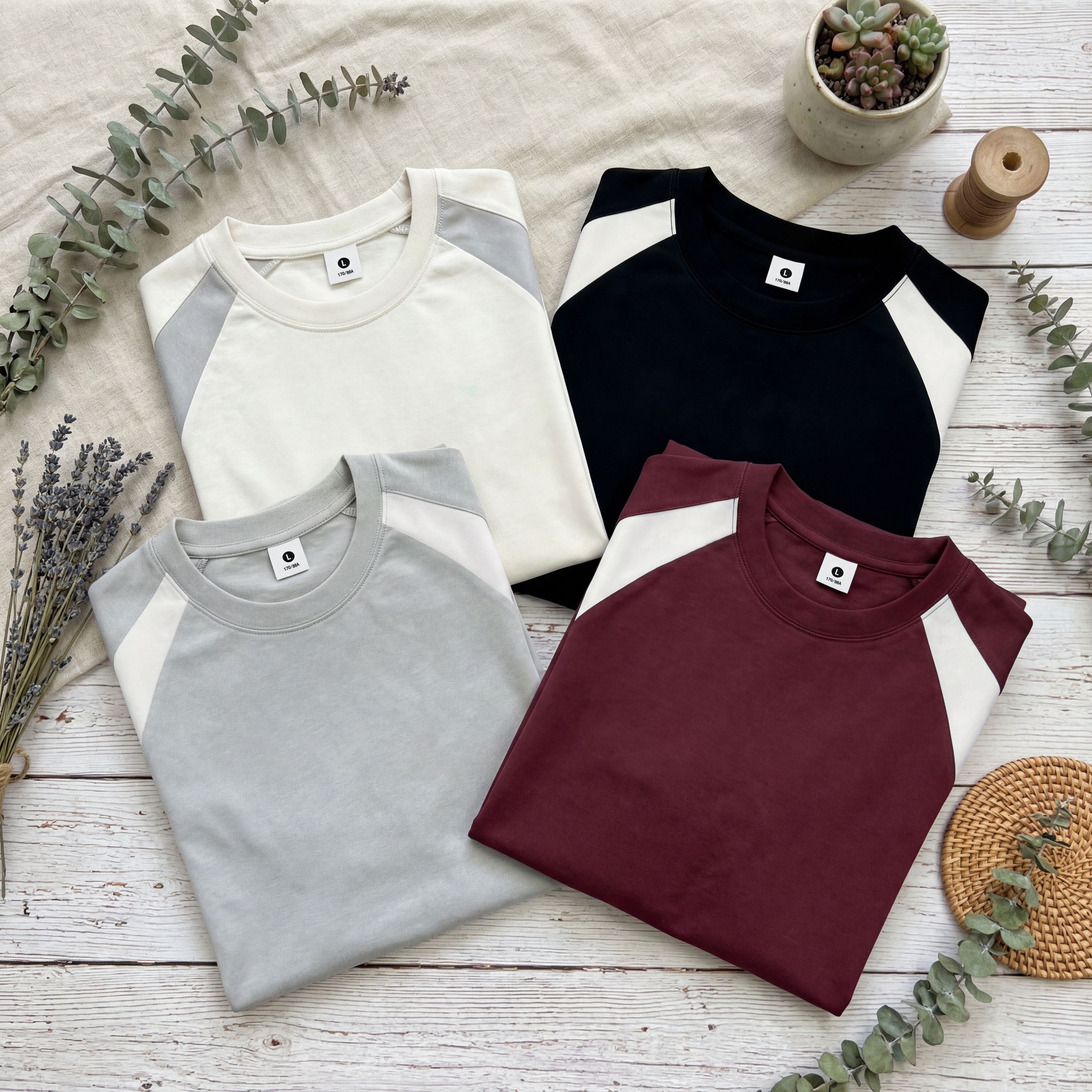 높은 품질 남자 조수 브랜드 7a 수준 항균 패치워크 색상 260 케이블 로라 차가운 센스 편안함 통기성 루즈핏 반팔 V넥 티셔츠