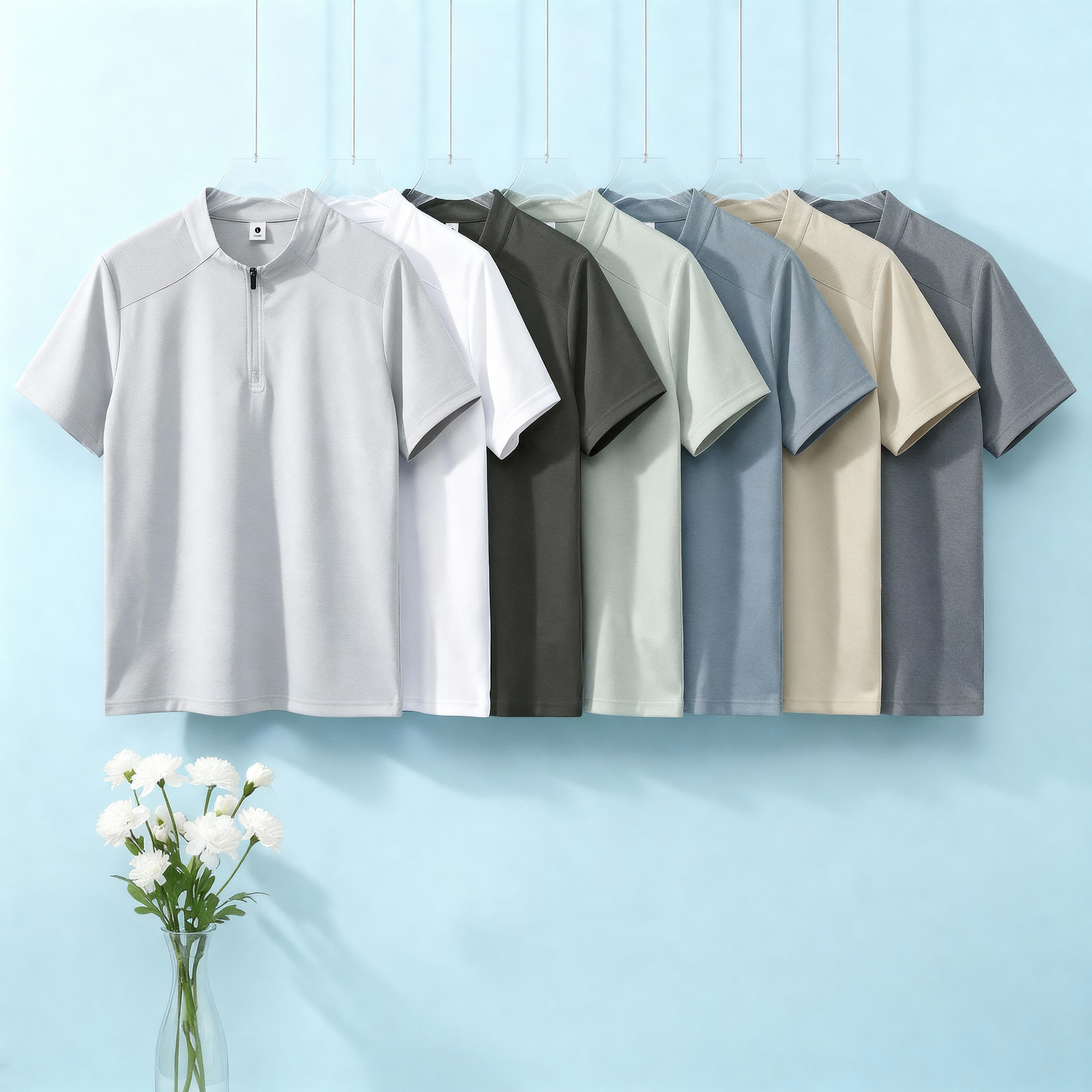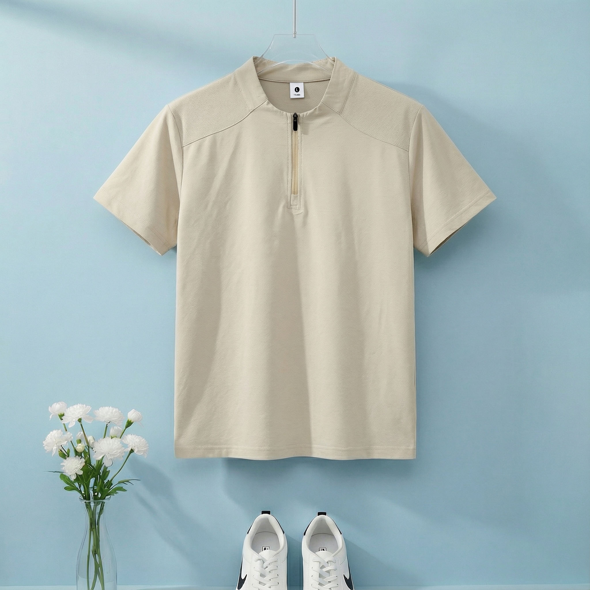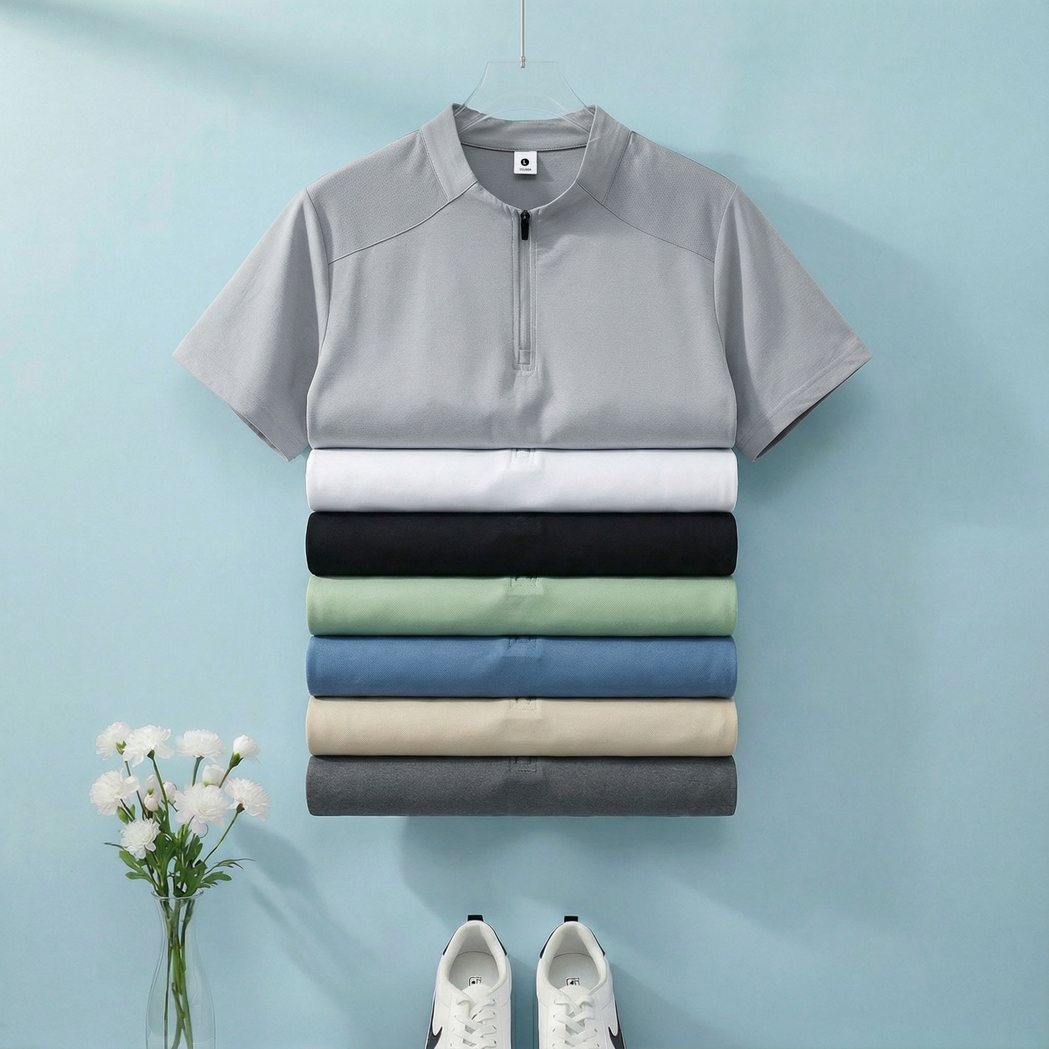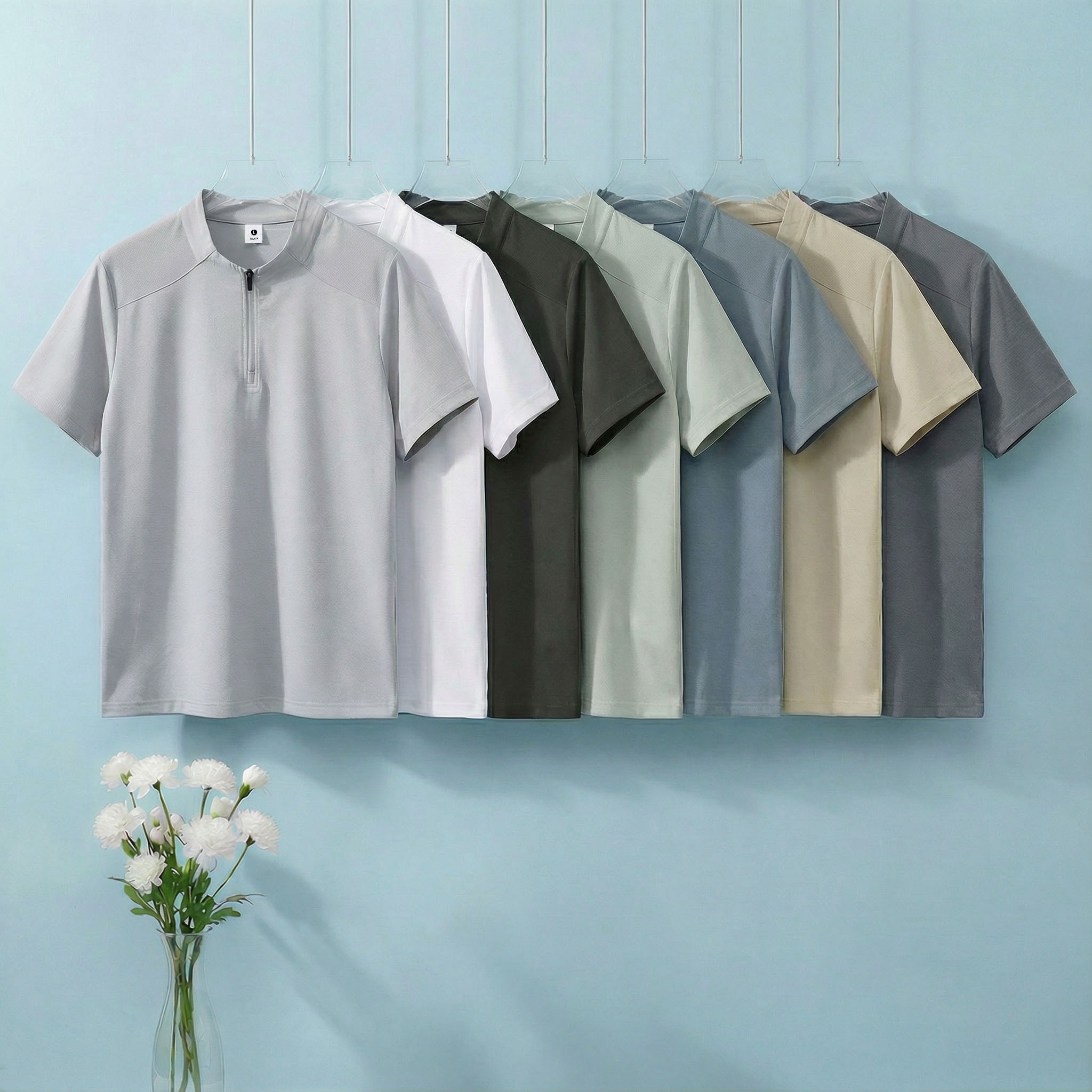 높은 품질 면 말 상 주름 속도 건조한 수분 흡수 땀 배출 스탠드 칼라 지퍼 편안함 통기성 트렌디 에디션 루즈핏 반팔 남자 티셔츠