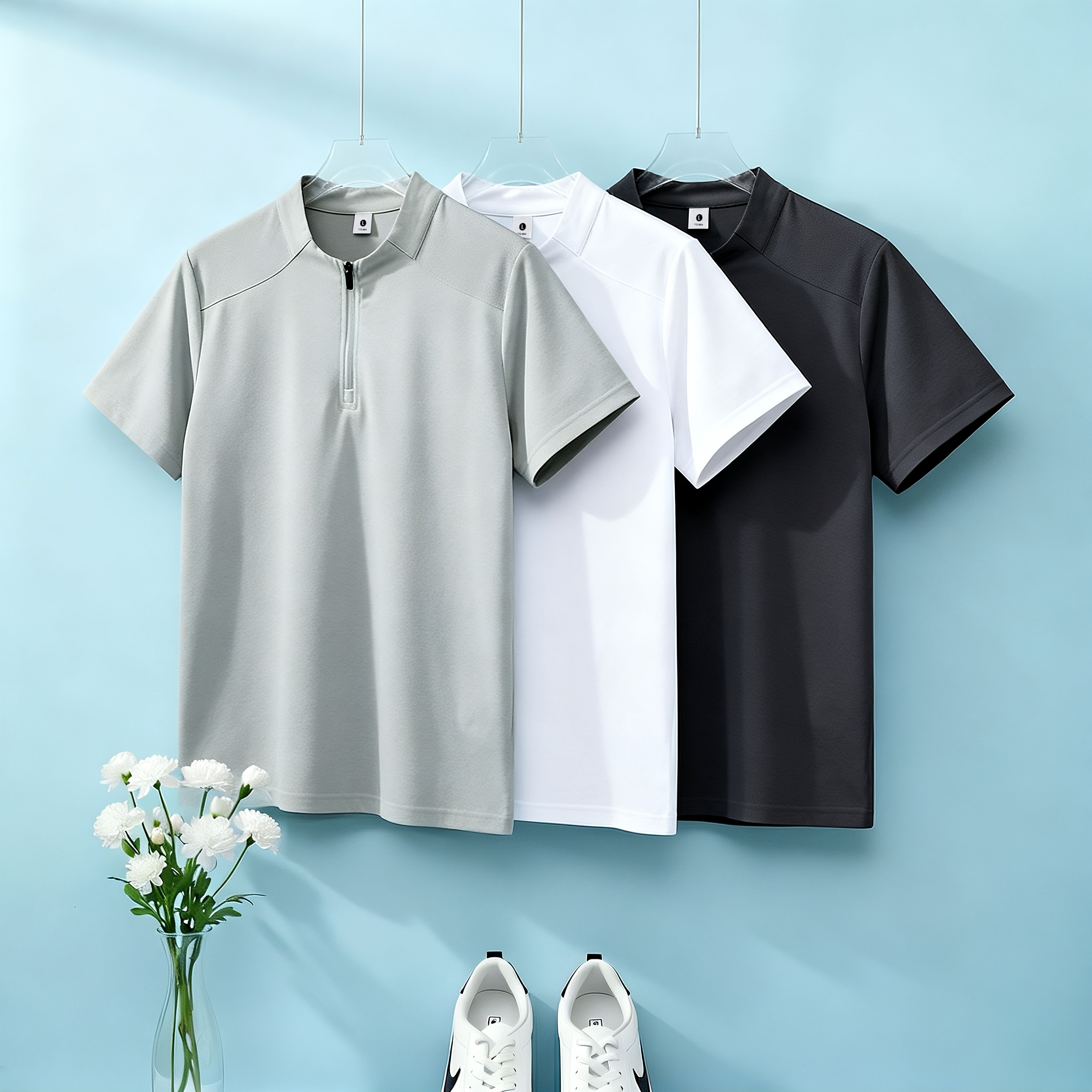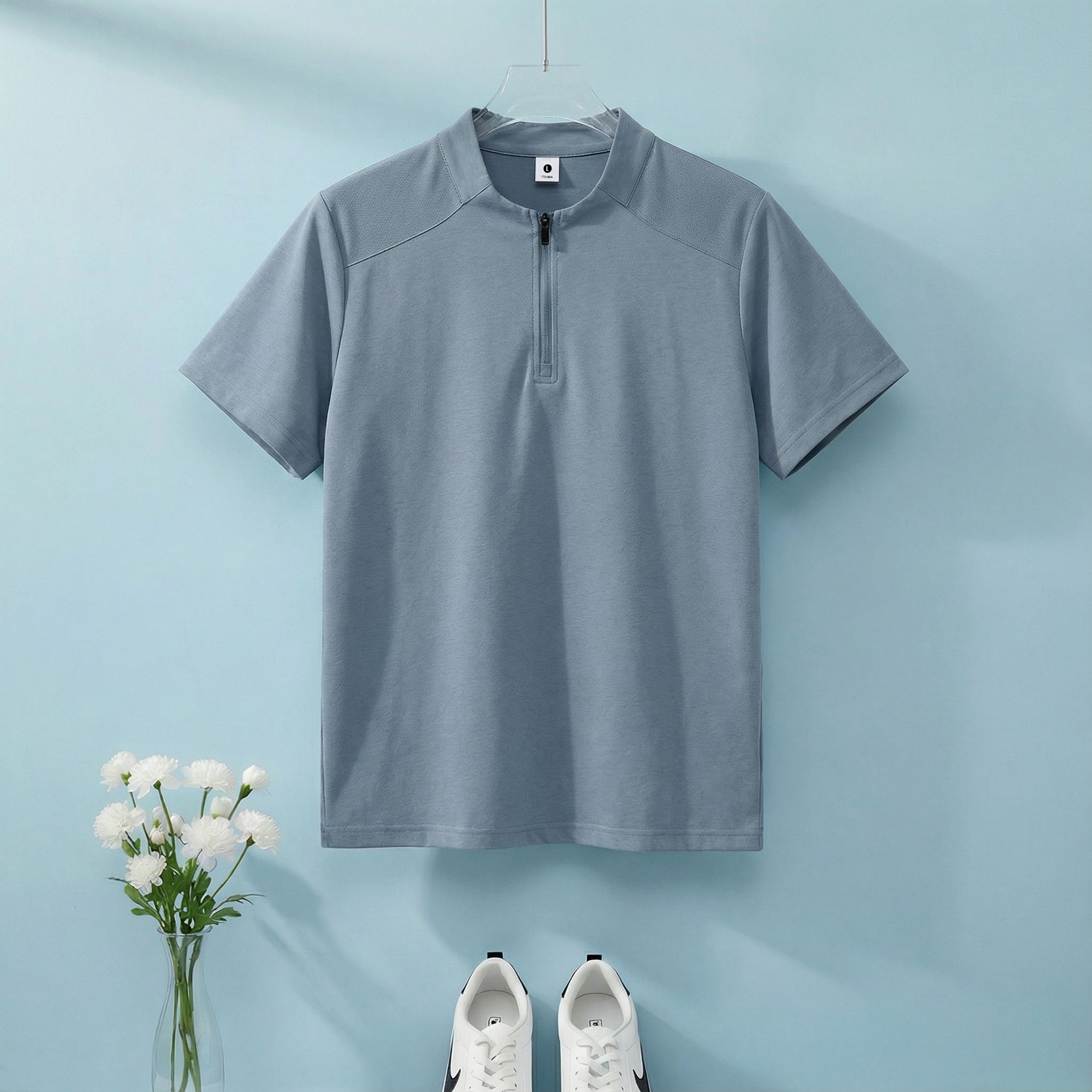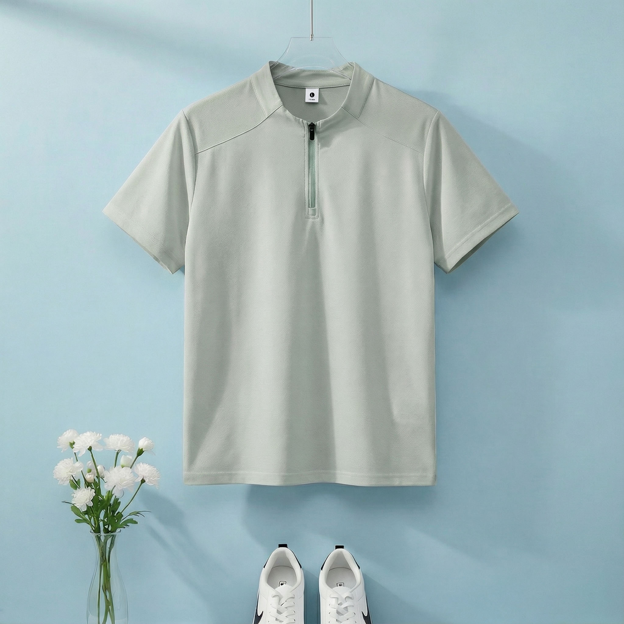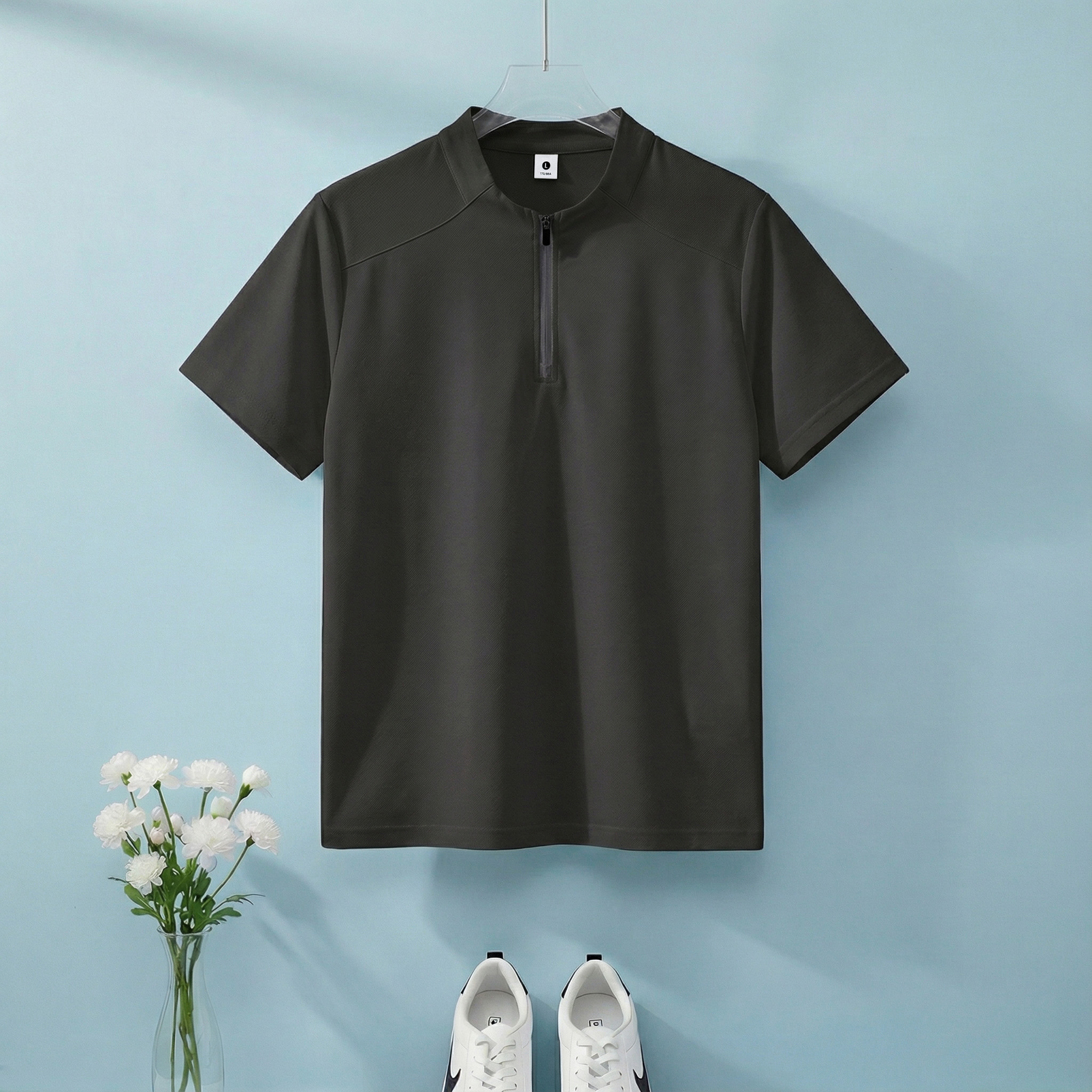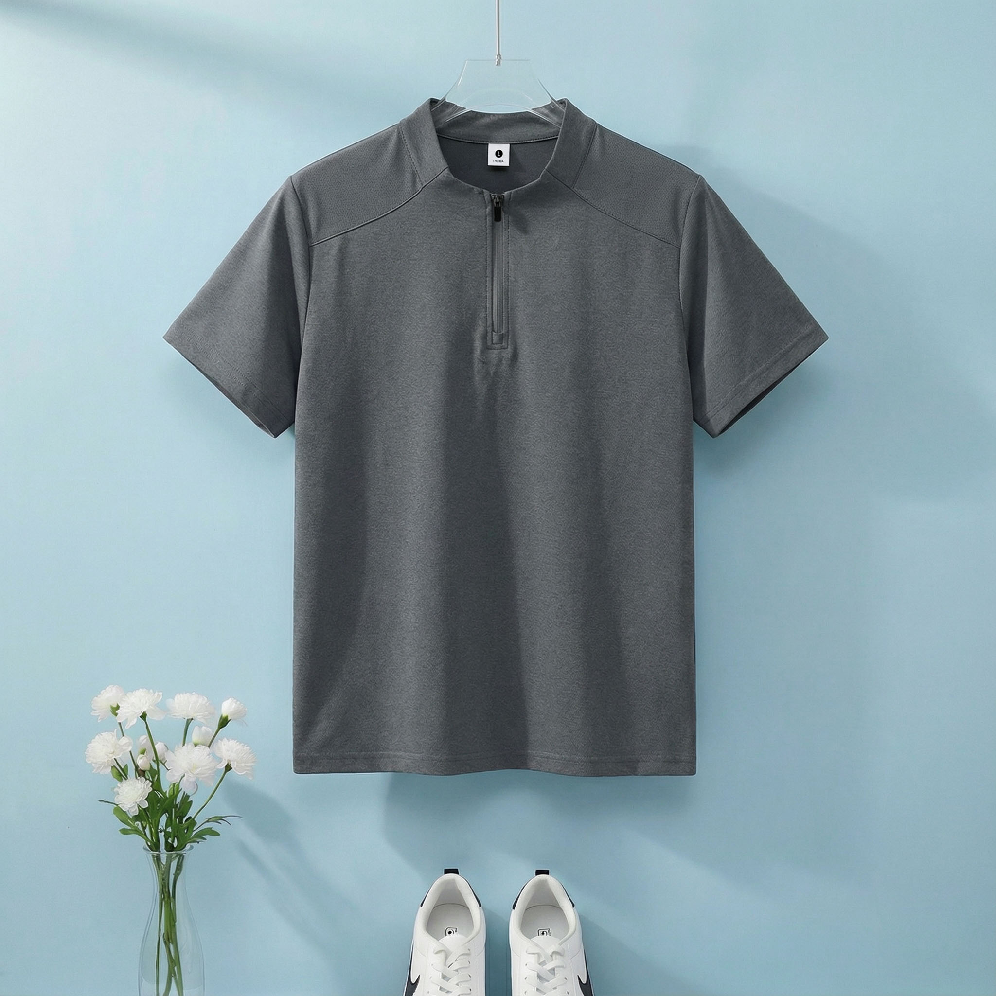 높은 품질 면 말 상 주름 속도 건조한 수분 흡수 땀 배출 스탠드 칼라 지퍼 편안함 통기성 트렌디 에디션 루즈핏 반팔 남자 티셔츠
