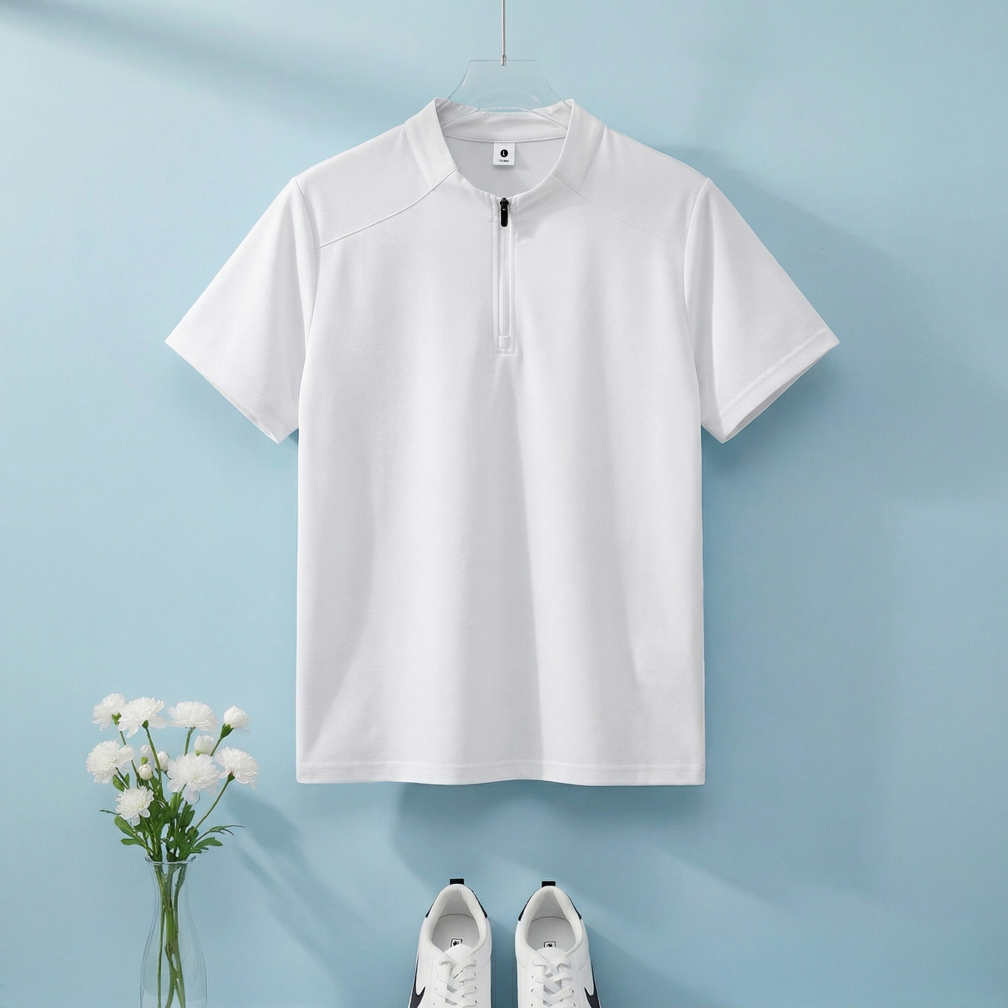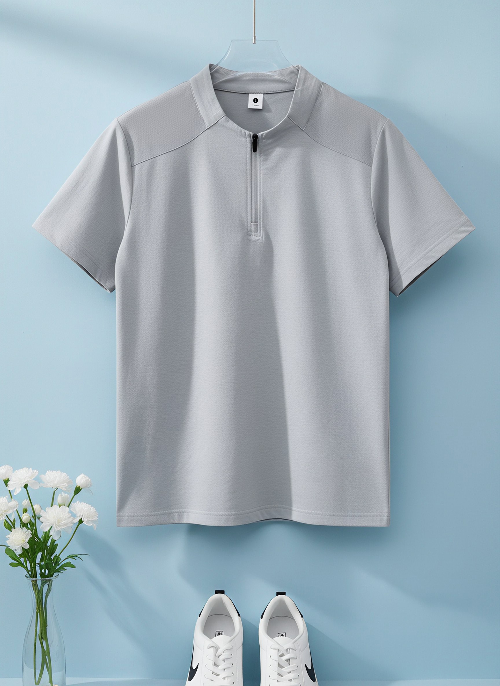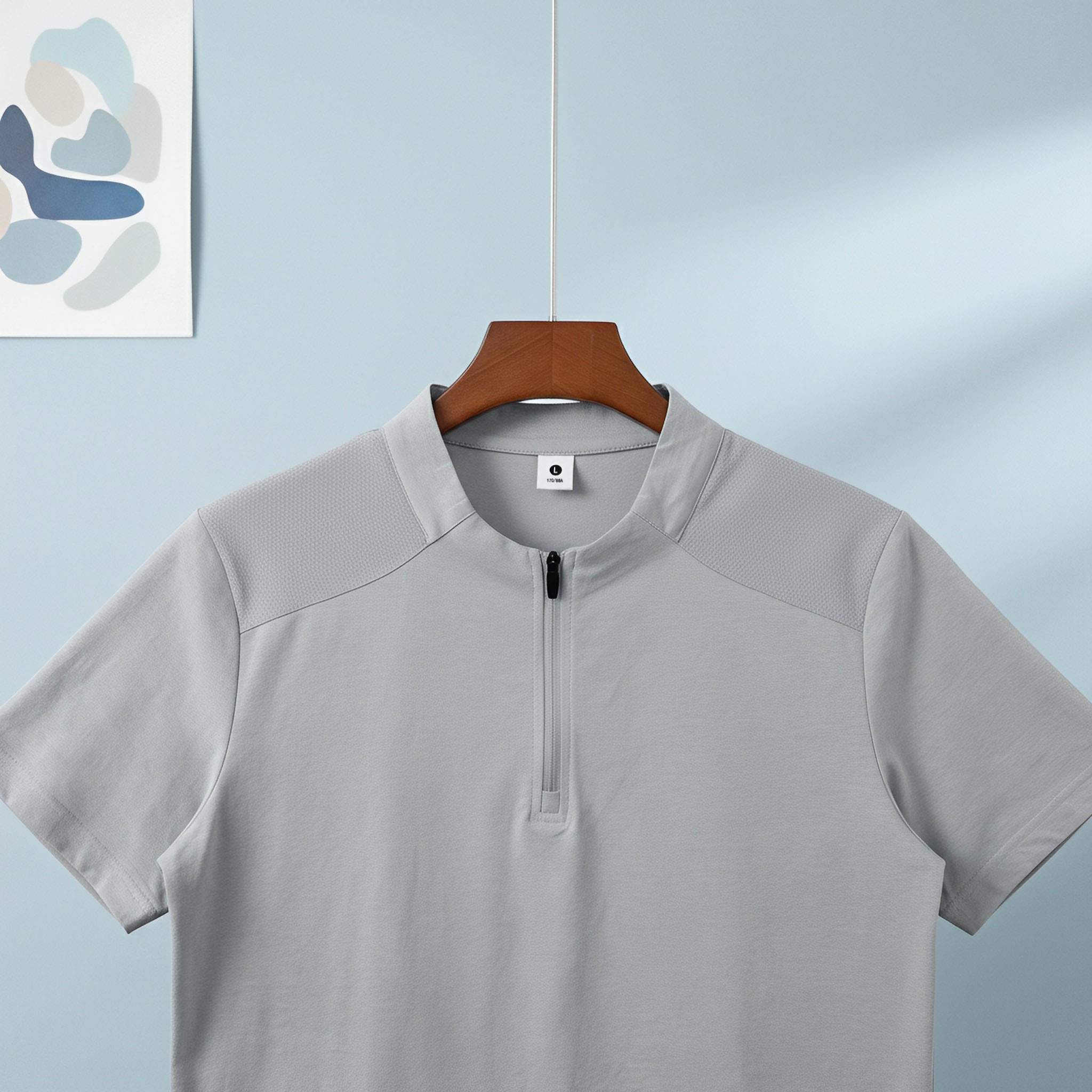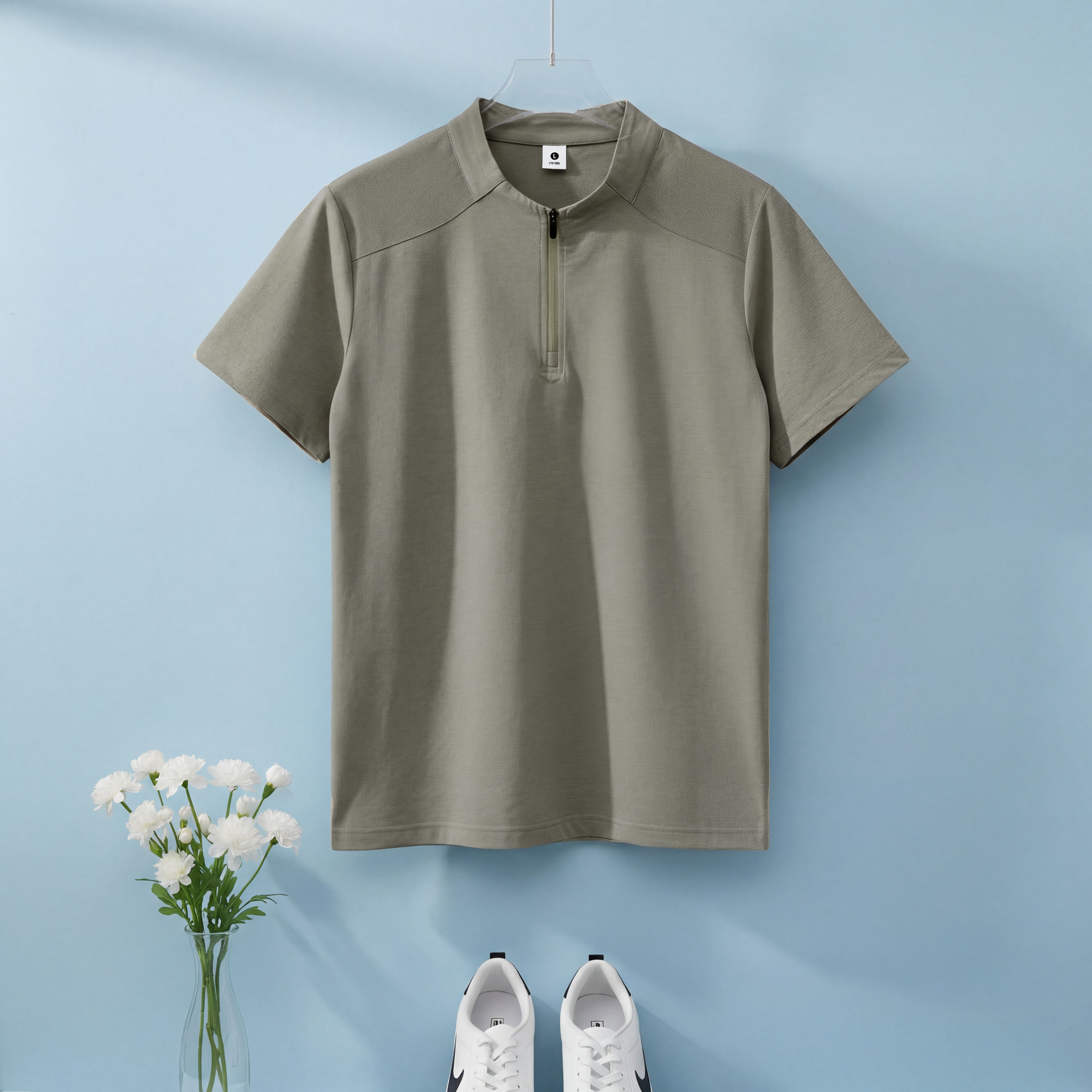 높은 품질 면 말 상 주름 속도 건조한 수분 흡수 땀 배출 스탠드 칼라 지퍼 편안함 통기성 트렌디 에디션 루즈핏 반팔 남자 티셔츠