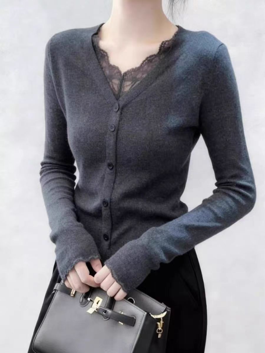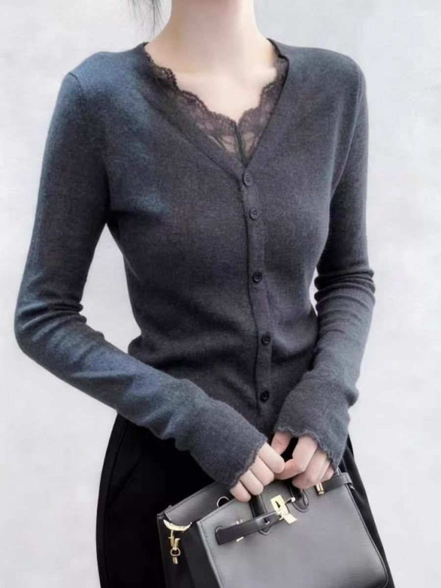 레이스 조각 긴팔 니트 스웨터 빛 요리 한 바람 품격 맨위 2026 년 이른 봄 다용도 미니멀리즘 기본 셔츠 외국 가스