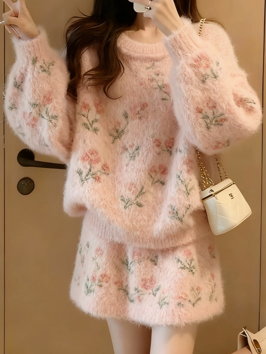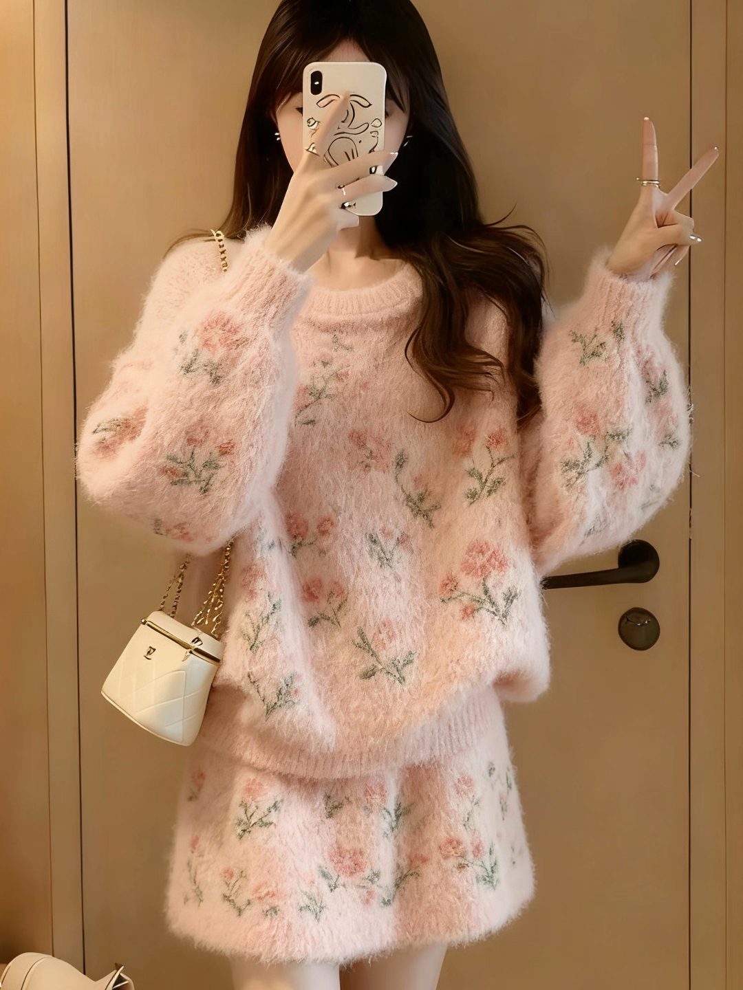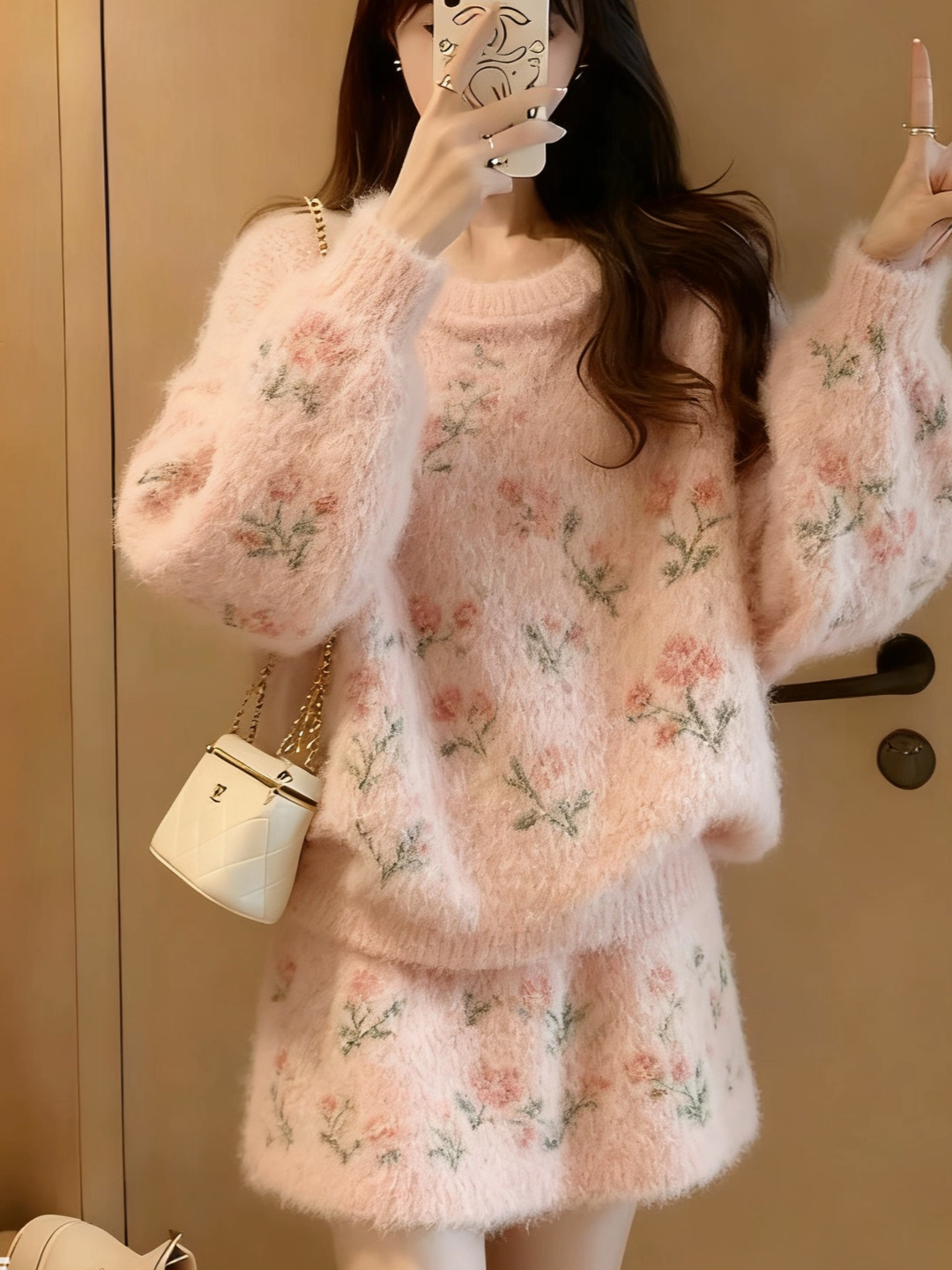 프랑스식 무거운 작업 손 자수 꽃 니트 오픈 가디건 스웨터 코트 반신 스커트 두 조각 여성 세트 봄 가을 우유 씽 하는 소리 세트
