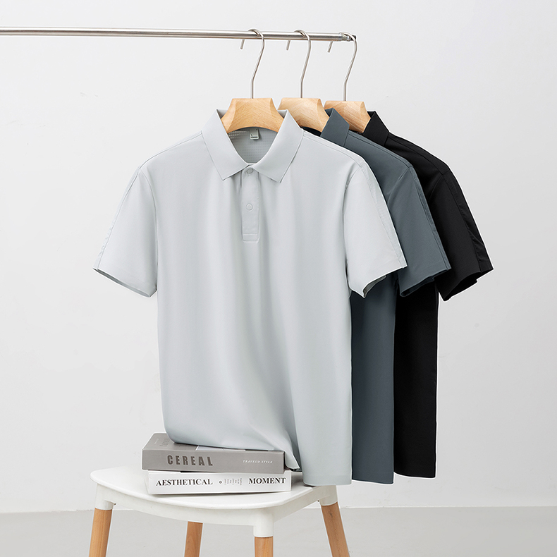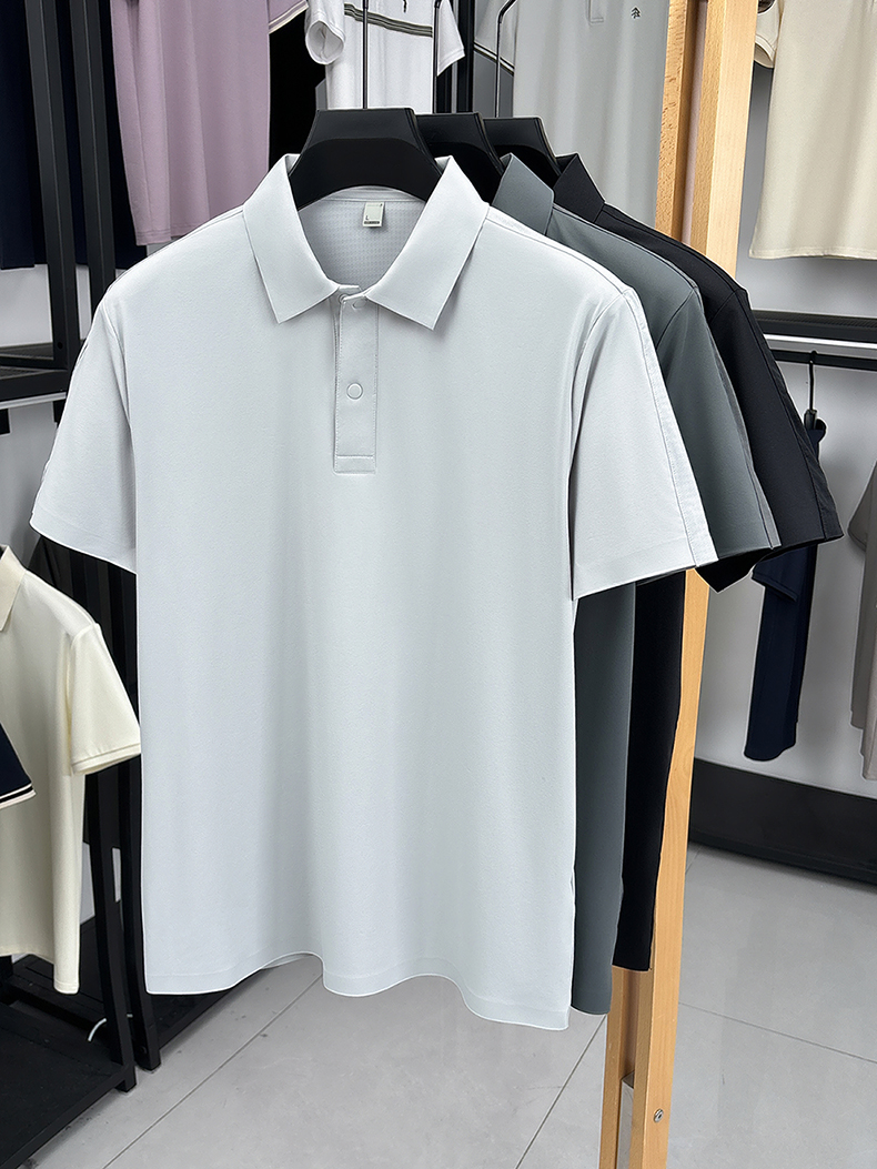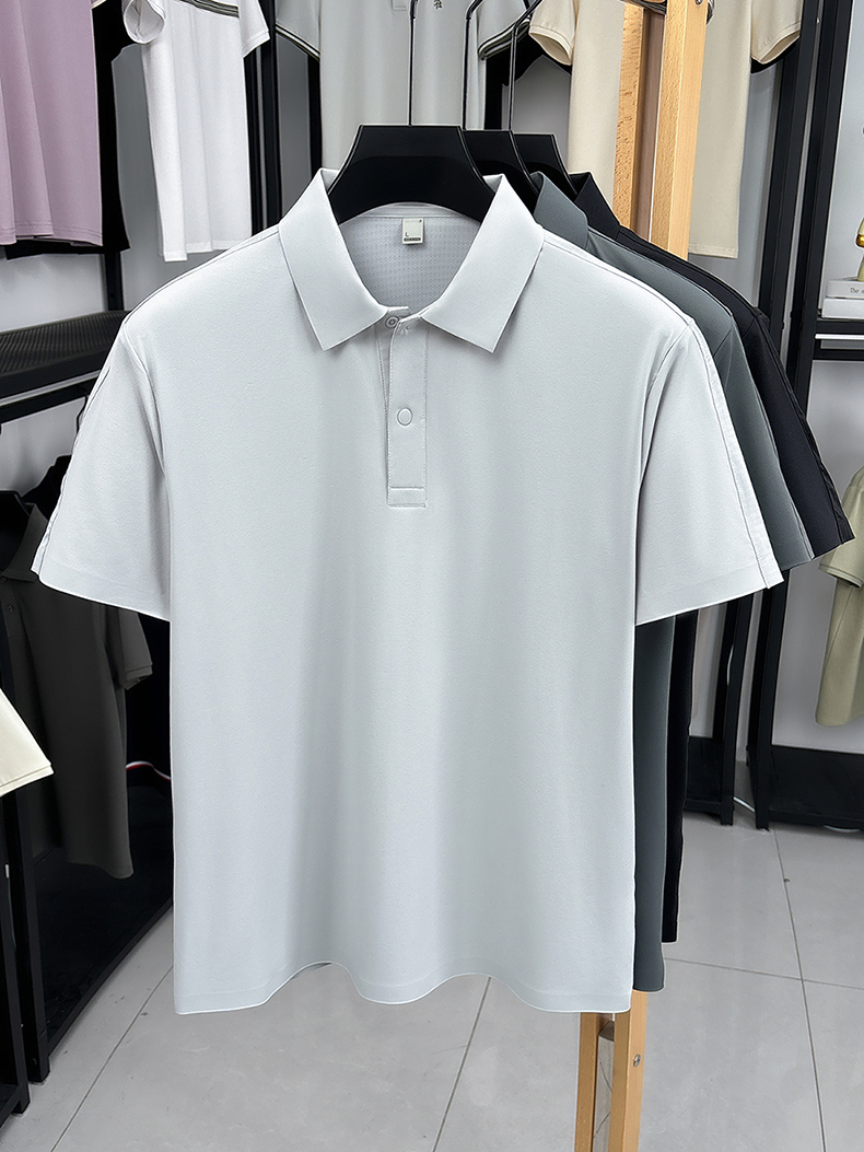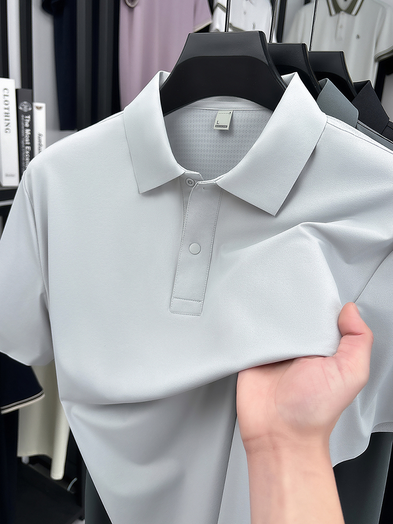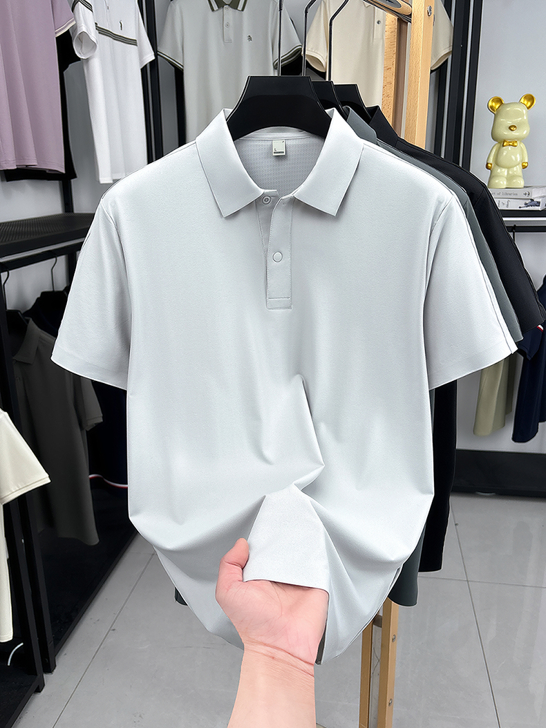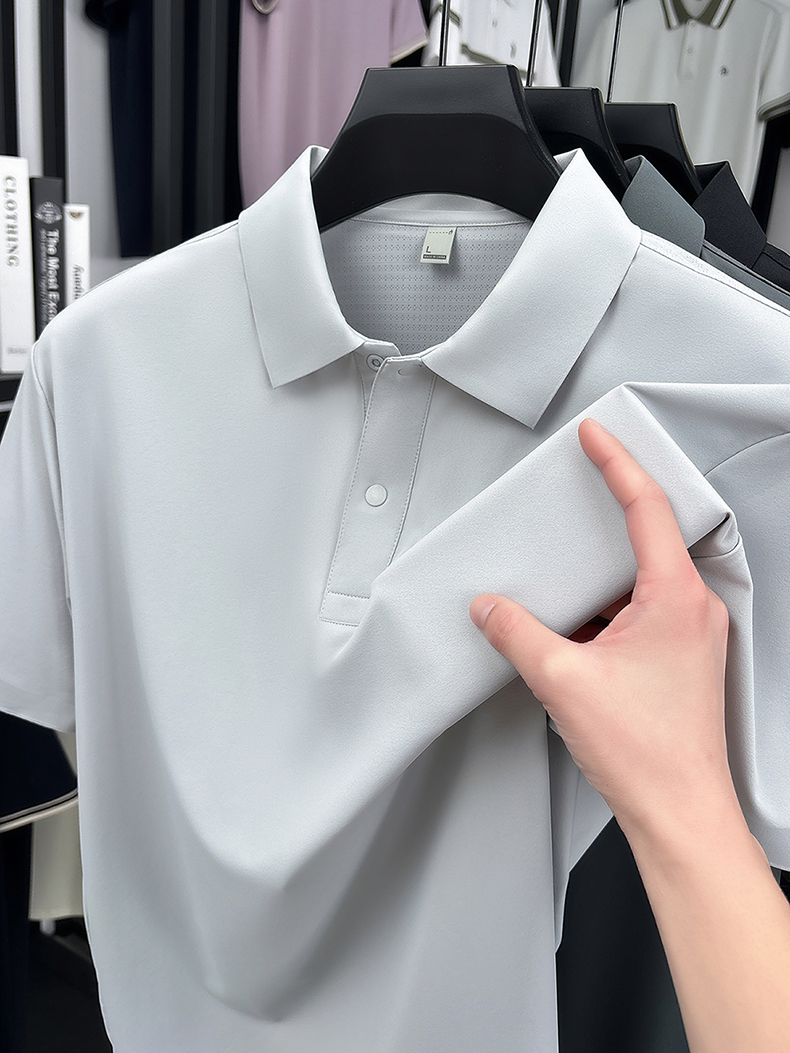 국경 간 남성 새로운 단색 얼음 실크 POLO 셔츠 여름 얇은 스타일 다용도 폴로 칼라 비즈니스 티셔츠 남성 의류 반팔