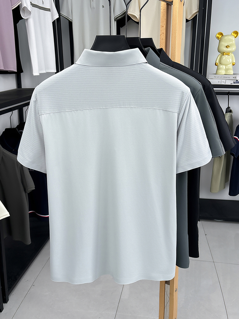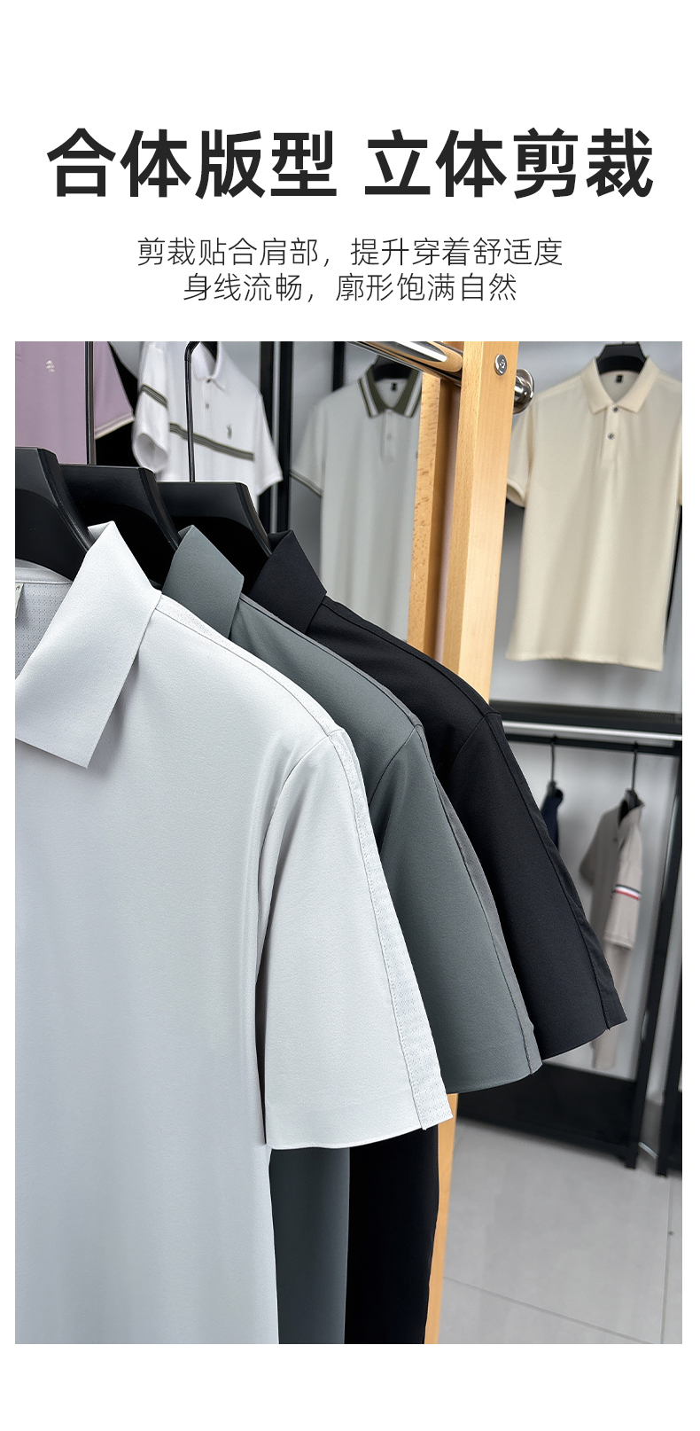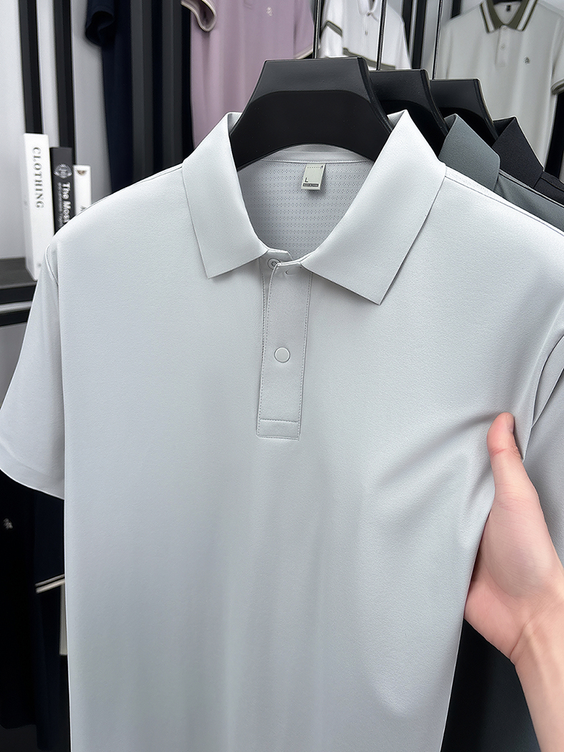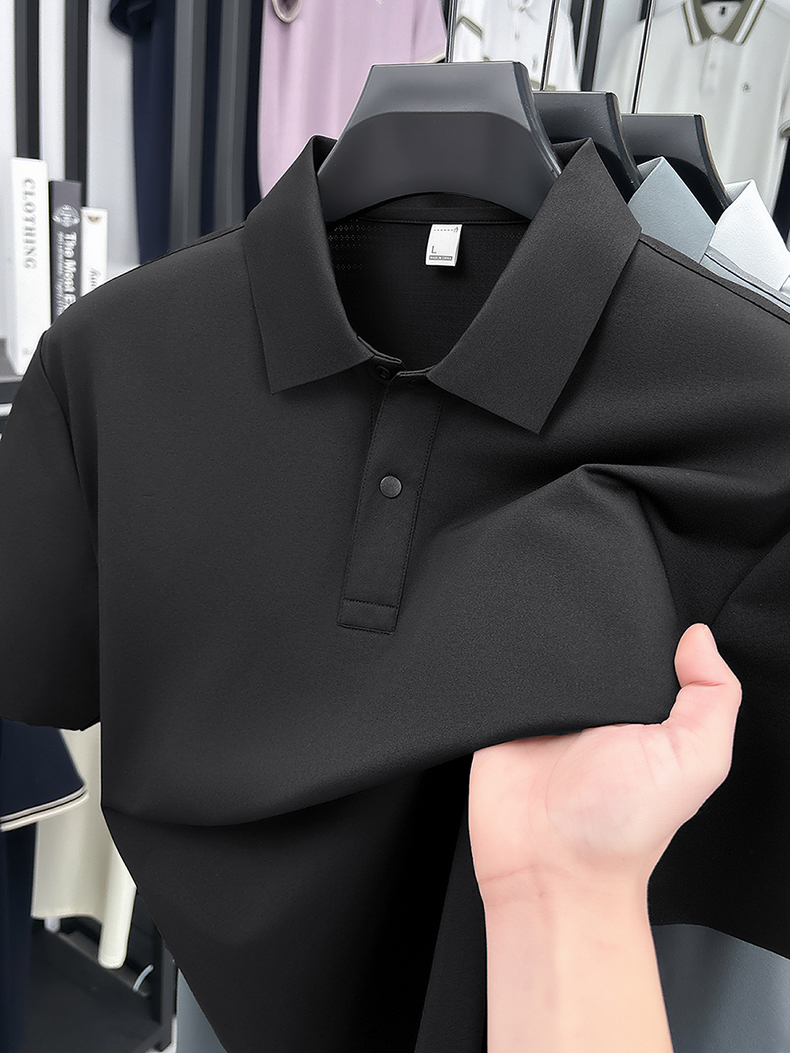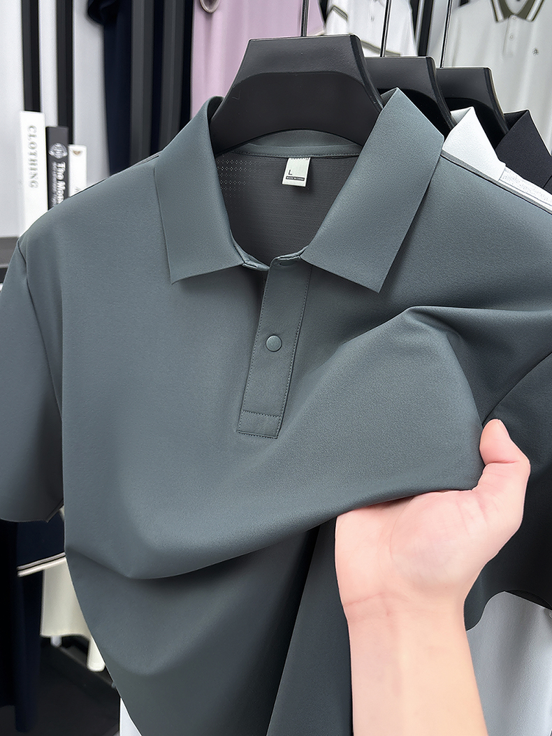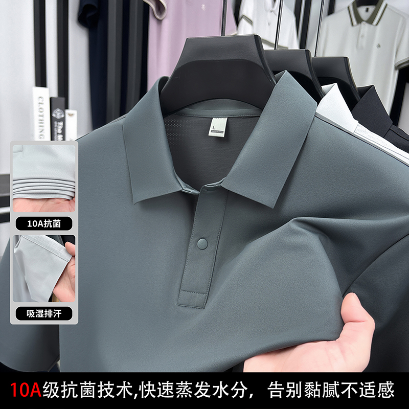 국경 간 남성 새로운 단색 얼음 실크 POLO 셔츠 여름 얇은 스타일 다용도 폴로 칼라 비즈니스 티셔츠 남성 의류 반팔