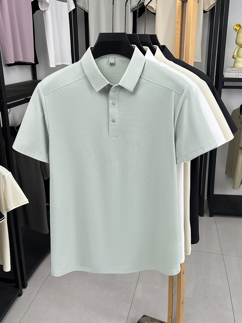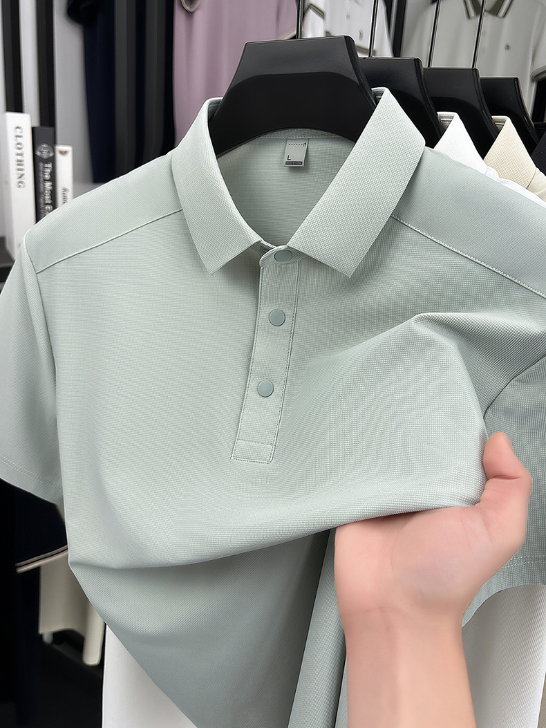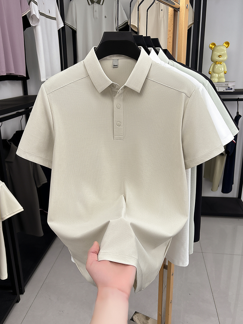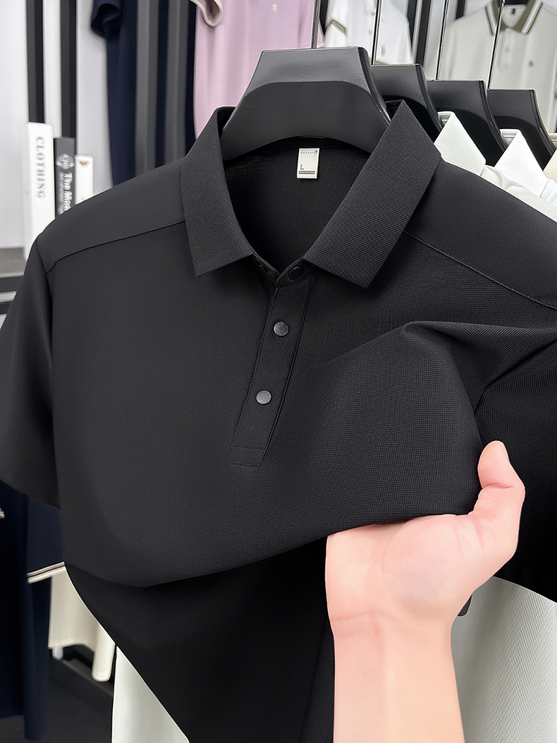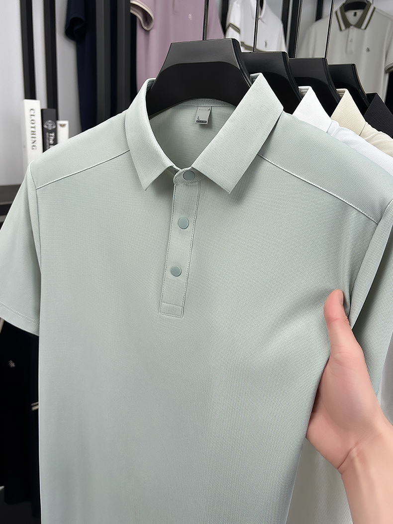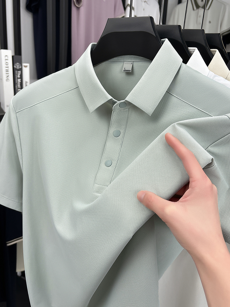 국경 간 남성 새로운 단색 얼음 실크 POLO 셔츠 여름 얇은 스타일 다용도 폴로 칼라 비즈니스 티셔츠 남성 의류 반팔
