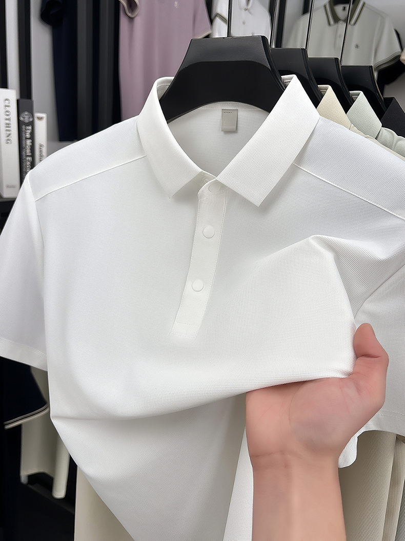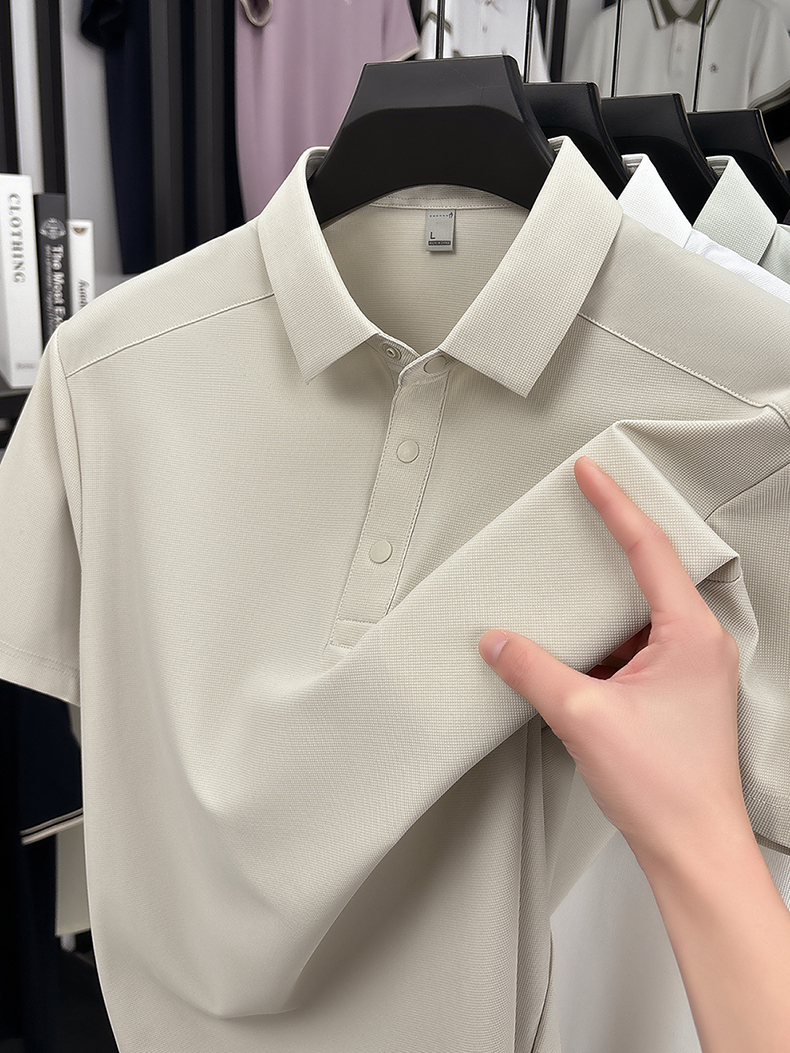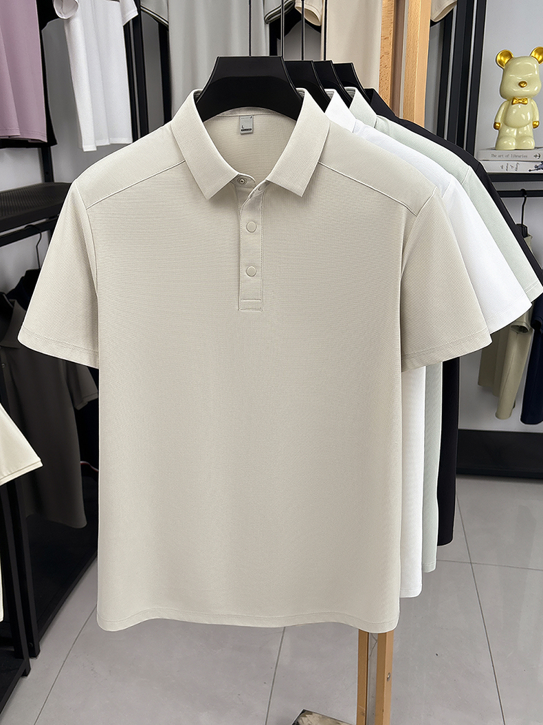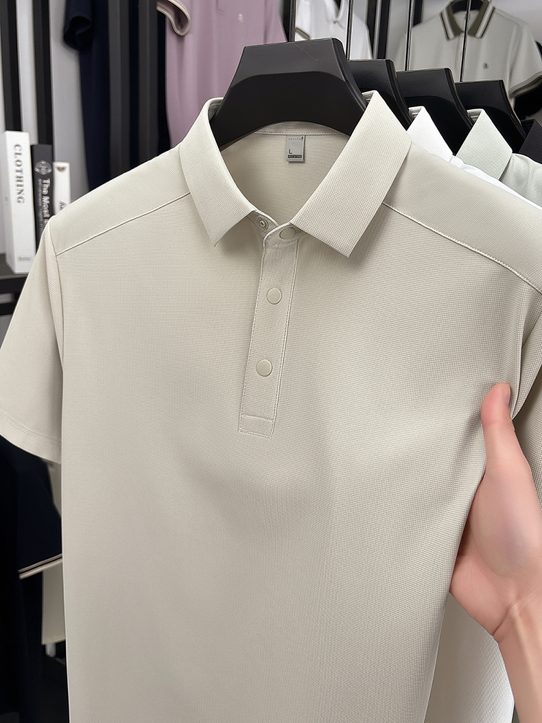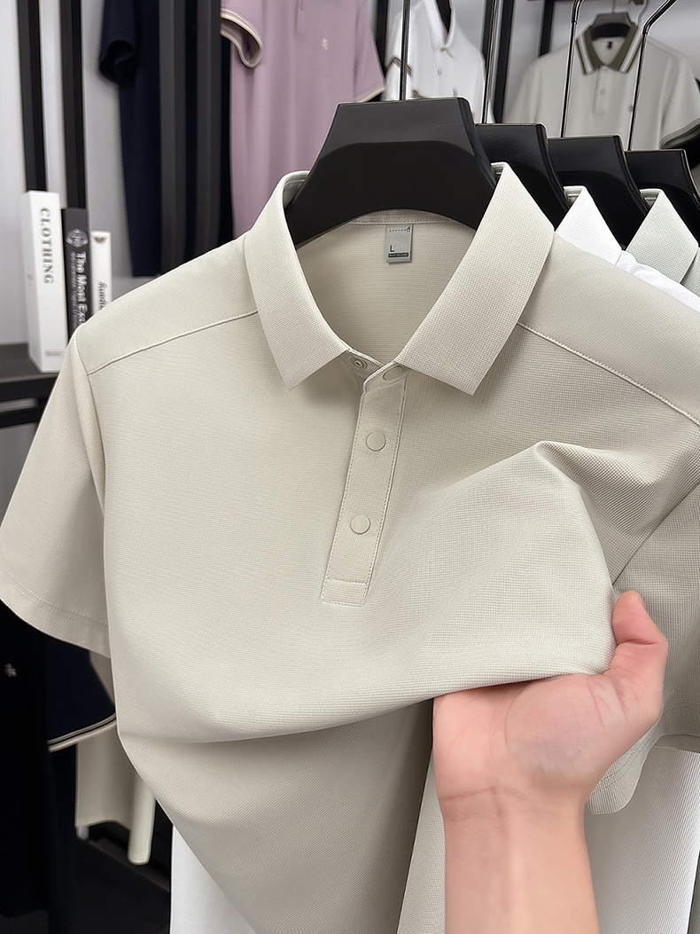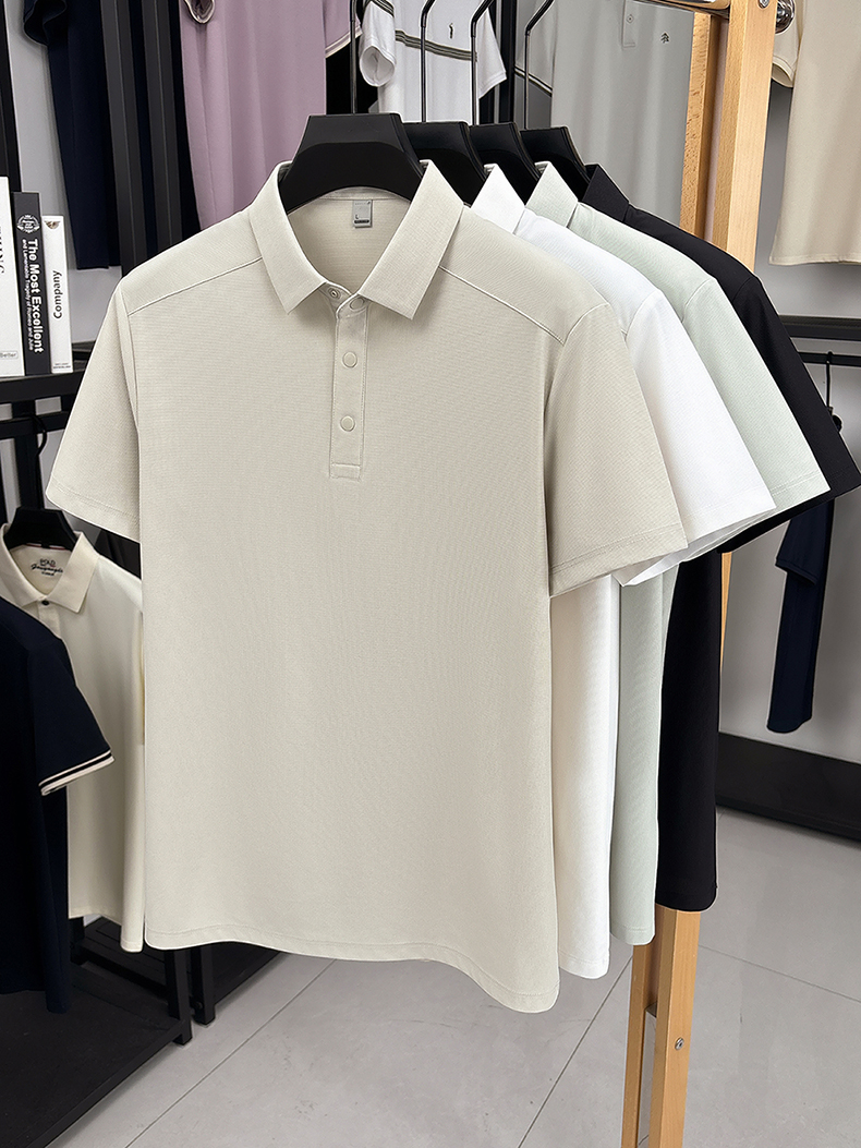 국경 간 남성 새로운 단색 얼음 실크 POLO 셔츠 여름 얇은 스타일 다용도 폴로 칼라 비즈니스 티셔츠 남성 의류 반팔