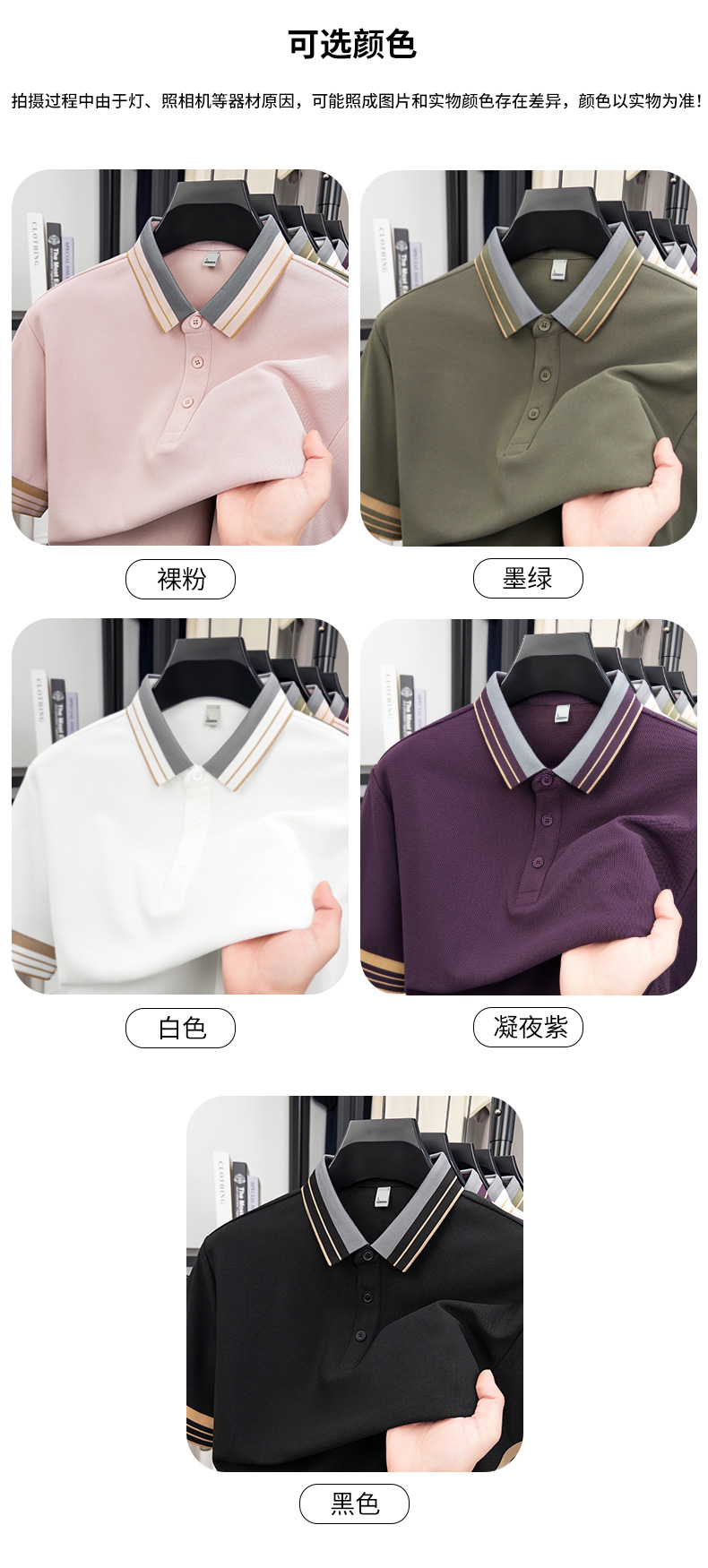 국경 간 남성 새로운 단색 POLO 셔츠 여름 얇은 스타일 다용도 폴로 칼라 비즈니스 티셔츠 남성 의류 반팔 맨위