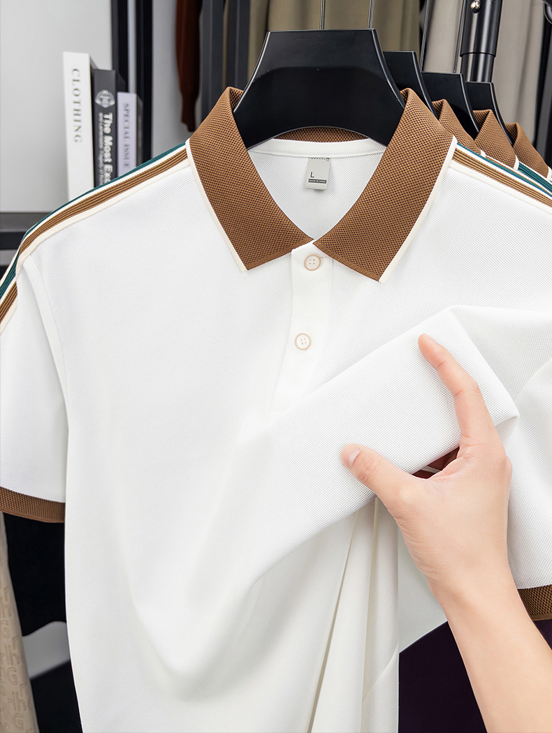 국경 간 남성 새로운 단색 얼음 실크 POLO 셔츠 여름 얇은 스타일 다용도 폴로 칼라 비즈니스 티셔츠 남성 의류 반팔