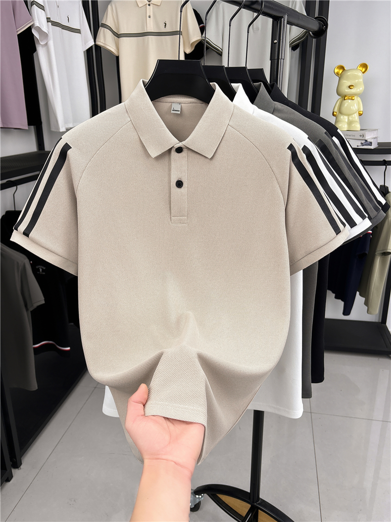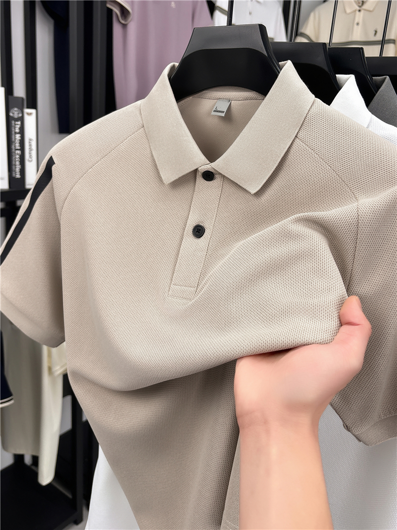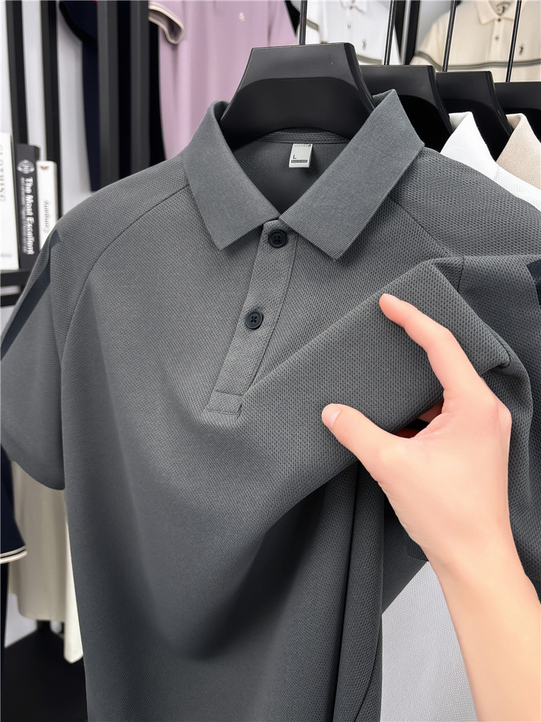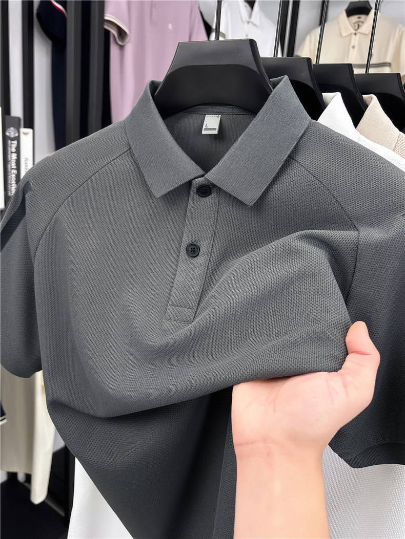 국경 간 남성 새로운 단색 얼음 실크 POLO 셔츠 여름 얇은 스타일 다용도 폴로 칼라 비즈니스 티셔츠 남성 의류 반팔