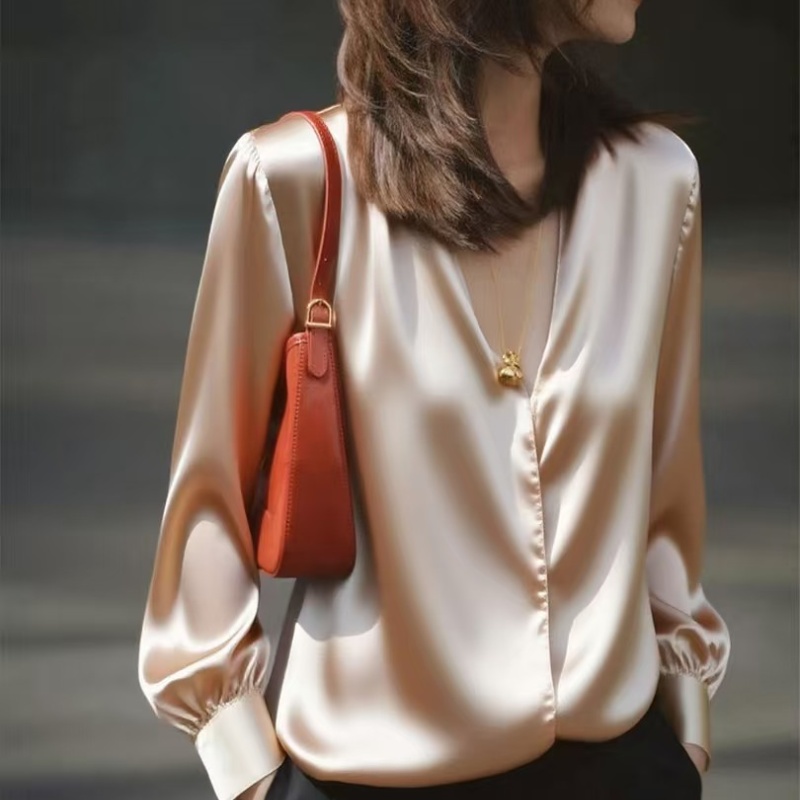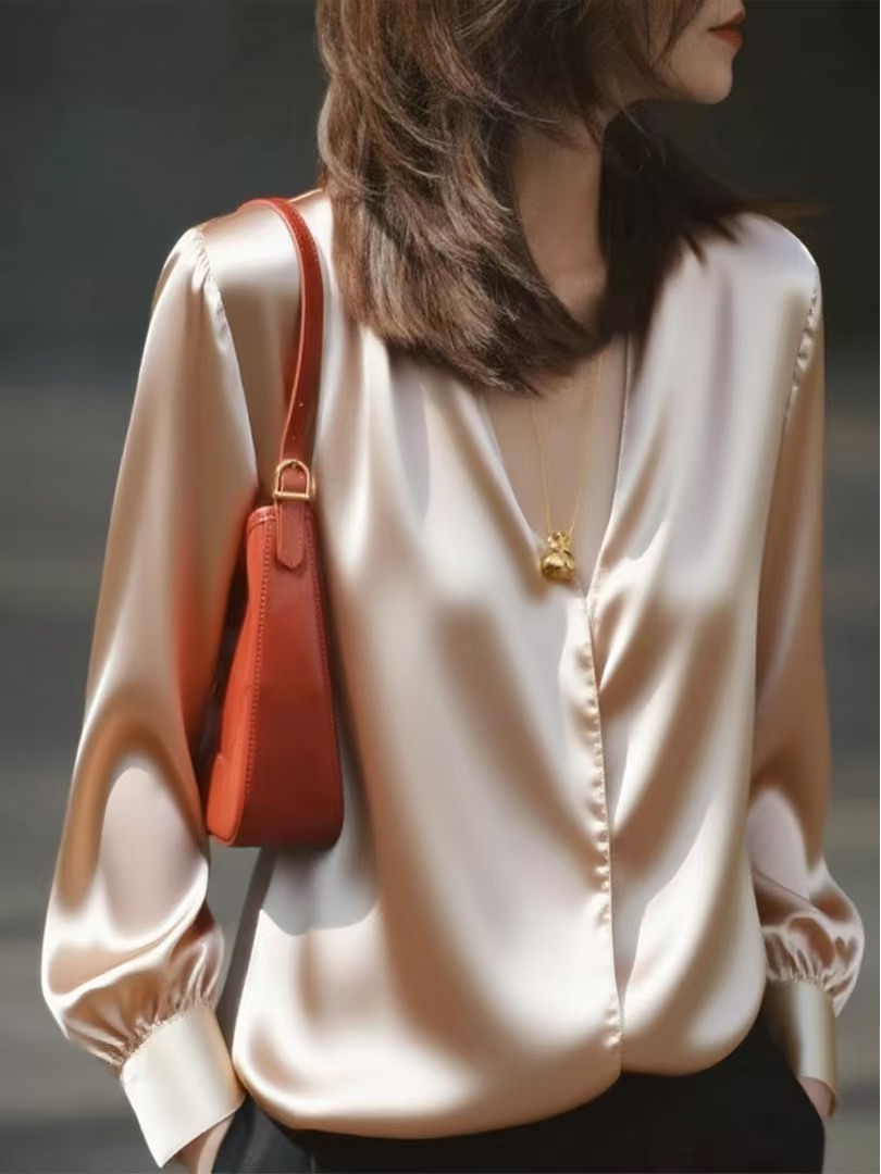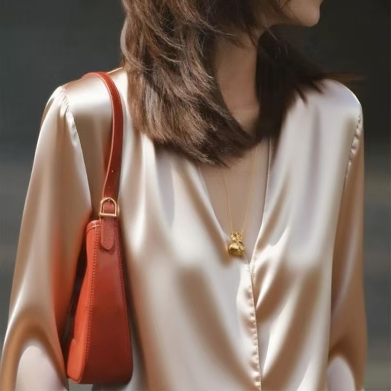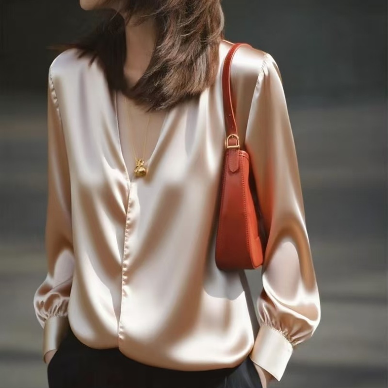 봄 가을 고유 한 Chic 슈퍼 잘 생긴 맨위 빛 럭셔리 고급 센스 작은 대중 아니요 명중 섹션 외국 가스 연령 감소 살구 색상 여성 셔츠