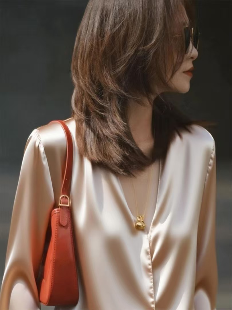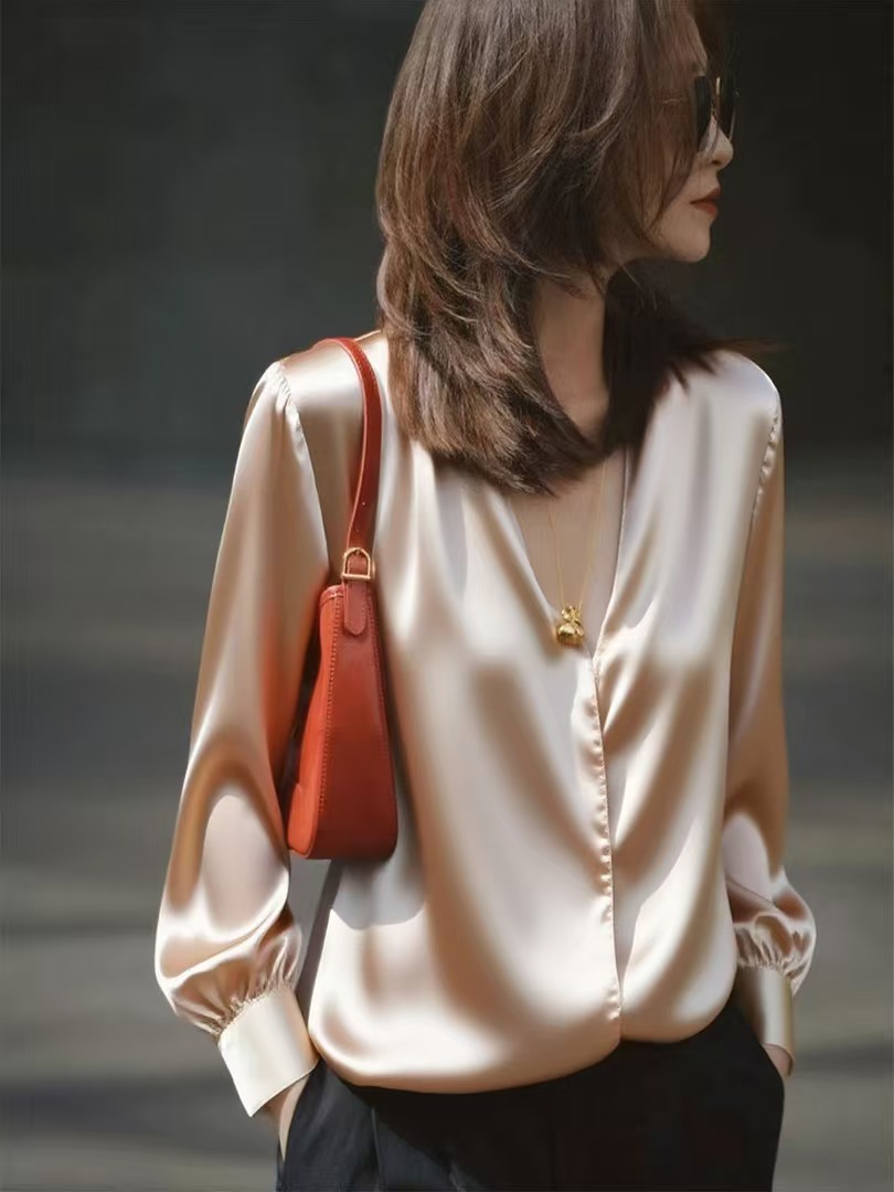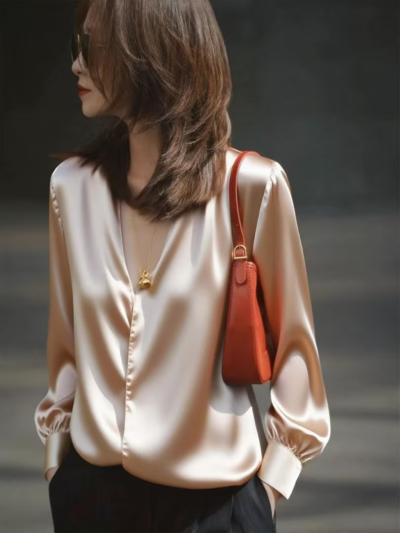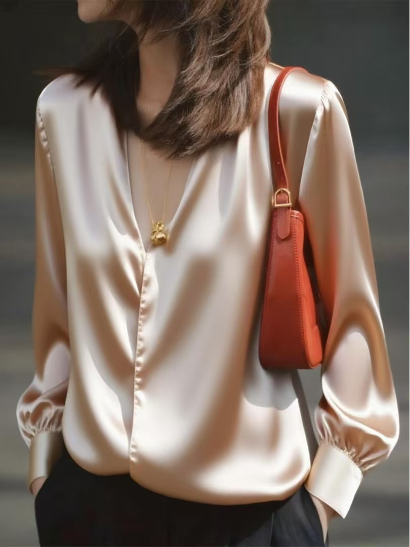 봄 가을 고유 한 Chic 슈퍼 잘 생긴 맨위 빛 럭셔리 고급 센스 작은 대중 아니요 명중 섹션 외국 가스 연령 감소 살구 색상 여성 셔츠