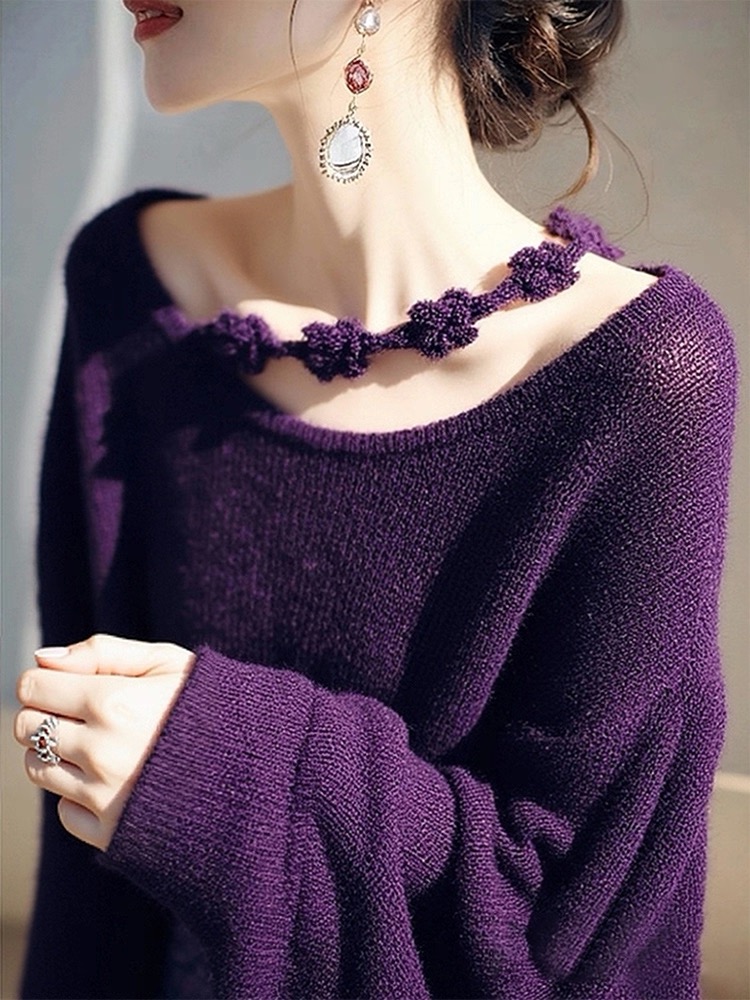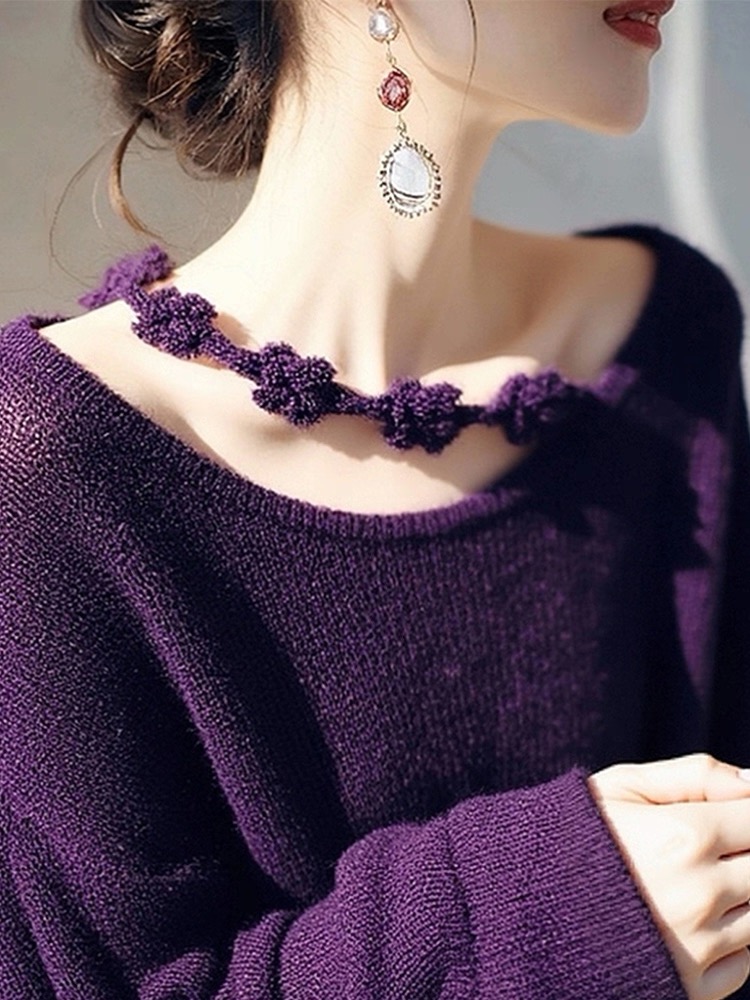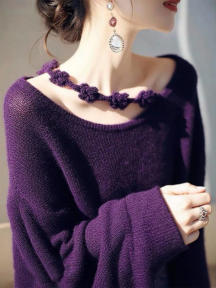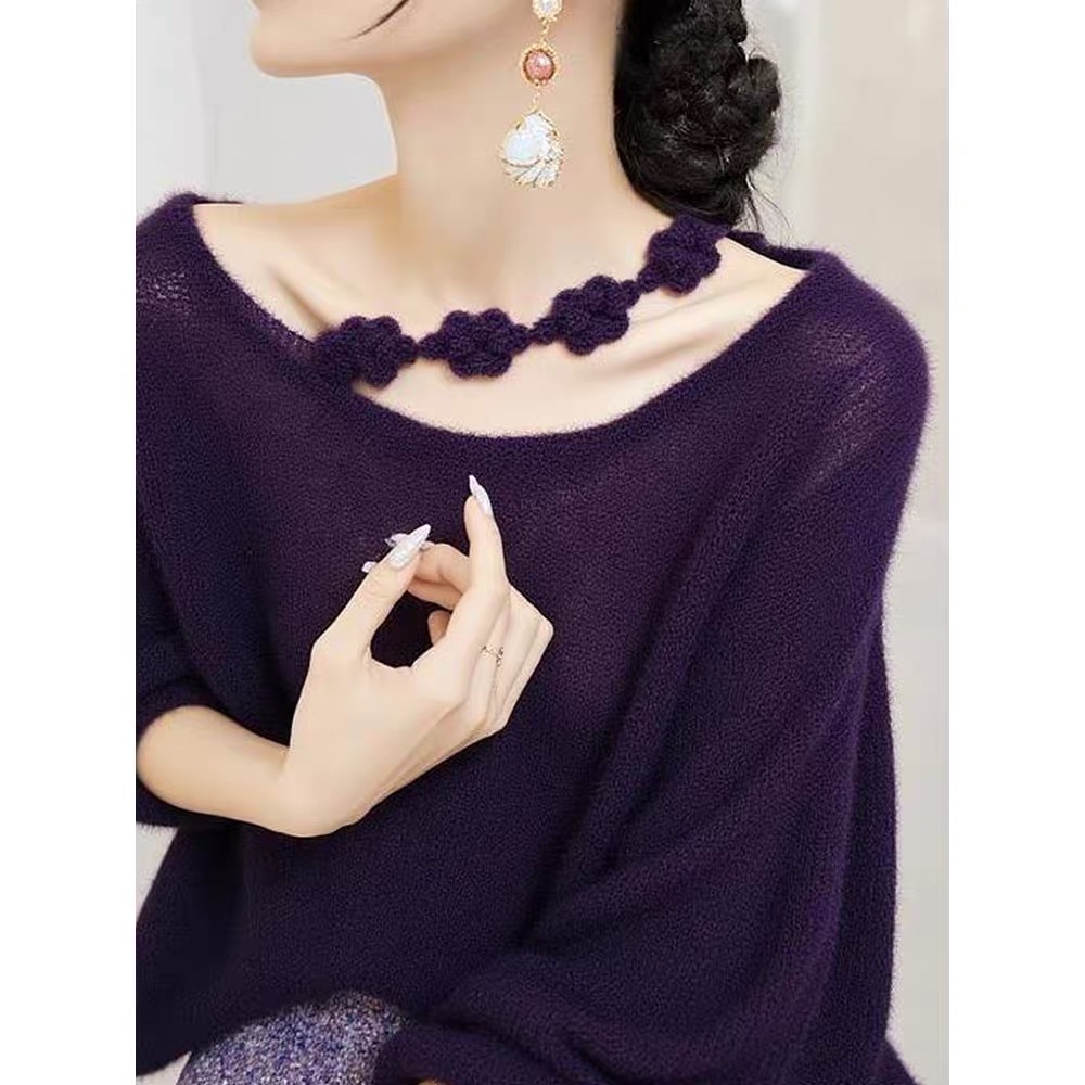 부드러운 느긋한 보라색 홀로우 아웃 부드러운 찹쌀 니트 스웨터 스웨터 여자 2026 봄 가을 자이언트 잘 생긴 한 부서 아름다운 맨위