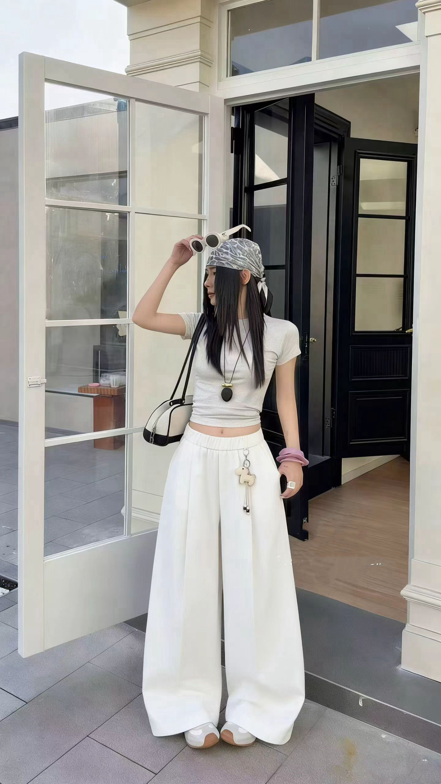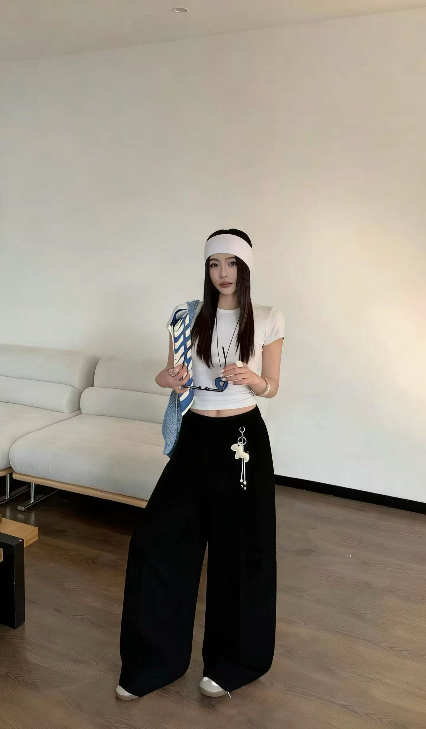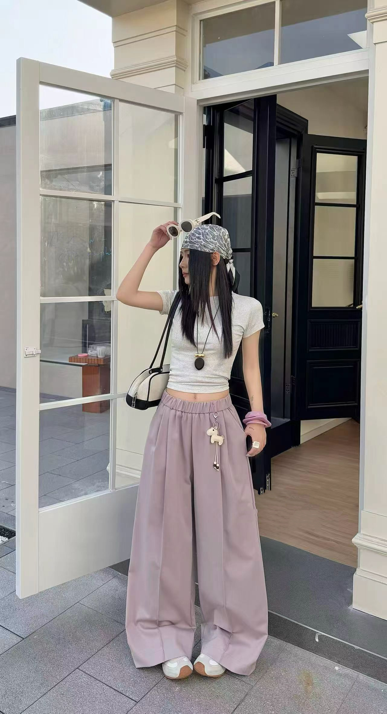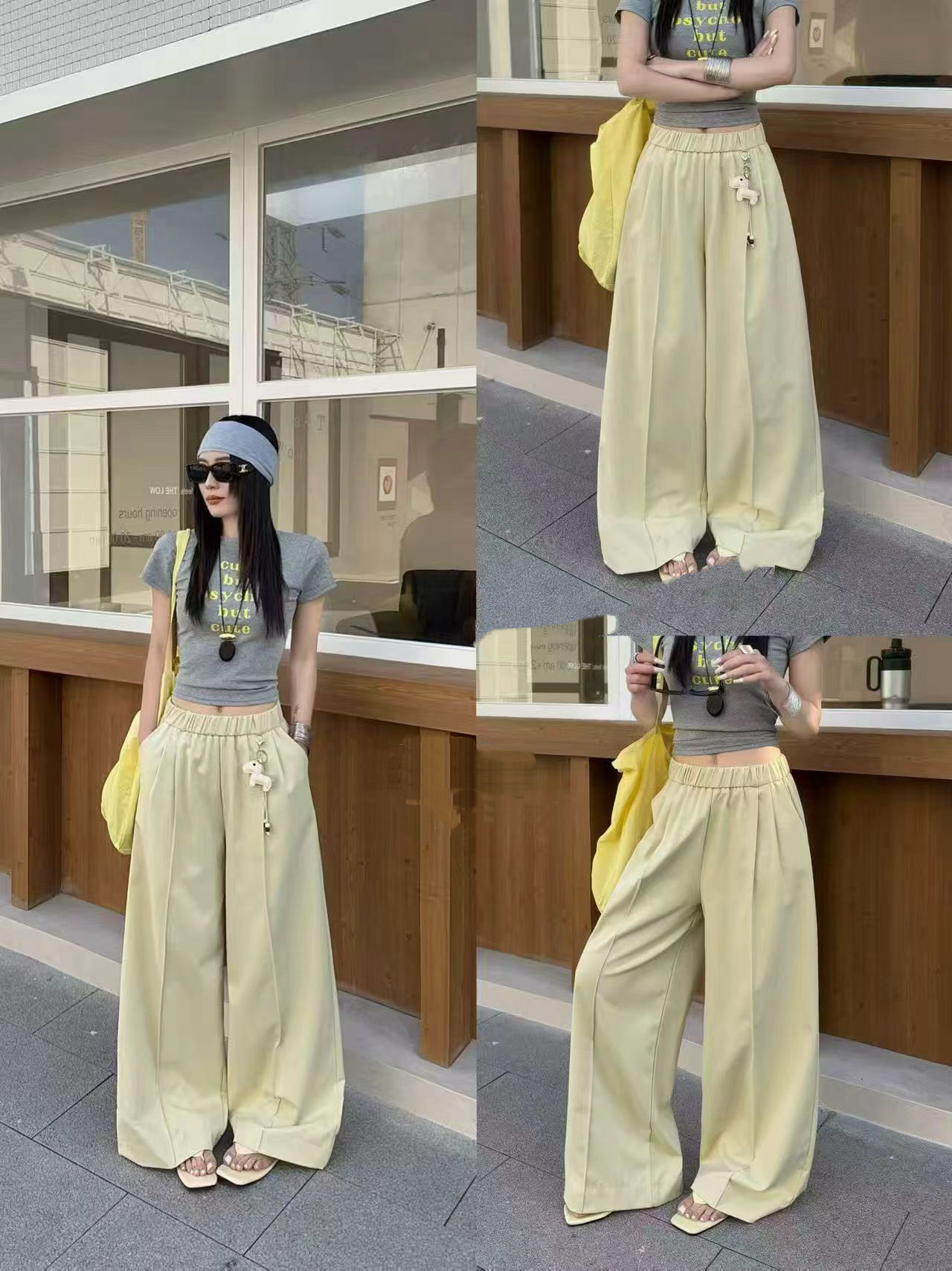 2026 봄 새로운 연령 감소 작은 말 펜던트 캐주얼 긴 바지 여성 루즈핏 세련된 모통이 칼 넓은 다리 웨이 바지
