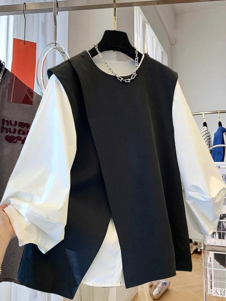 한 부서 슈퍼 잘 생긴 자수 라운드 넥 긴팔 여성 셔츠 봄 슈퍼 잘 생긴 연령 감소 프랑스식 인형 셔츠 루즈핏 맨위