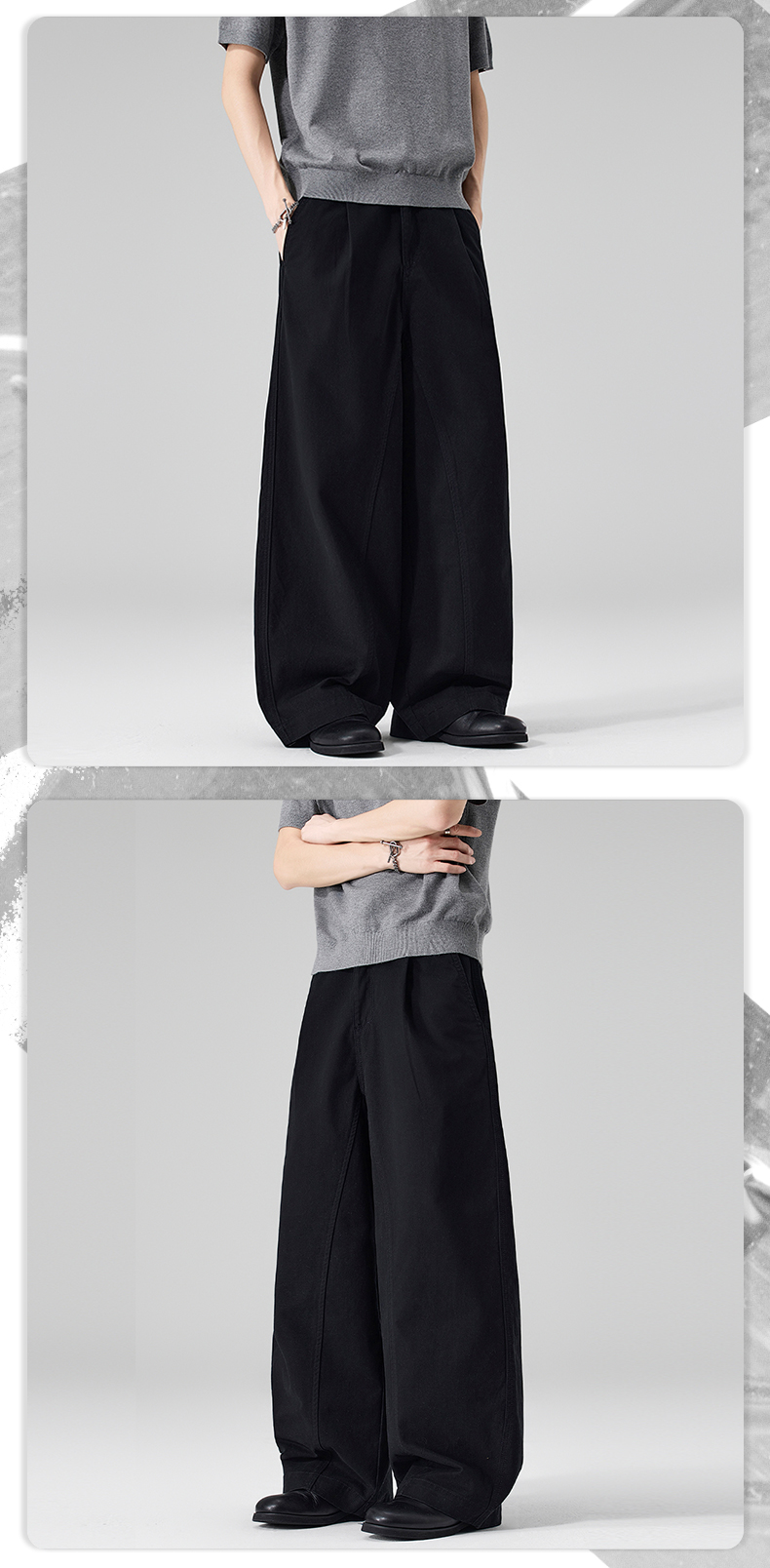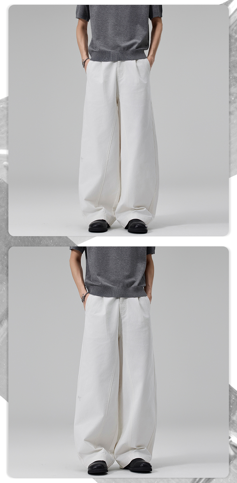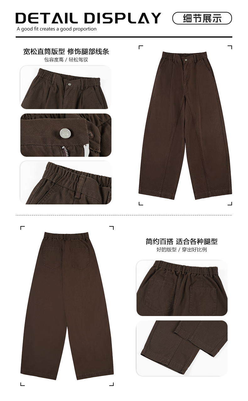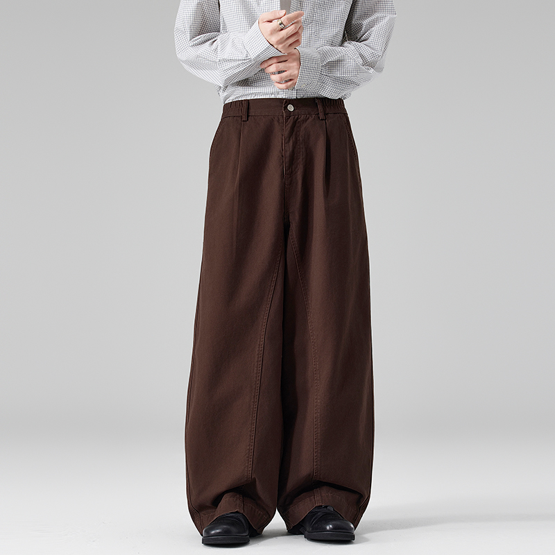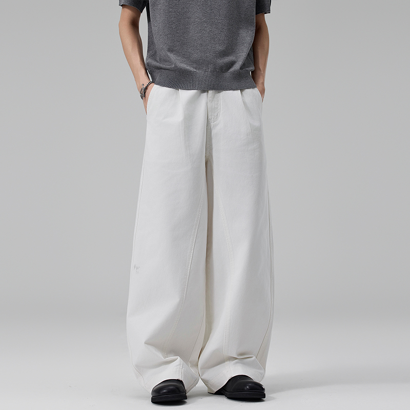 실사 2026 봄 여름 새로운 곡선 루즈핏 기초 패치워크 주름 캐주얼 바지 남녀 스트레이트 중성 롱 바지