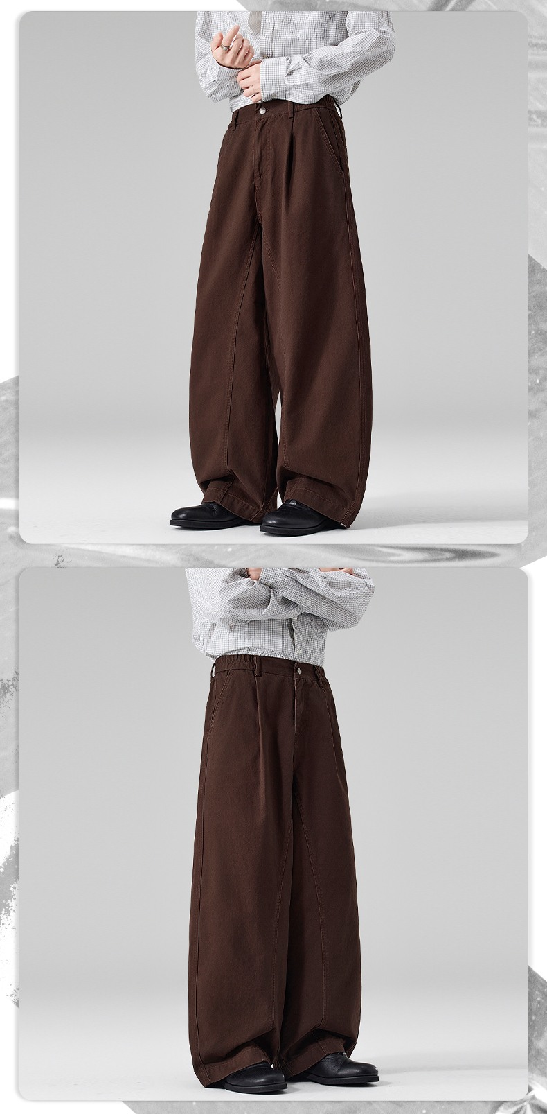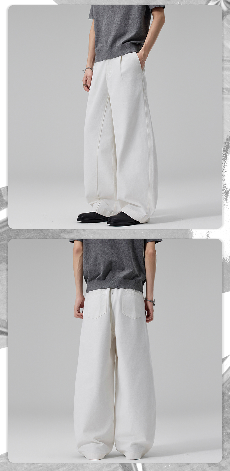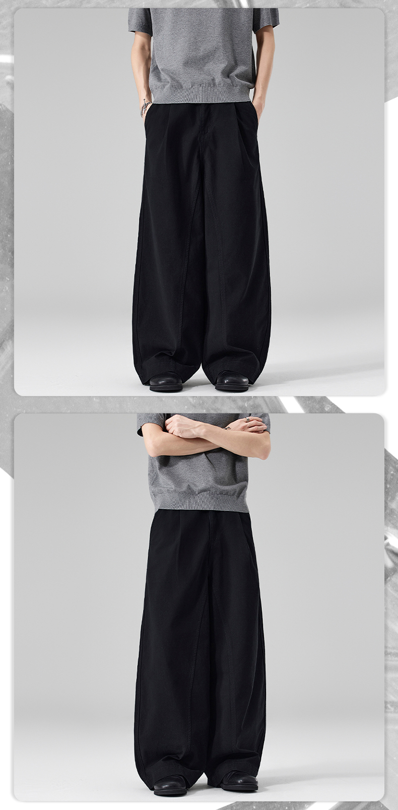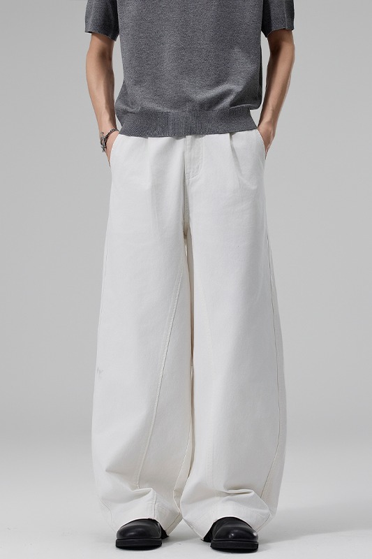 실사 2026 봄 여름 새로운 곡선 루즈핏 기초 패치워크 주름 캐주얼 바지 남녀 스트레이트 중성 롱 바지