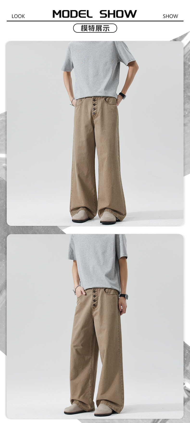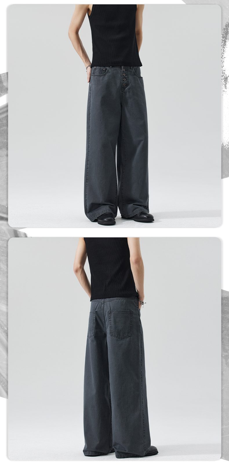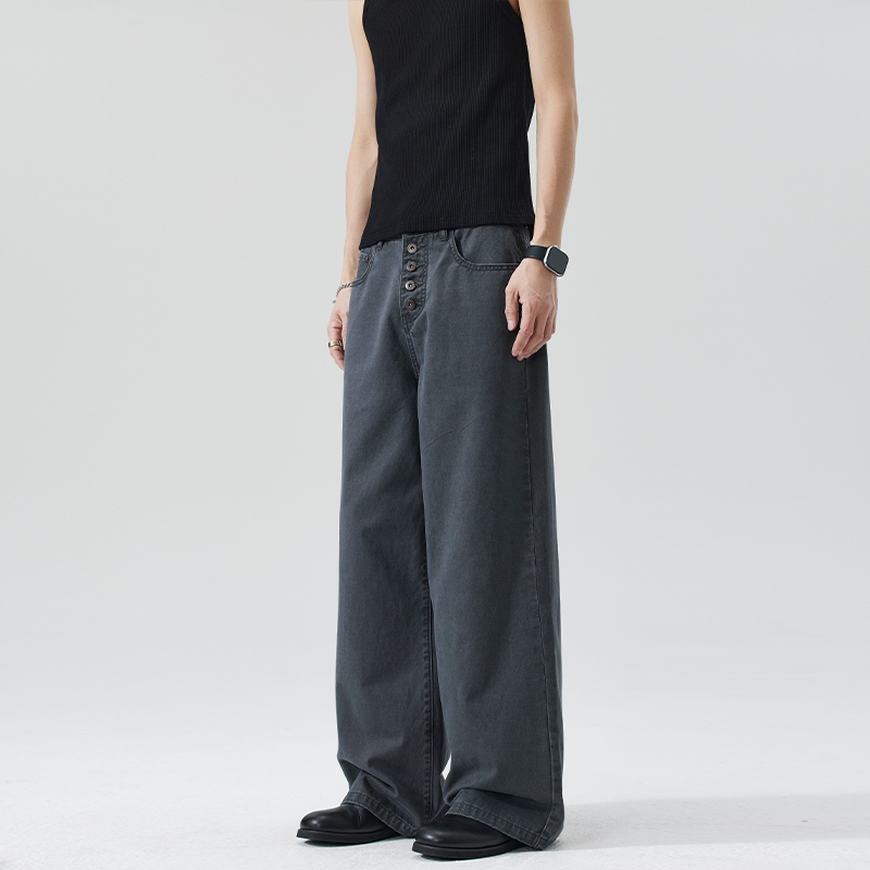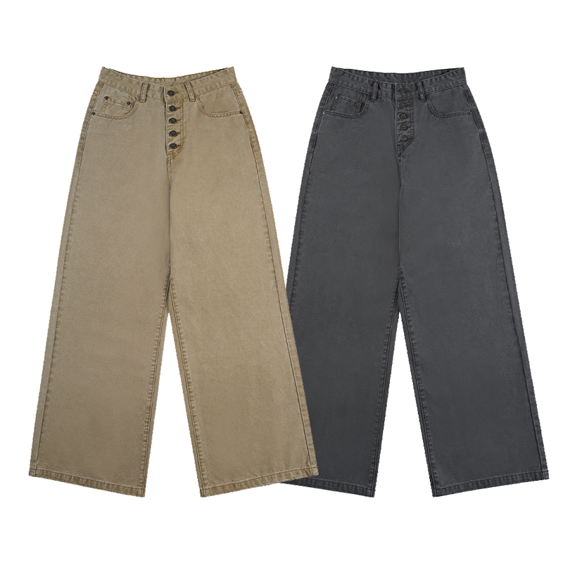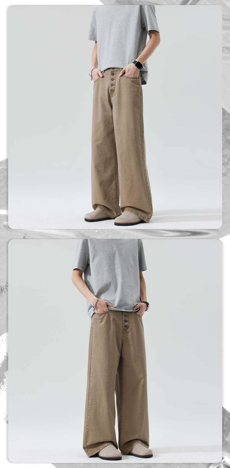 아메리칸 레트로 석재 연마 밀 귀 단추 디자인 센스 스트레이트 다용도 한 마디 캐주얼 바지 남녀 중성 트렌디 루즈핏 바지