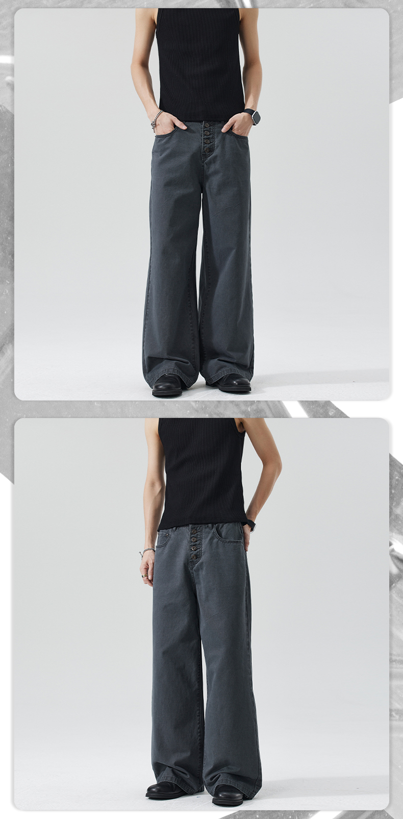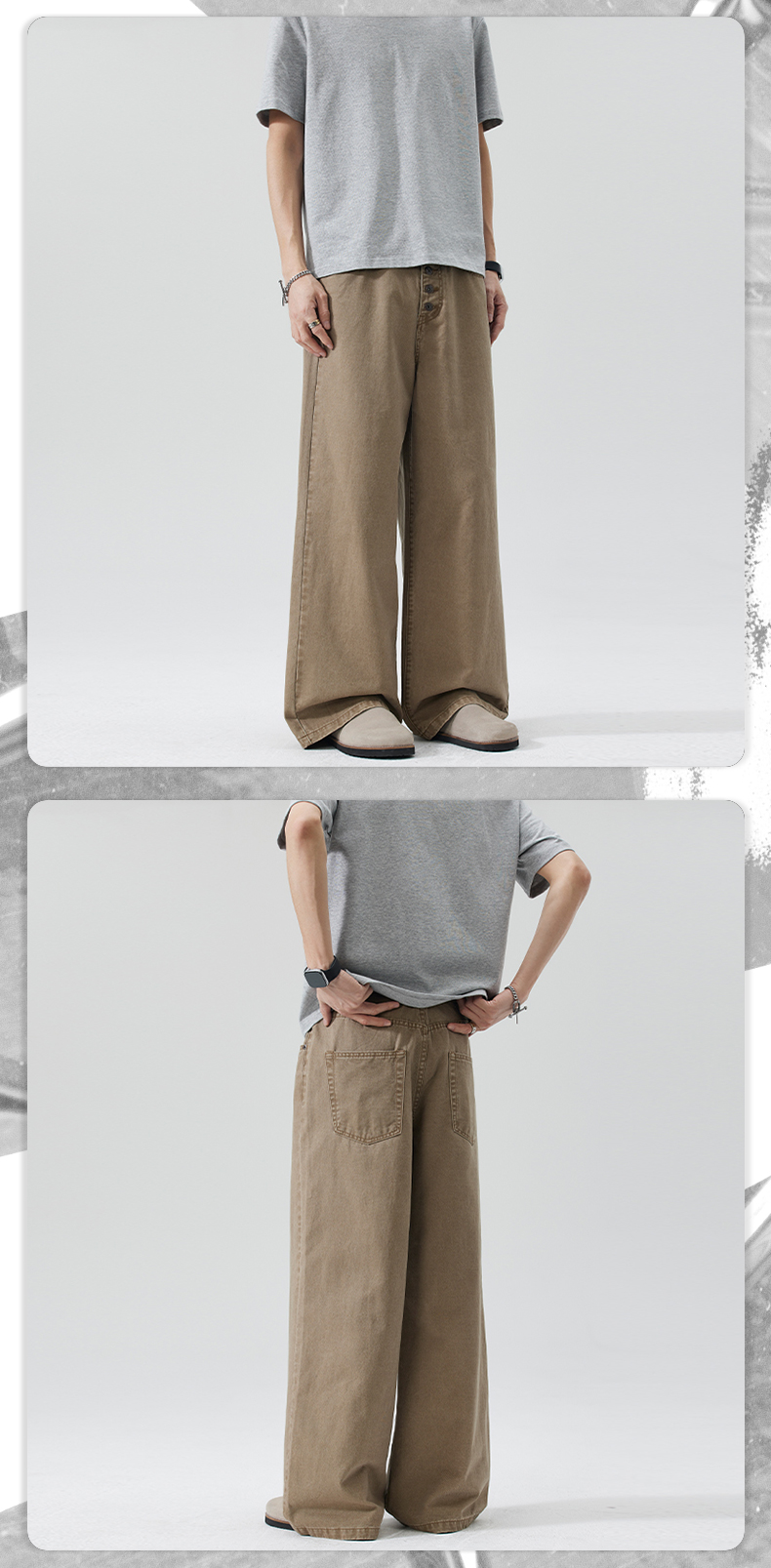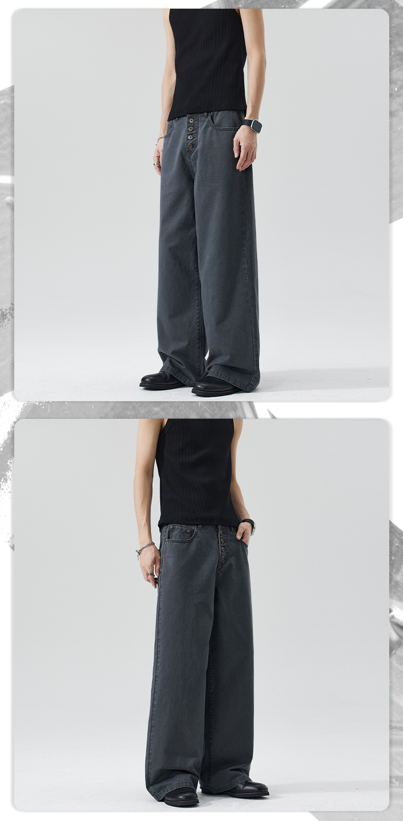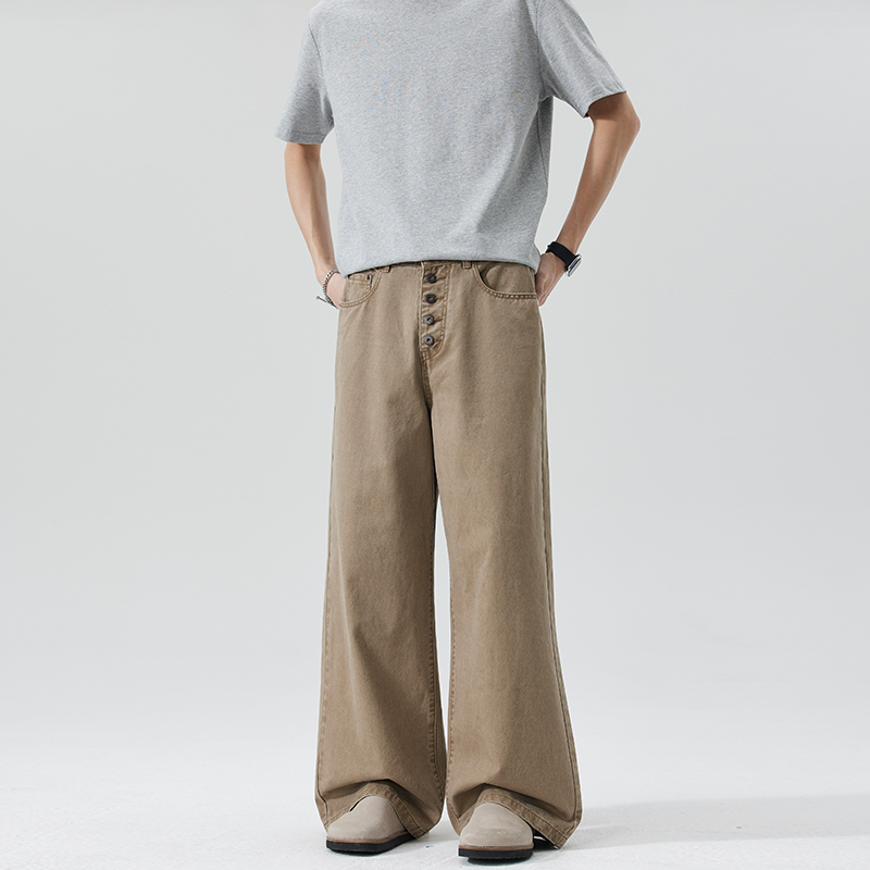 아메리칸 레트로 석재 연마 밀 귀 단추 디자인 센스 스트레이트 다용도 한 마디 캐주얼 바지 남녀 중성 트렌디 루즈핏 바지
