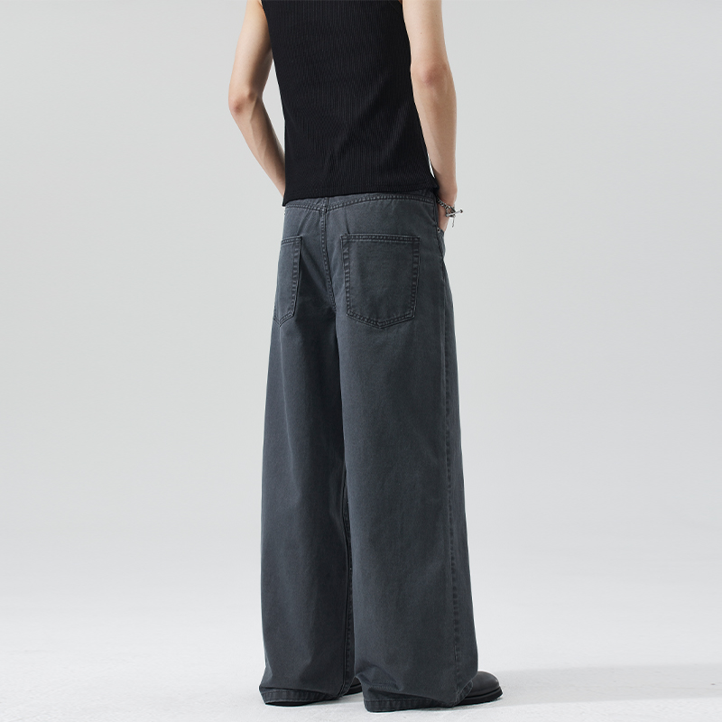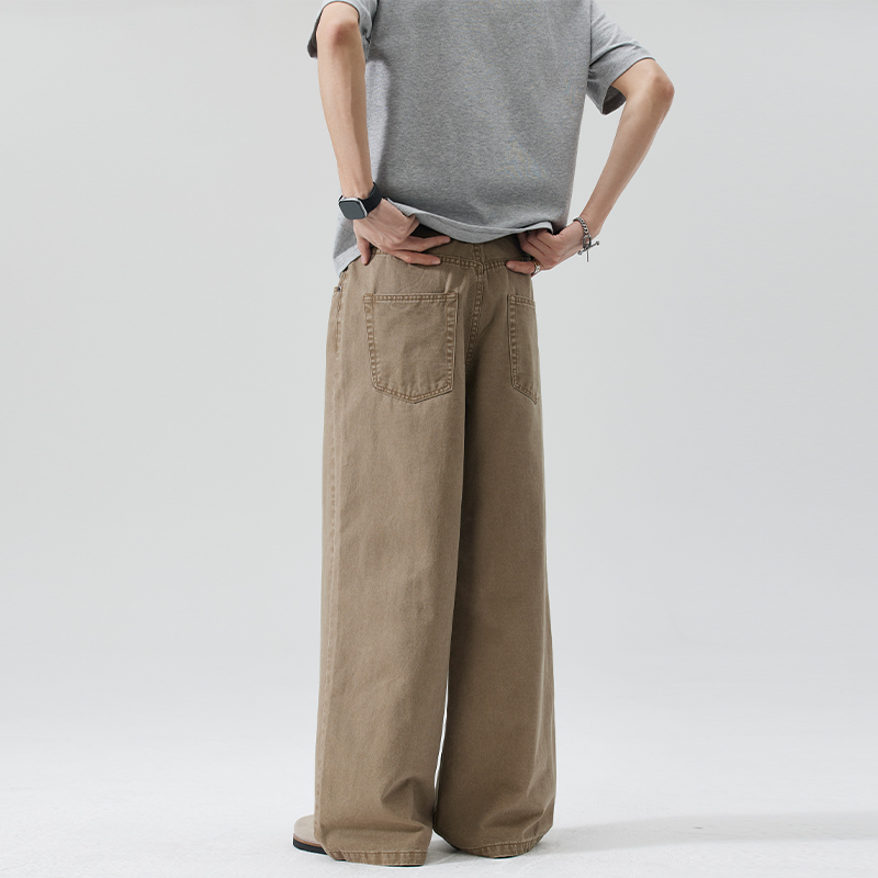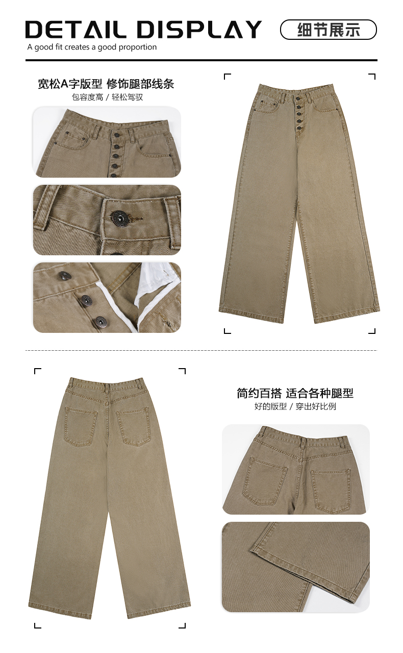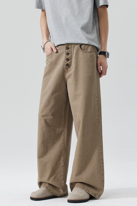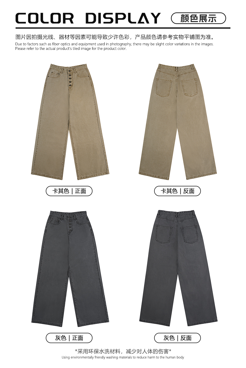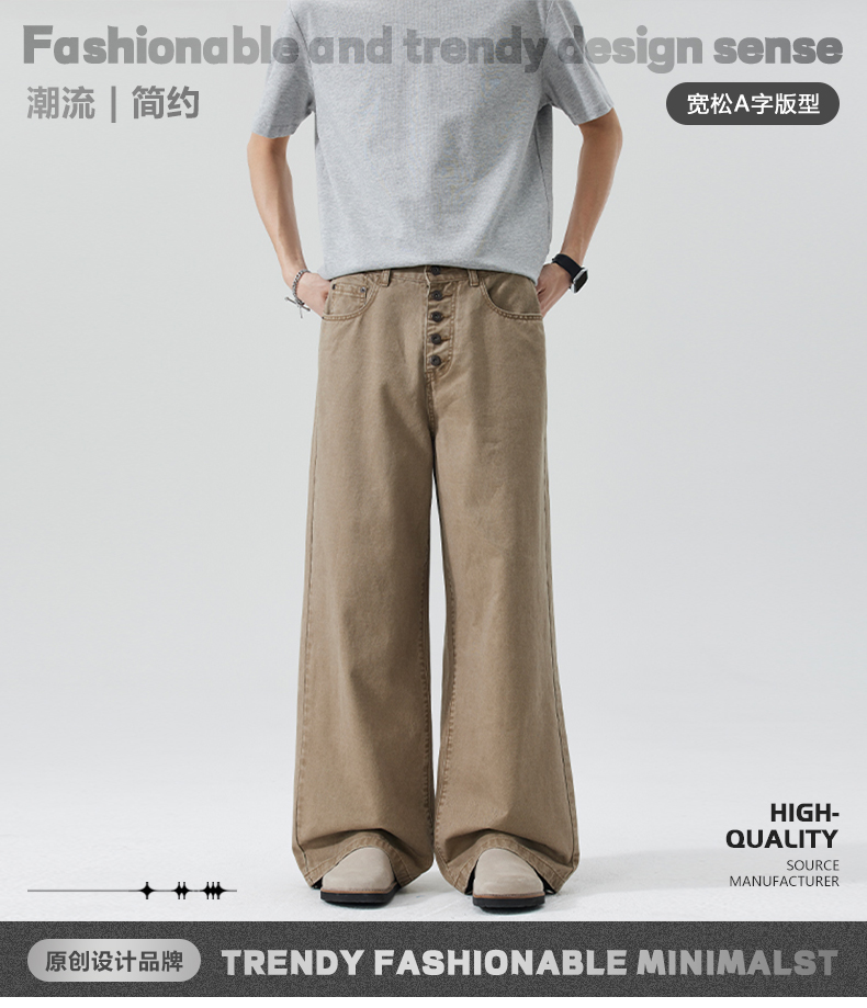 아메리칸 레트로 석재 연마 밀 귀 단추 디자인 센스 스트레이트 다용도 한 마디 캐주얼 바지 남녀 중성 트렌디 루즈핏 바지