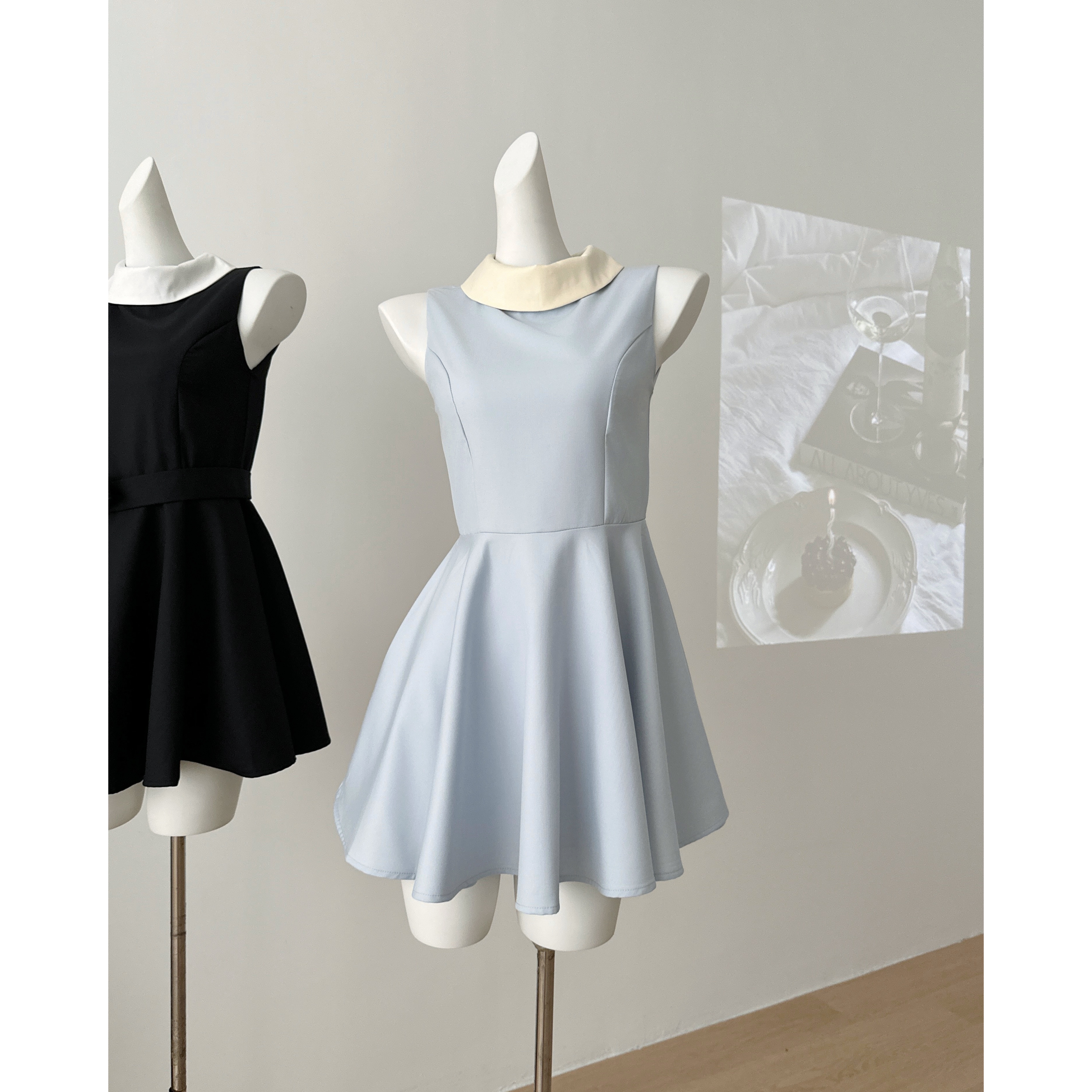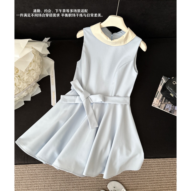 그는 벤 바람 민소매 드레스 봄 여름 인사이드 가져 가라. 레이스업 허리 수축 슬림해 보이는 천 골드 센스 품격 퍼프 스커트 여성