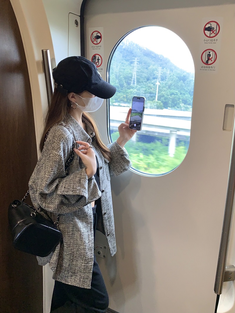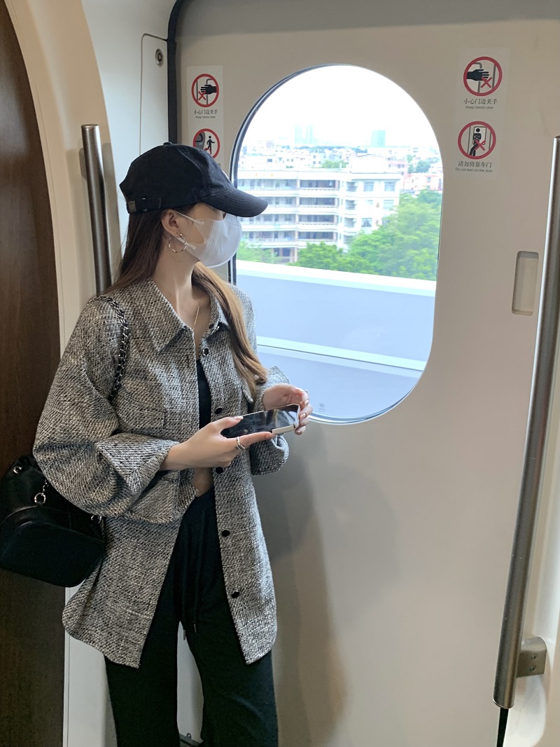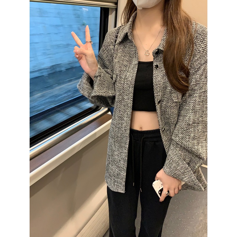 실사 정가 이른 봄 얇은 스타일 남자 친구 바람 작은 대중 체크무늬 작은 샤넬 스타일 긴팔 셔츠 재킷