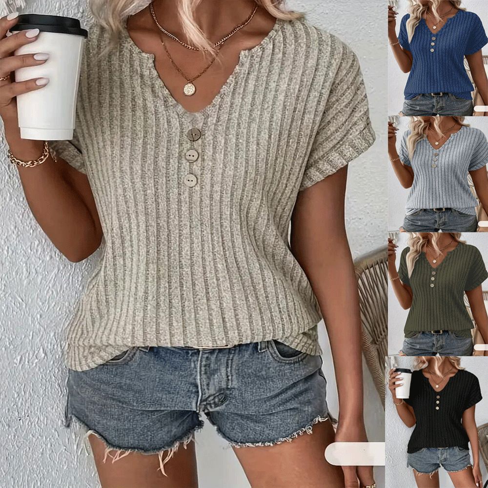 2026 유럽과 미국 국경 간 봄 신제품 temu 폭발 단색 라운드 넥 구덩이 기사 캐주얼 반팔 티셔츠 빅 사이즈 외출용